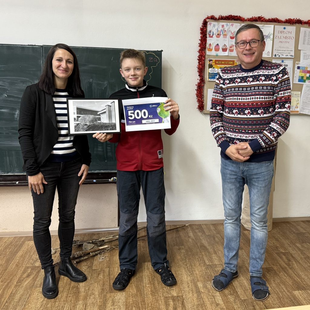 Žáci ze školní televize se během listopadu zúčastnili fotografické soutěže „Svět očima stavaře“, kterou pravidelně organizuje Masarykova střední škola Letovice. Letos bylo pro soutěžící vybráno téma – „V souladu s přírodou“. Fotografie Matyáše Trnky (6. A) s názvem „Kámen“ se probojovala do finále mezi pět nejzajímavějších fotografií. V pátek 12. prosince se uzavřelo veřejné hlasování, ve kterém právě Matyášova fotografie získala první cenu – poukaz spol. Alza v hodnotě 500,- Kč. Dnes mu tato cena byla slavnostně předána a výherci tímto ještě jednou gratulujeme! School TV