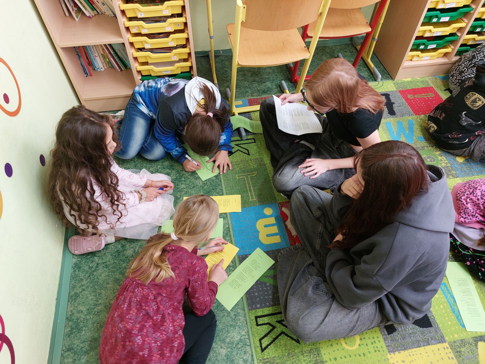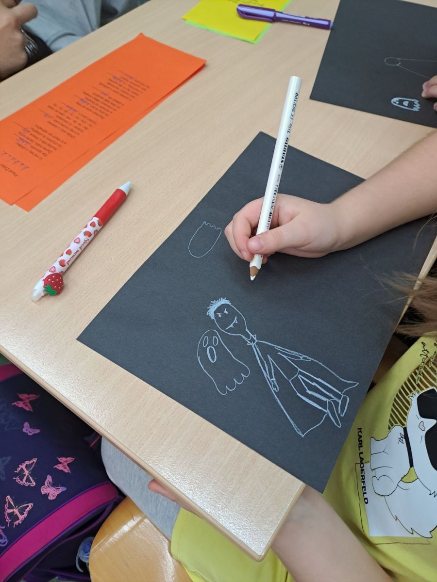 Děti spolu vymýšlely rýmy, četly a nakonec společně namalovaly obrázek plný duchů, upírů a bubáků. 👻