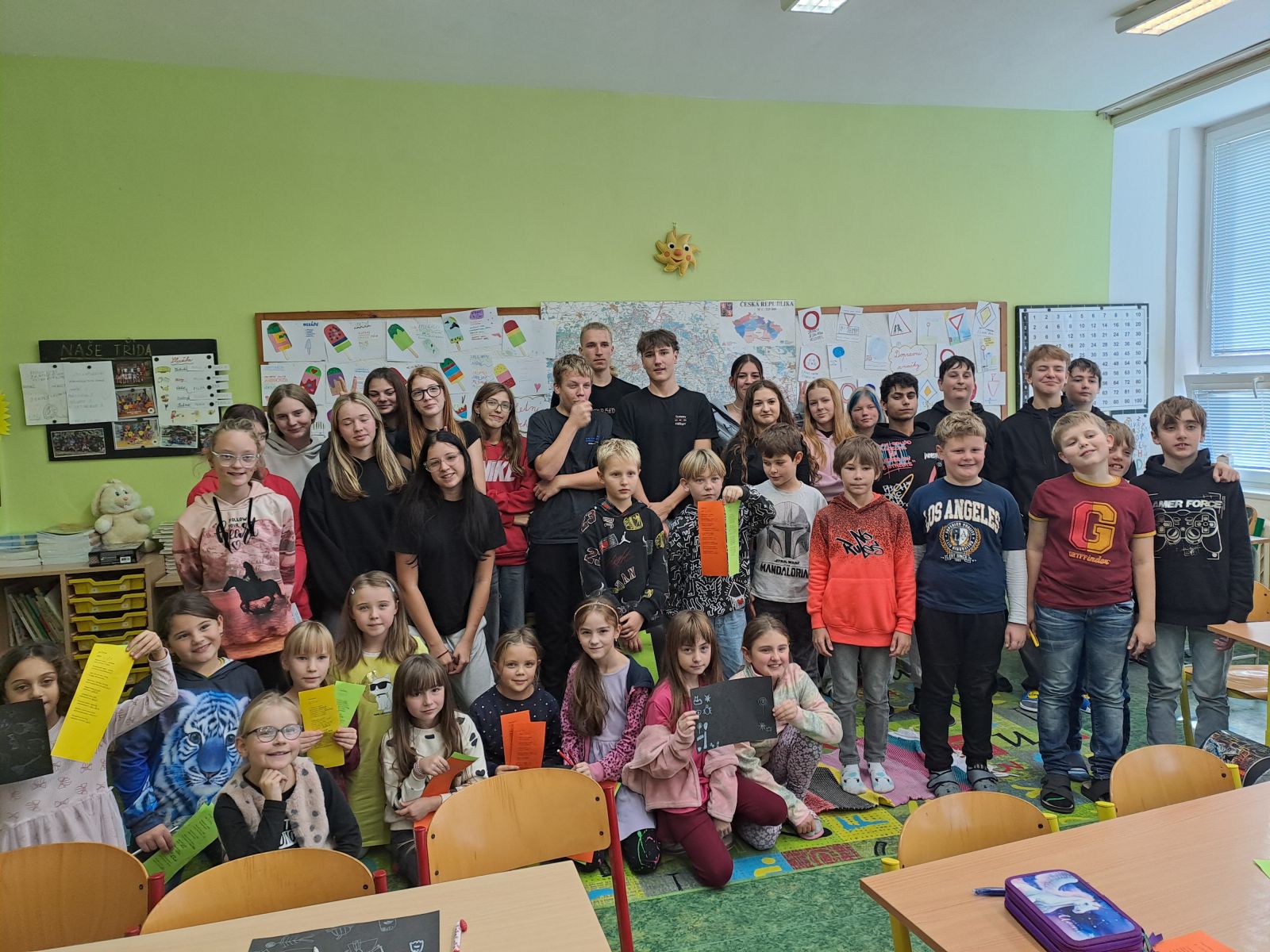 Už se pomalu stávají tradicí halloweenské hodiny deváťáků ve třídách 1. stupně. 🎃 Tentokrát si strašidelné básničky připravila 9.C pro 3.C.