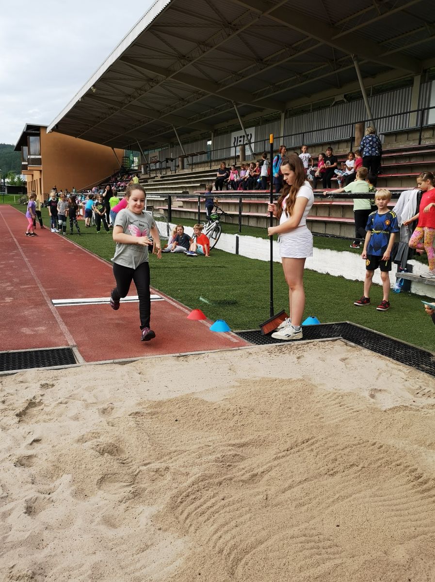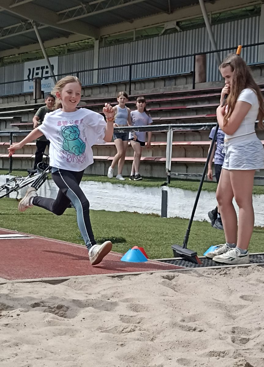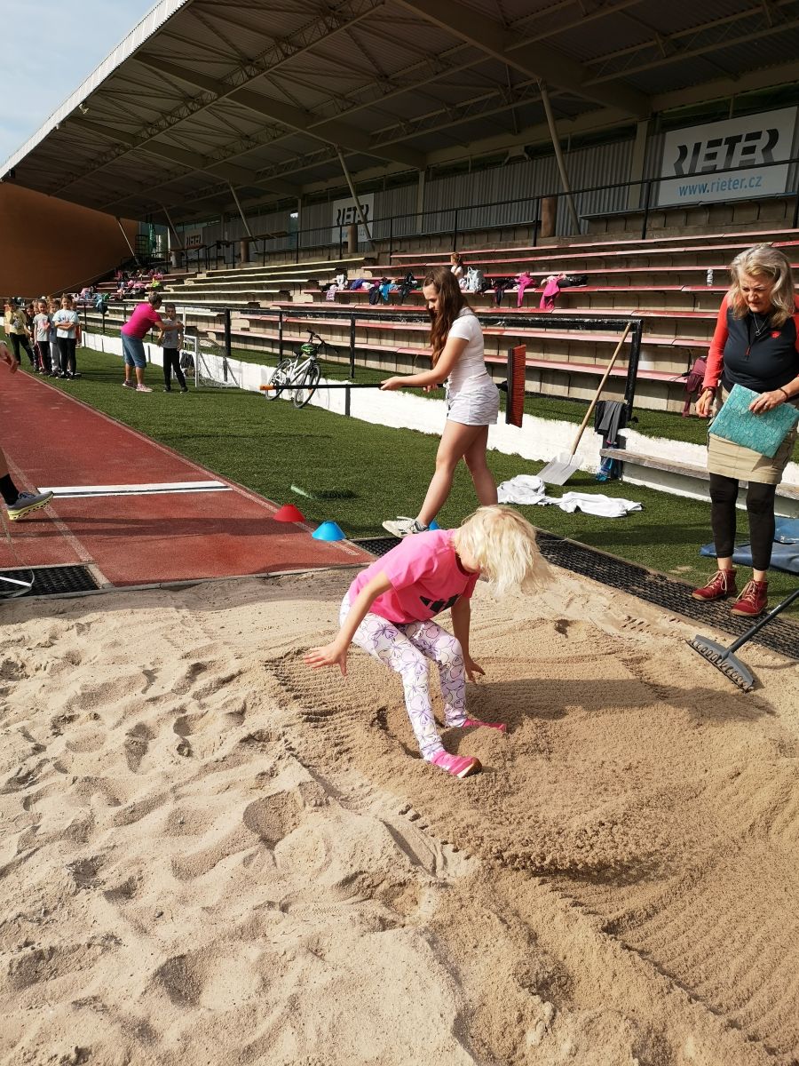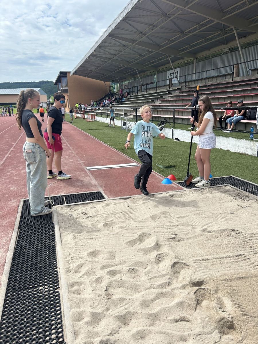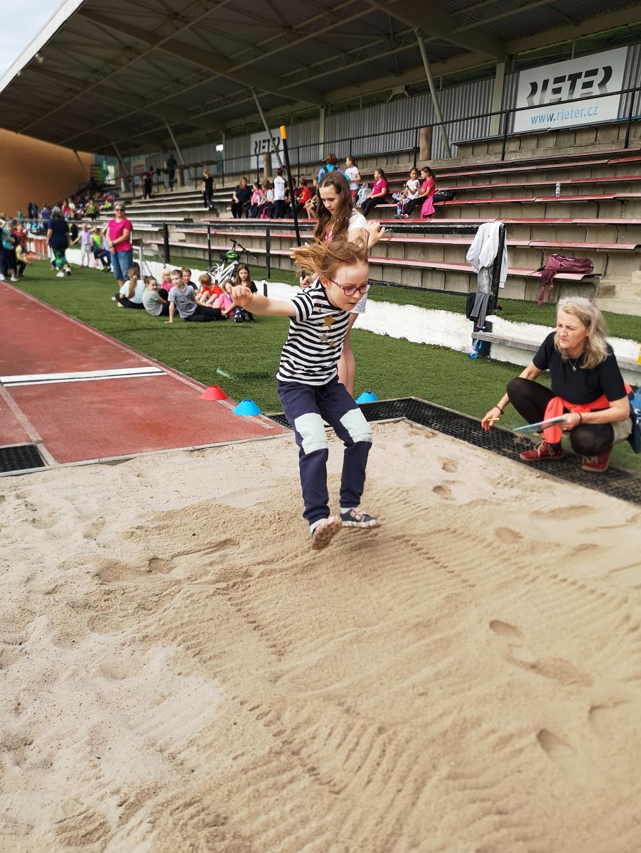 Žáci si vyzkoušeli sprint na 60m, skok daleký, hod míčkem a vytrvalostní závod. Vše probíhalo za pěkného červnového počasí. Všem dětem gratulujeme k dosaženým výkonům a děkujeme za pomoc při organizaci třídě 7. C.