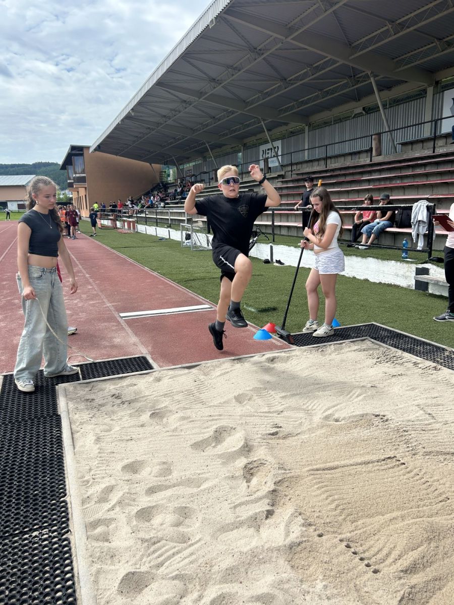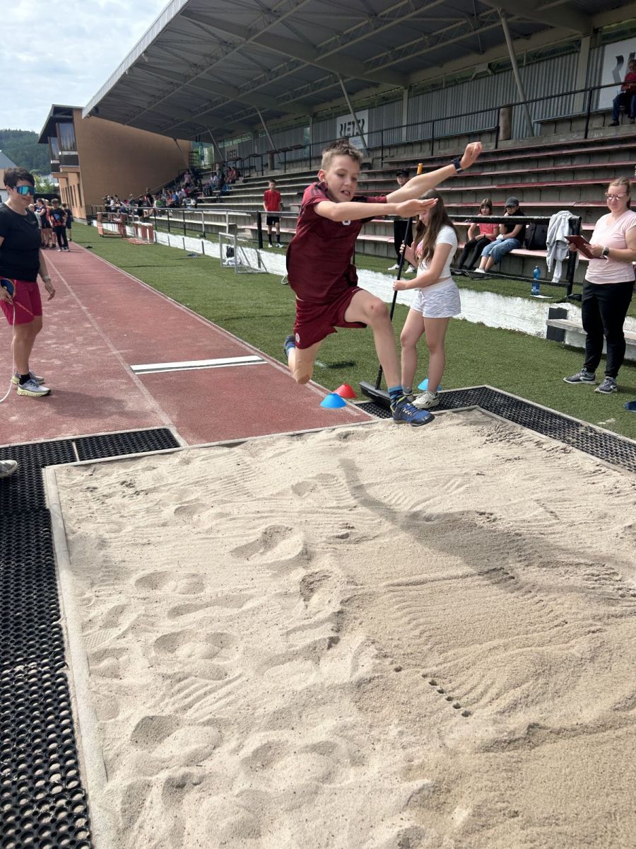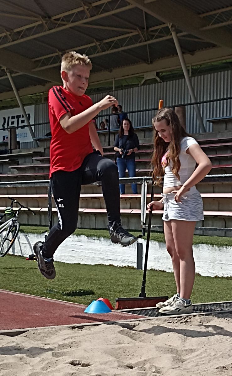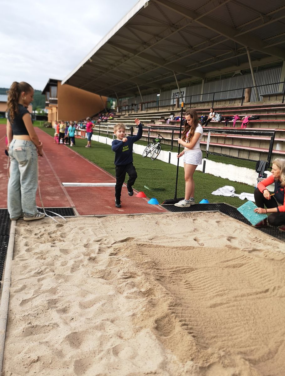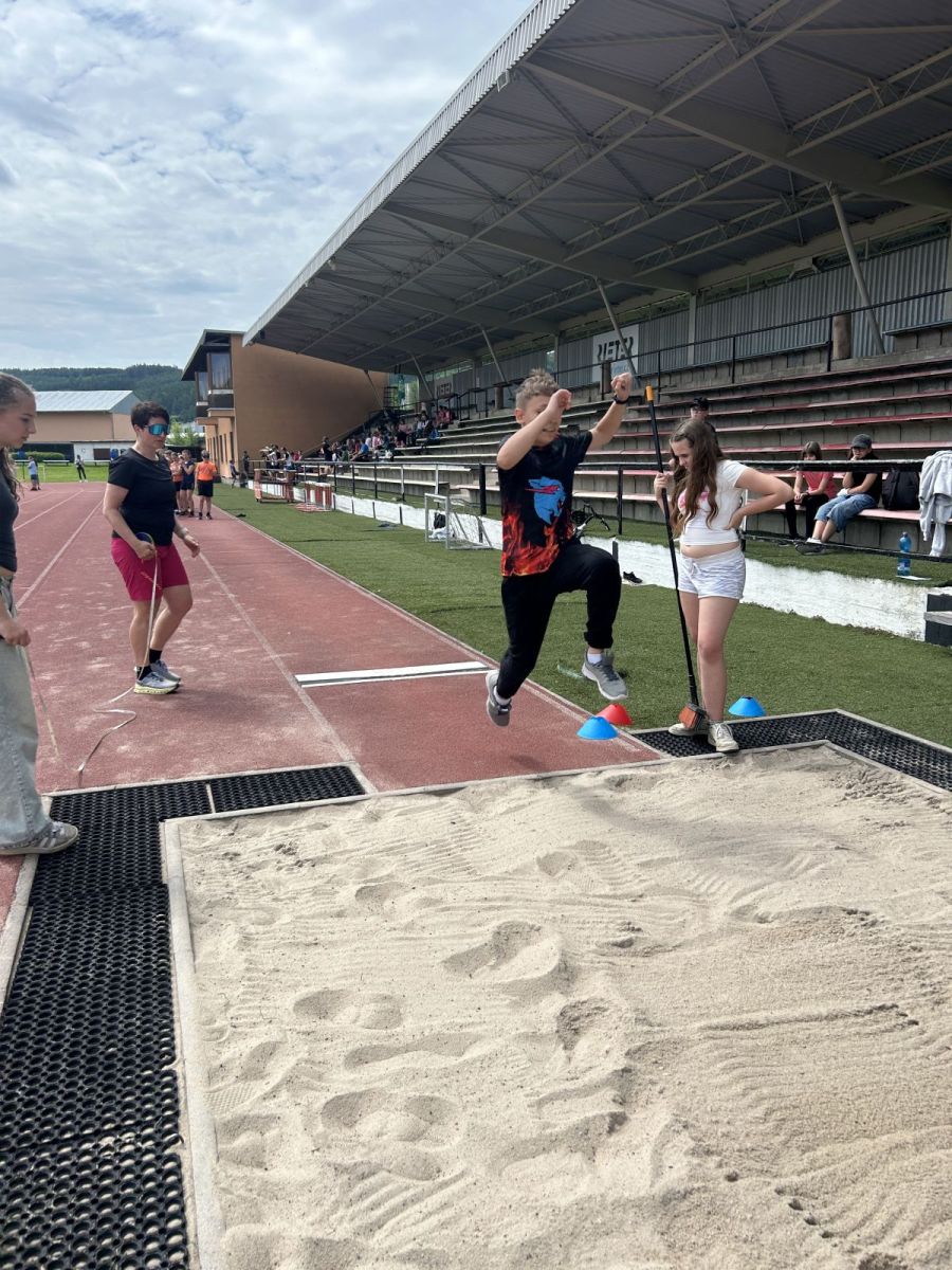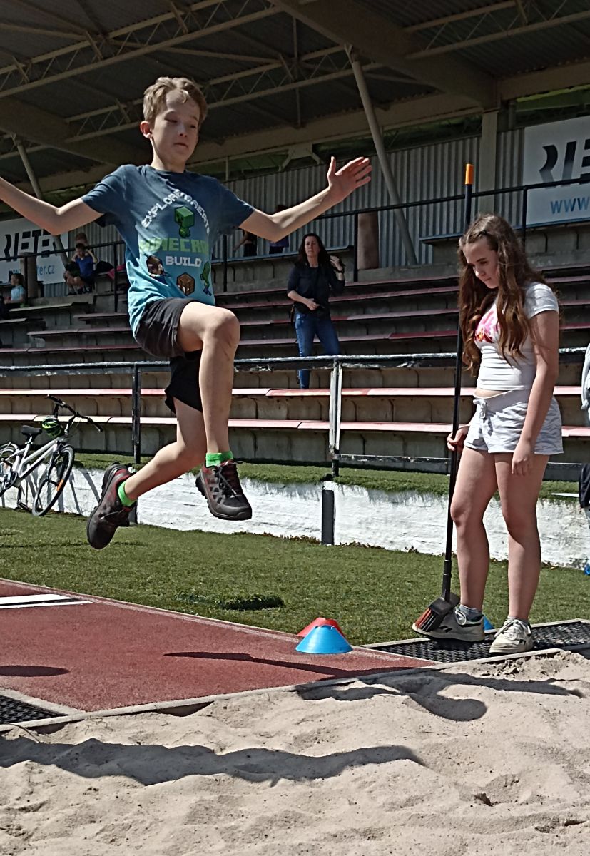 Žáci si vyzkoušeli sprint na 60m, skok daleký, hod míčkem a vytrvalostní závod. Vše probíhalo za pěkného červnového počasí. Všem dětem gratulujeme k dosaženým výkonům a děkujeme za pomoc při organizaci třídě 7. C.