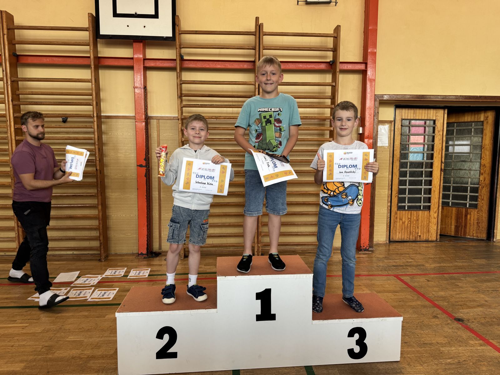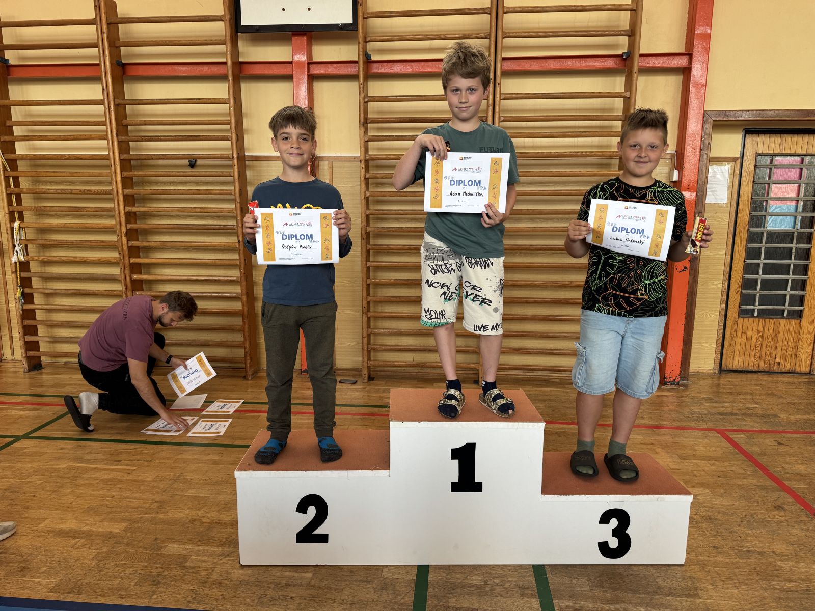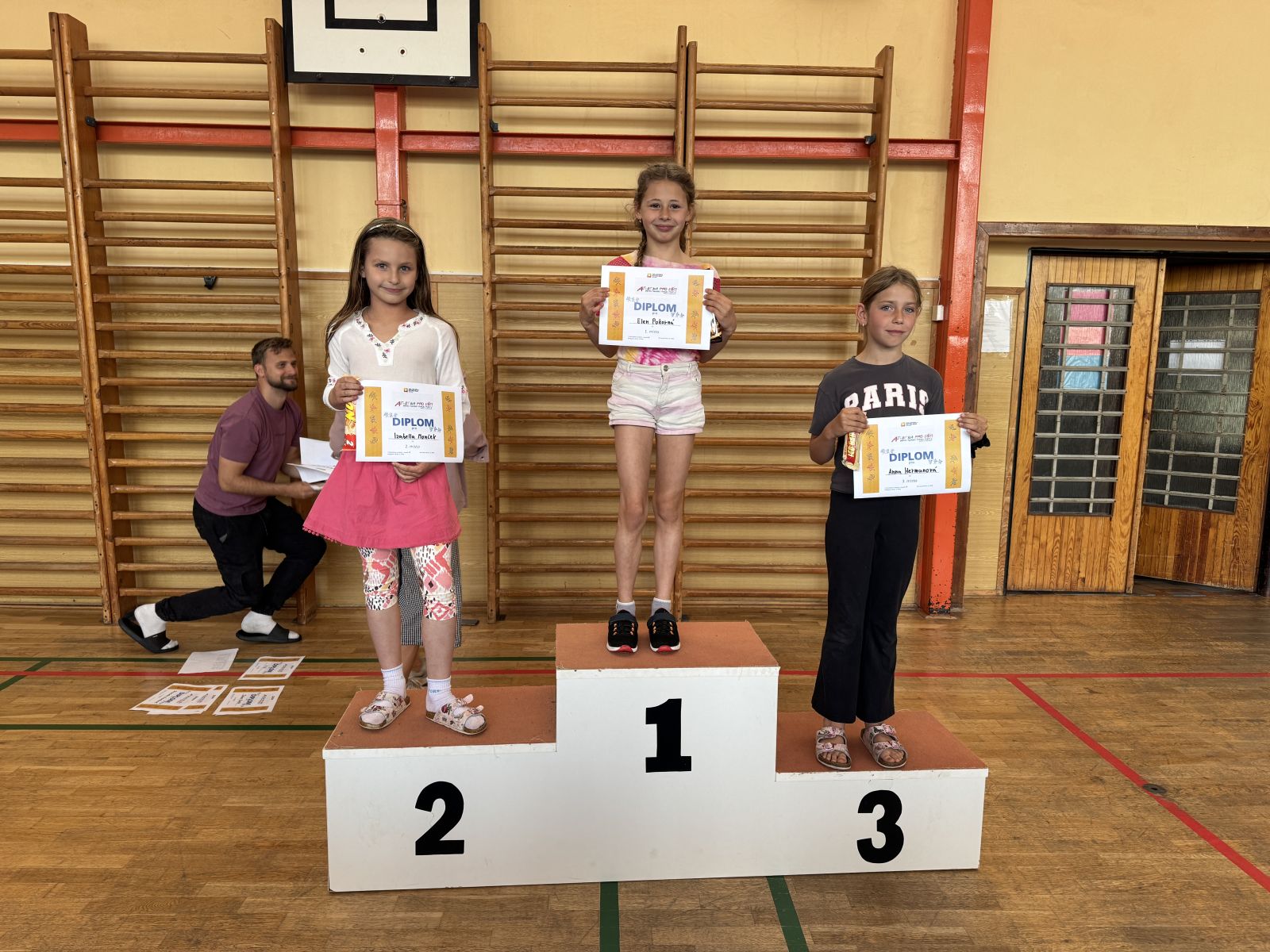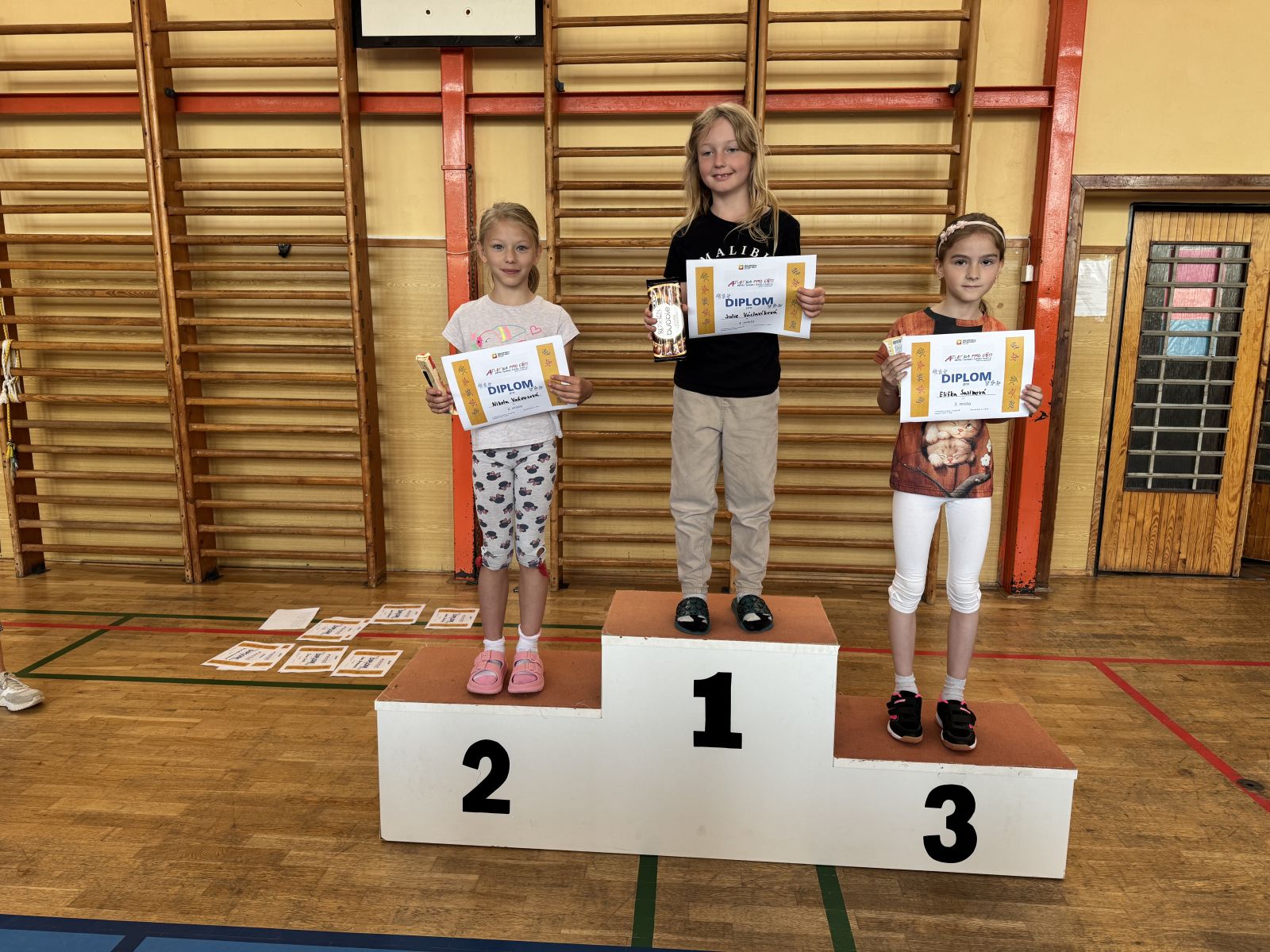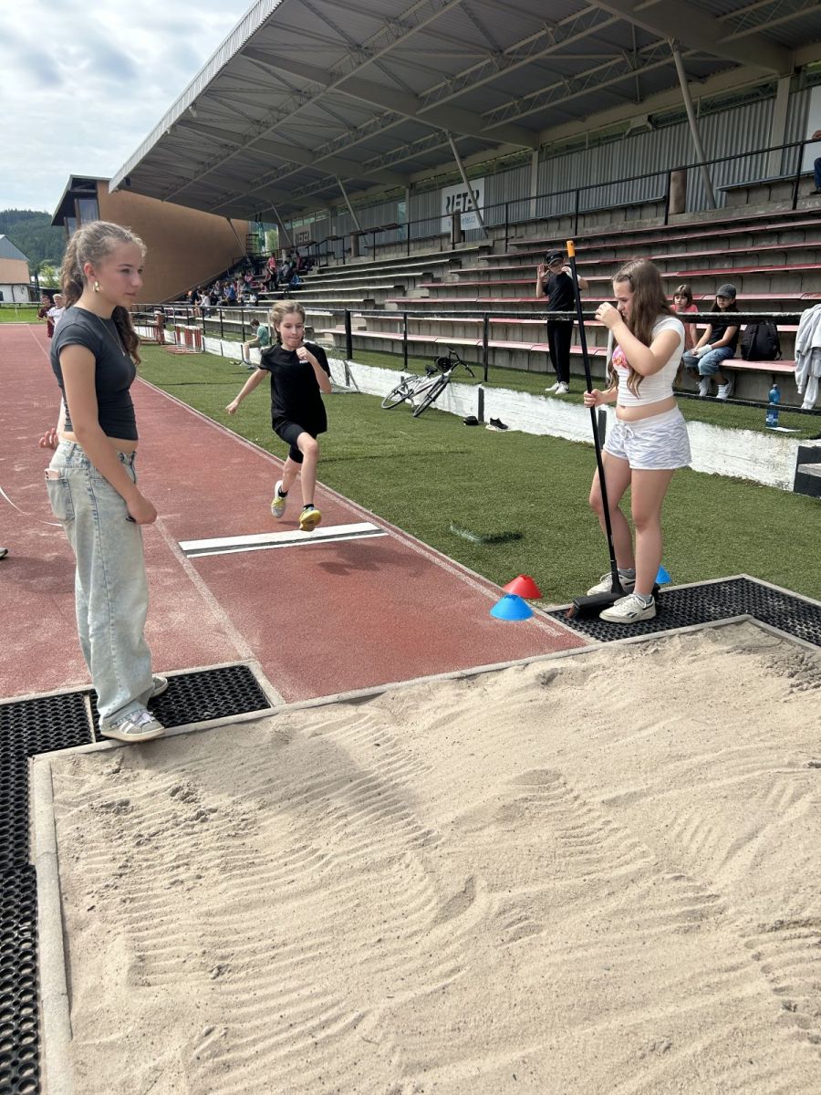 Žáci si vyzkoušeli sprint na 60m, skok daleký, hod míčkem a vytrvalostní závod. Vše probíhalo za pěkného červnového počasí. Všem dětem gratulujeme k dosaženým výkonům a děkujeme za pomoc při organizaci třídě 7. C.
