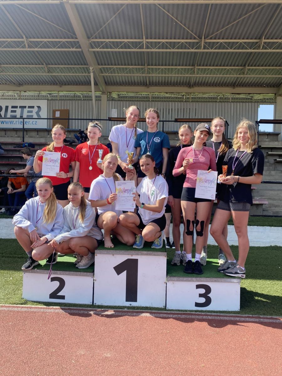 Další skvělý výsledek představovalo třetí místo štafety starších dívek. I přes silnou konkurenci se dívky dokázaly prosadit a vybojovat si své místo na pódiu.