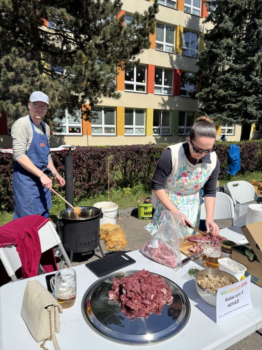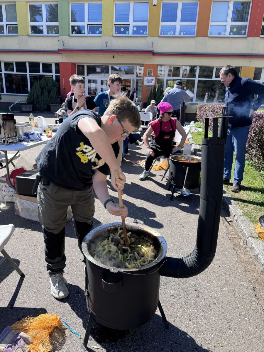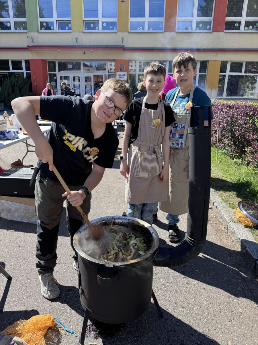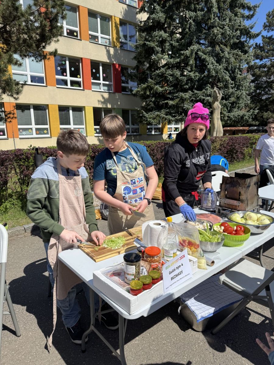 Speciální poděkování si zaslouží všech 5 odvážných týmů, které se zapojily do přípravy svého guláše při gulášfestu – nejen že provoněly prostranství před školou, ale hlavně ukázaly, že odvaha a dobrá nálada chutnají nejlépe!
