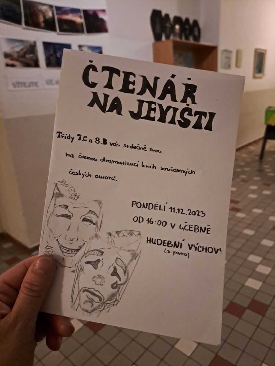 Celostátní přehlídka Čtenář na jevišti je projekt na podporu čtení, který vznikl v rámci kampaně Rosteme s knihou. Děti mají za úkol zpracovat libovolnou knížku do podoby scénického čtení. Důležitá je práce s textem a vlastní interpretace. V letošním roce se této přehlídky zúčastnili někteří žáci ze 7.C a 8.B. Děti ze 7.C si vybraly knihu Transport za věčnost od Františka Tichého, která je inspirovaná skutečnými osudy chlapců, kteří žili v Praze a Terezíně. Žáci z 8.B zpracovali knihu Klub divných dětí od Petry Soukupové. Příběh spojí dohromady čtyři děti, které jsou svým způsobem jiné než jejich vrstevníci. Náhodné setkání pak přeroste v pravé dětské přátelství.