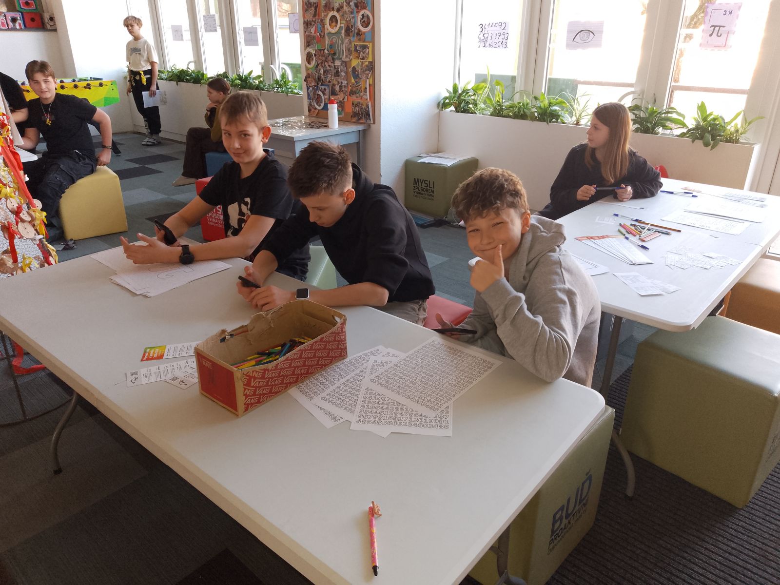 Poděkování patří všem, kteří přišli oslavit tento svátek matematiky a také pořadatelské třídě VI. B, která se o ně po celý den starala.