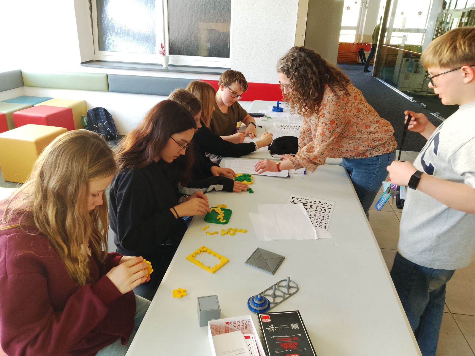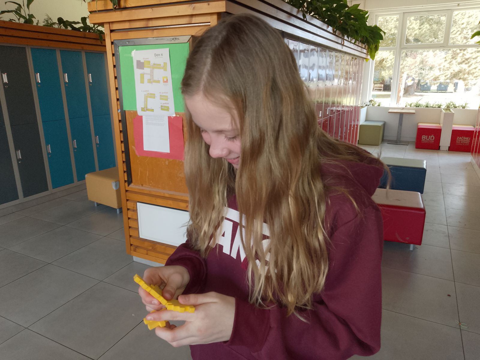 Podruhé jsme na naší škole slavili Mezinárodní den matematiky – „Den π“. Tentokrát o den dříve, abychom se nemuseli už tak dlouho těšit. Pro žáky prvního i druhého stupně byly v lelkovnách nachystány matematické omalovánky, rébusy, hlavolamy, skládanky, kris kros, sudoku a piškvorky. Také tu byla možnost vlastnoručně si změřit hodnotu čísla π. Po celé škole byl rozmístěn labyrint matematických a logických úkolů, o velké přestávce proběhla soutěž v zapamatování číslic Ludolfova čísla a v průběhu třetí vyučovací hodiny jsme na hřišti vyzkoušeli ověřit aproximaci, že π je zhruba 22/7.