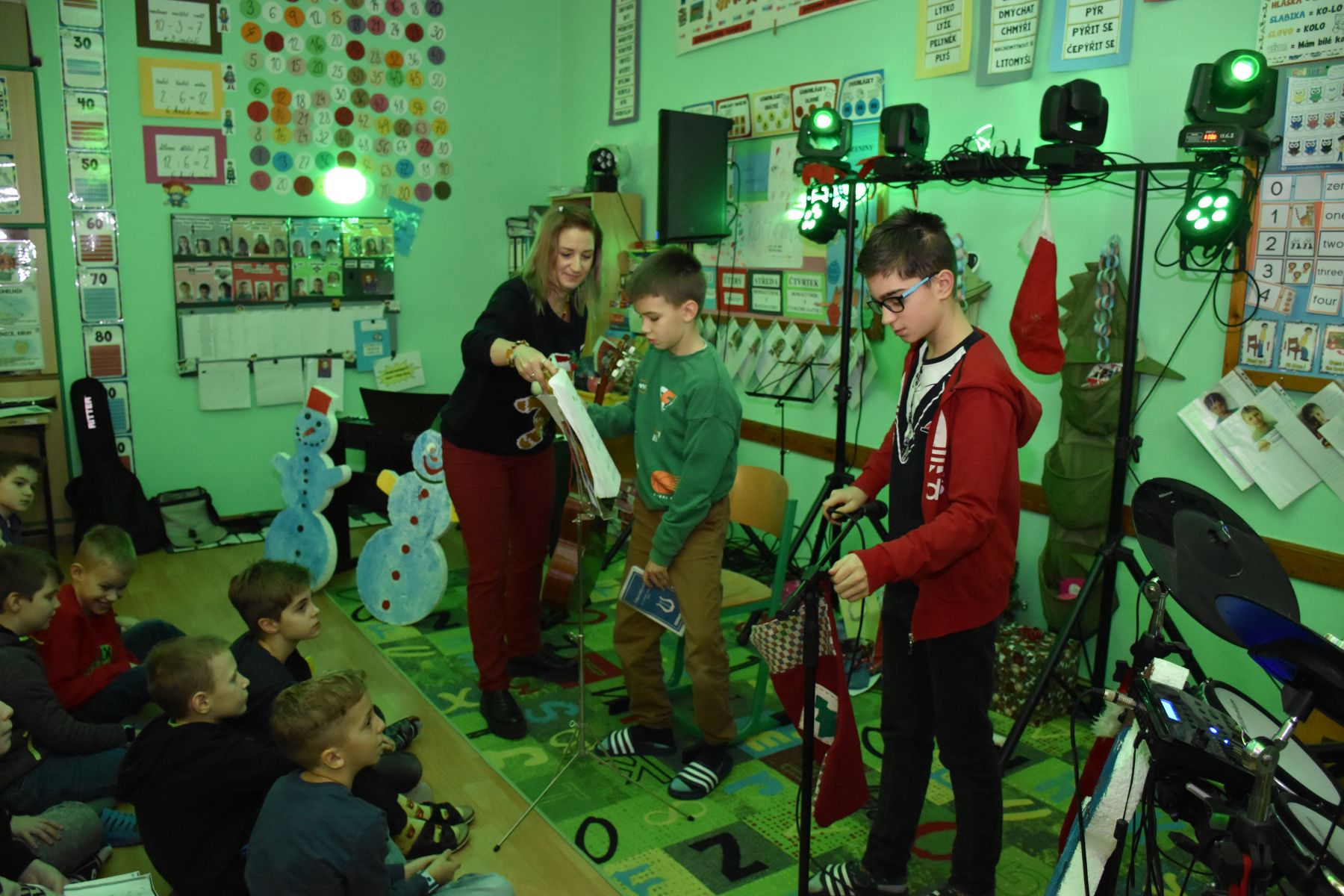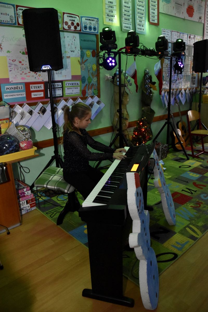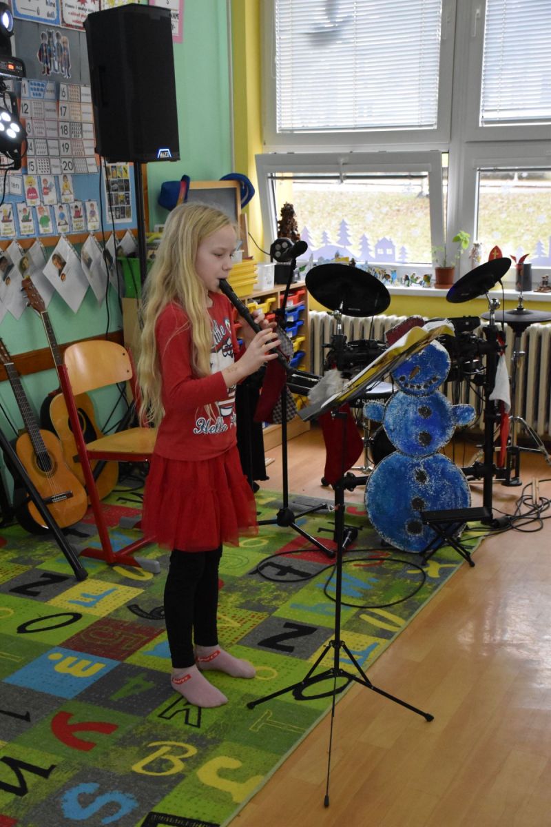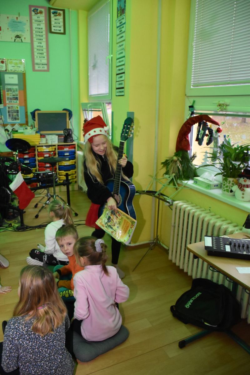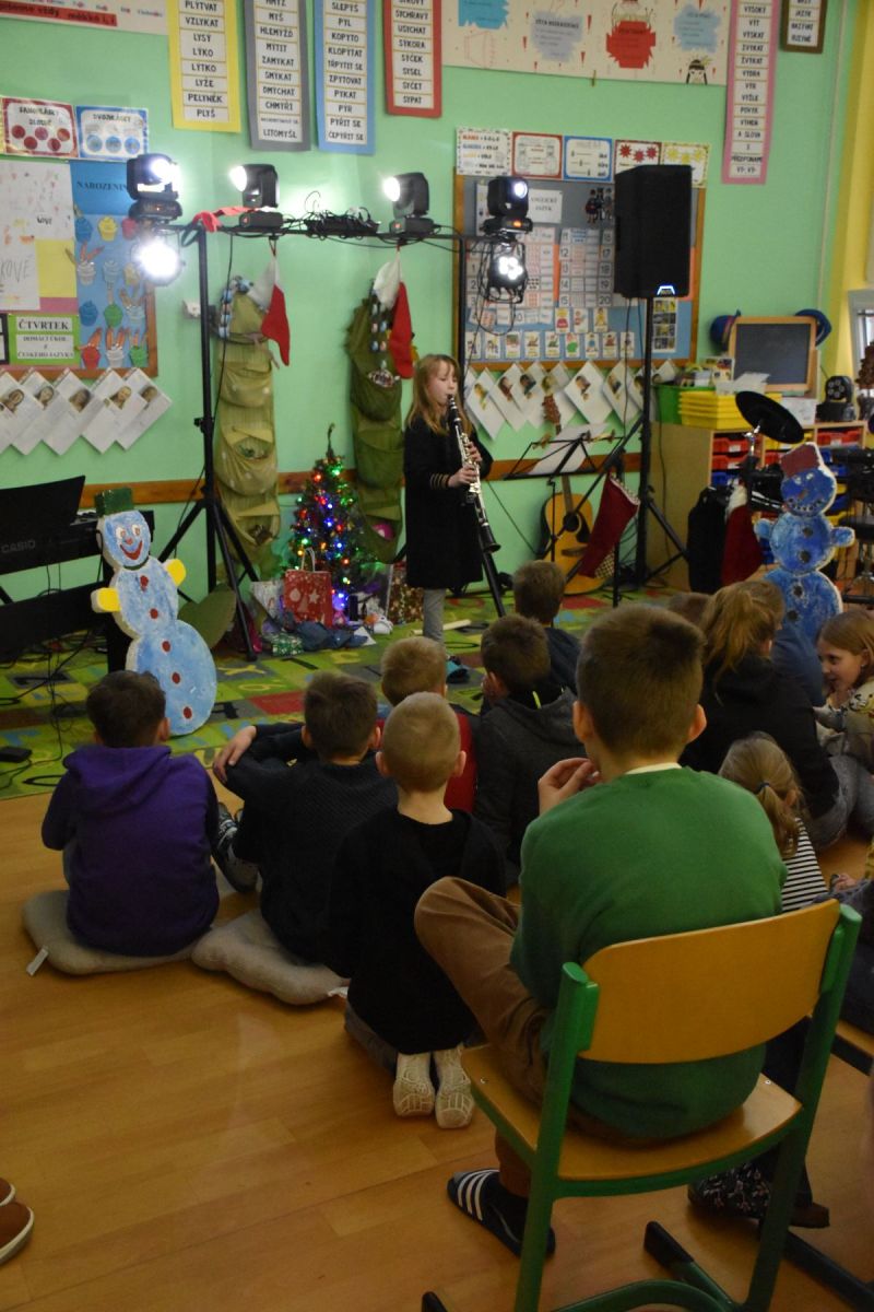 Tradičně se žáci z 1. stupně, kteří navštěvují ZUŠ, sešli před Vánocemi a dělali radost svým spolužákům.