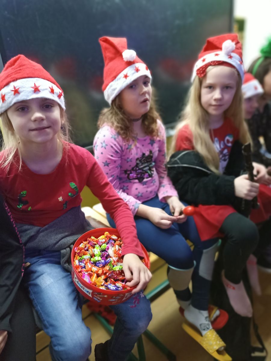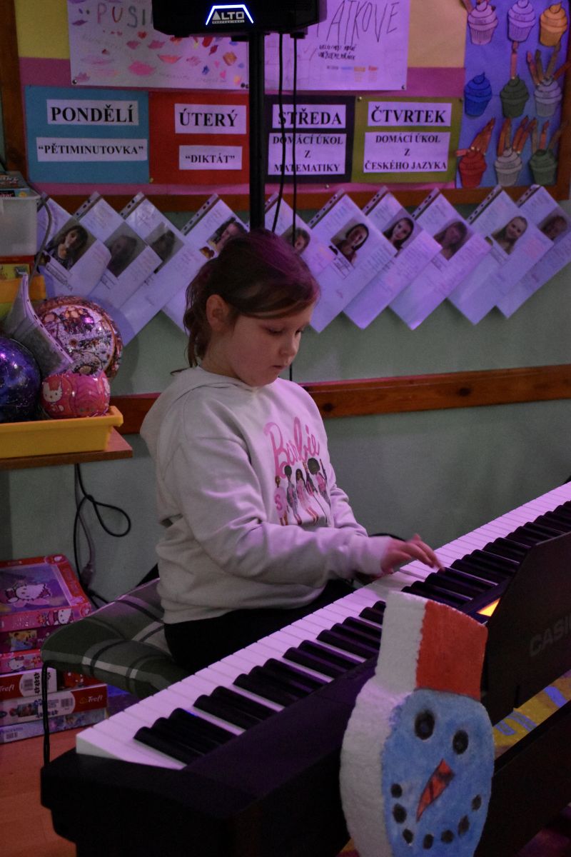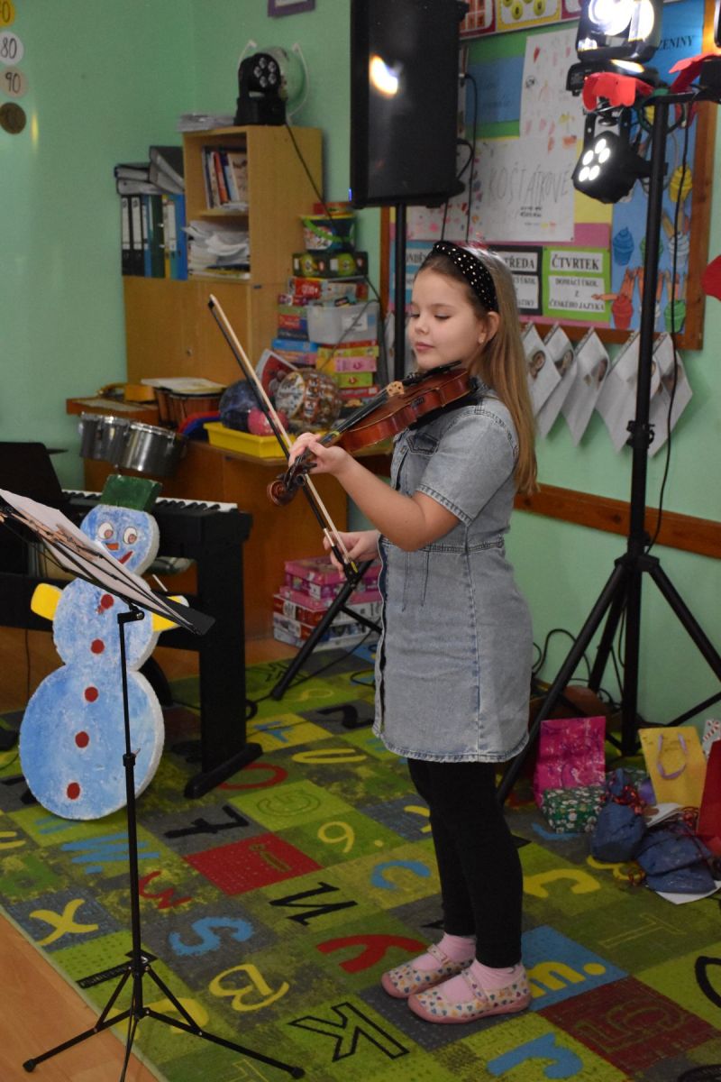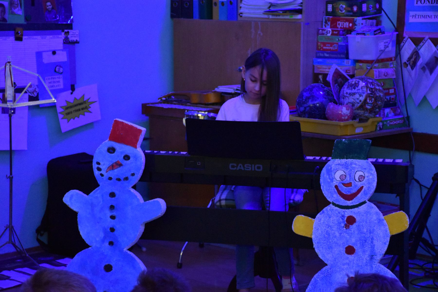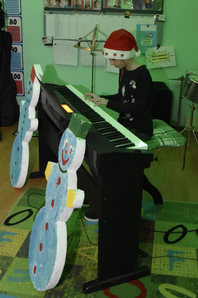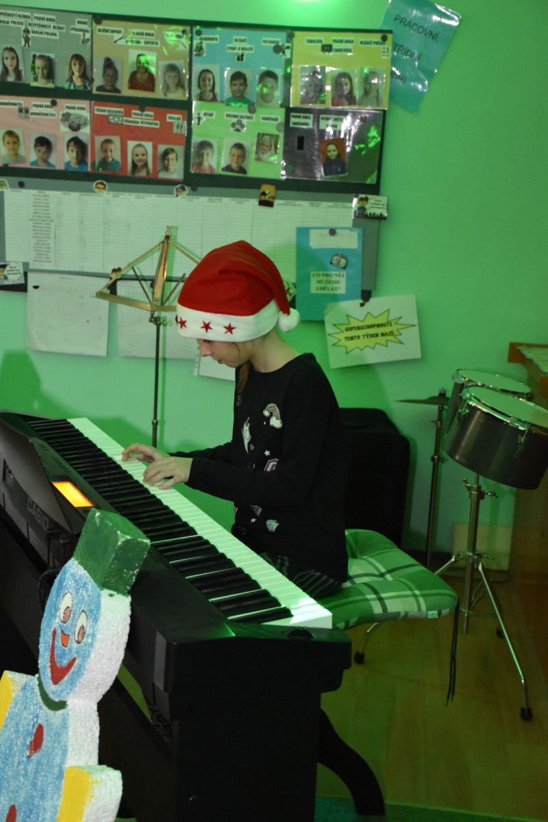 Tradičně se žáci z 1. stupně, kteří navštěvují ZUŠ, sešli před Vánocemi a dělali radost svým spolužákům.