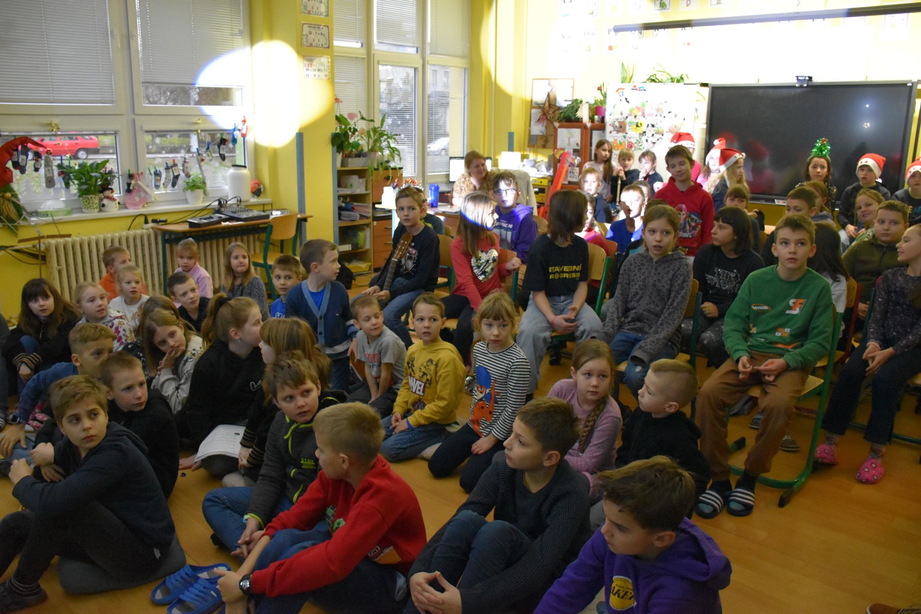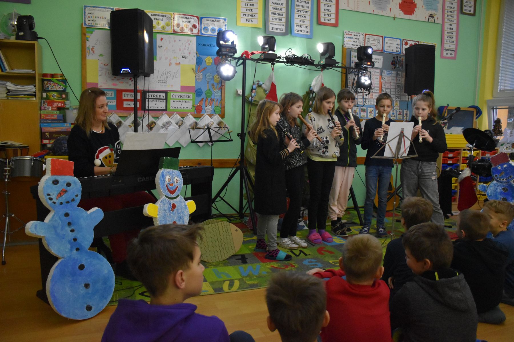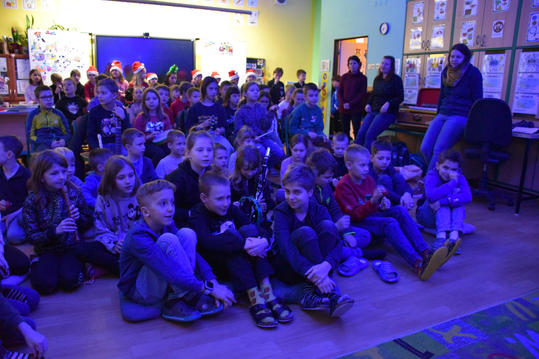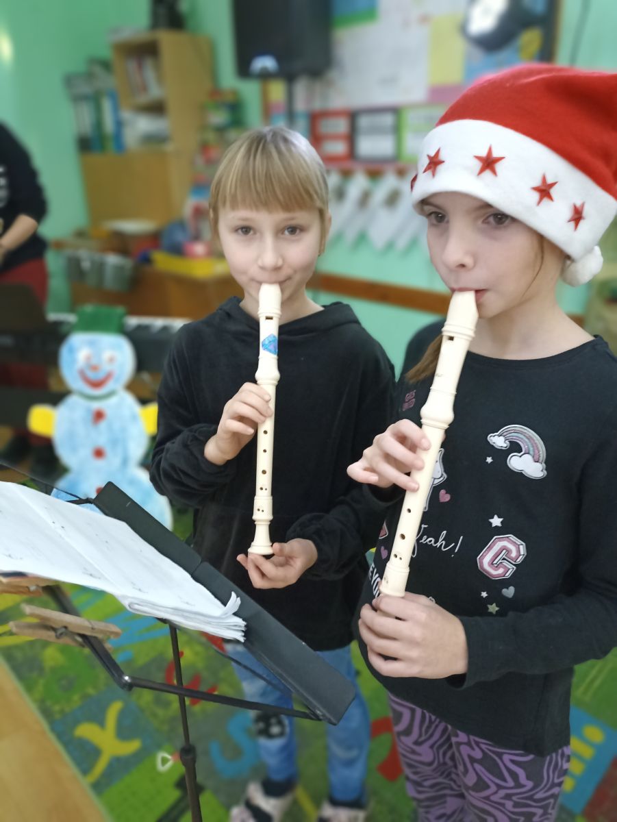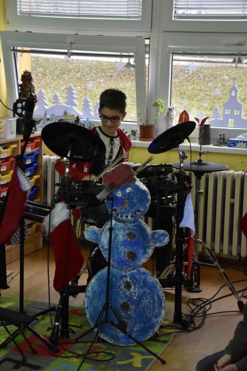 Tradičně se žáci z 1. stupně, kteří navštěvují ZUŠ, sešli před Vánocemi a dělali radost svým spolužákům.