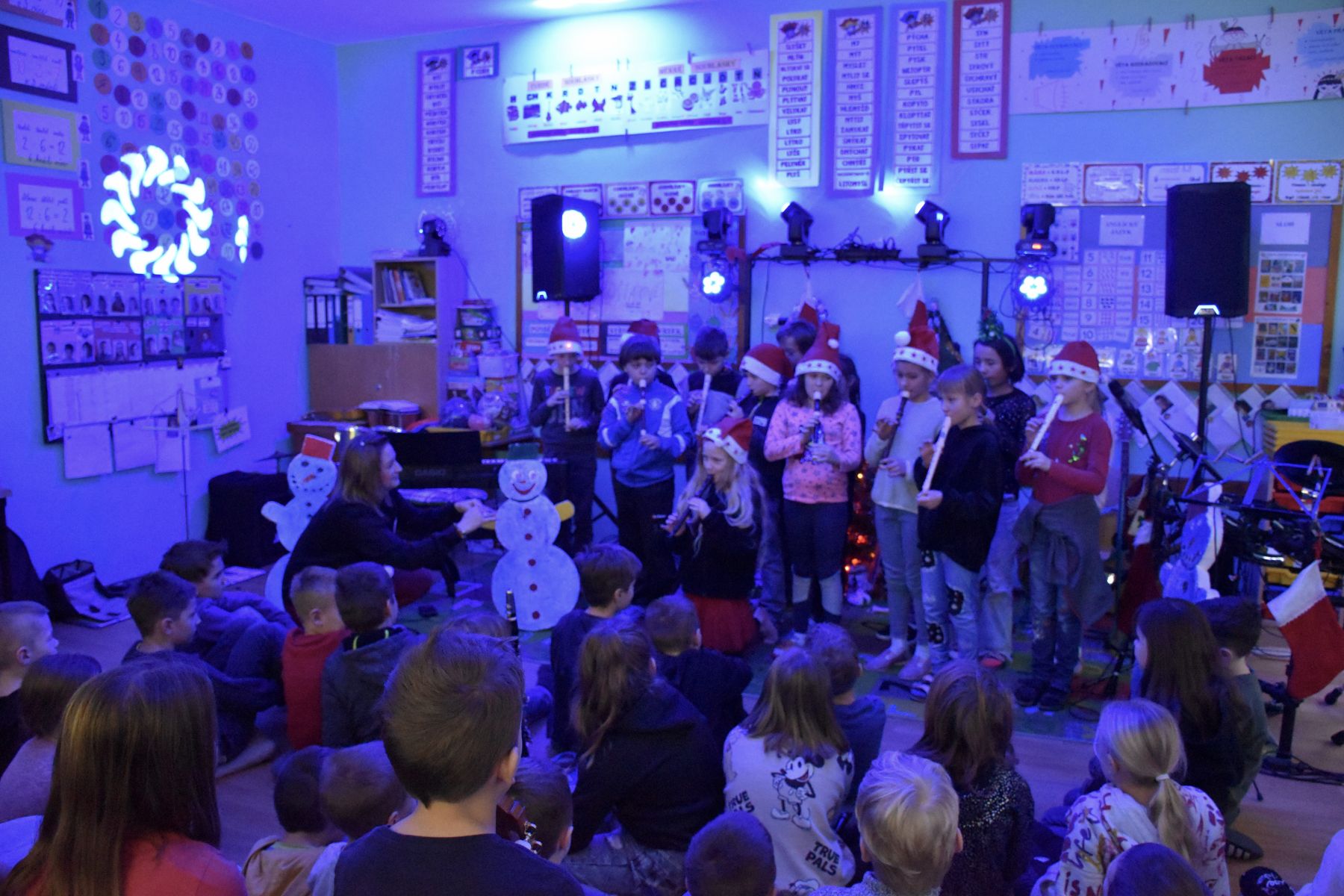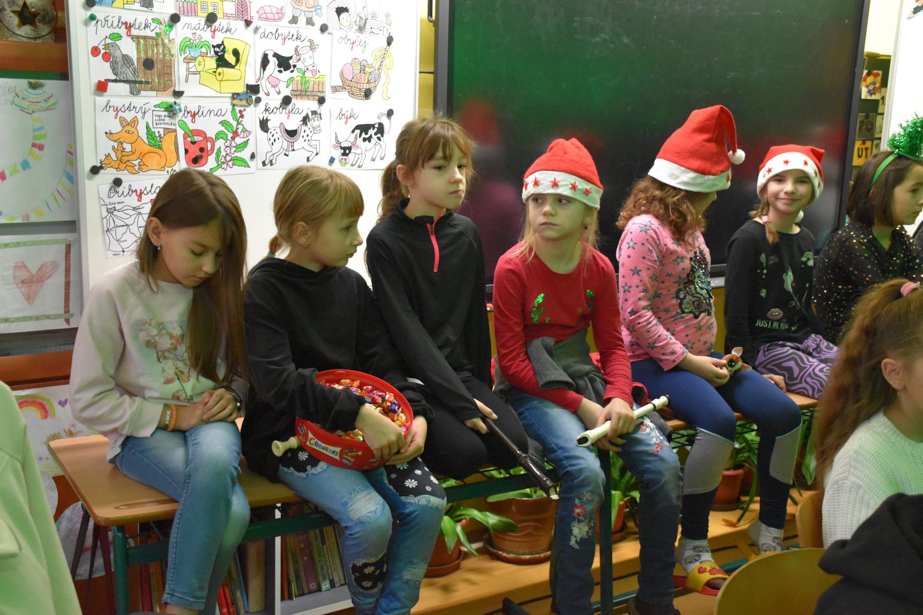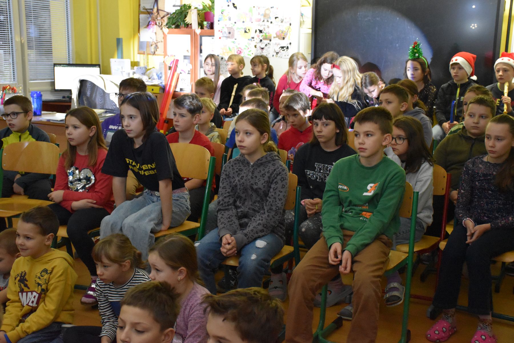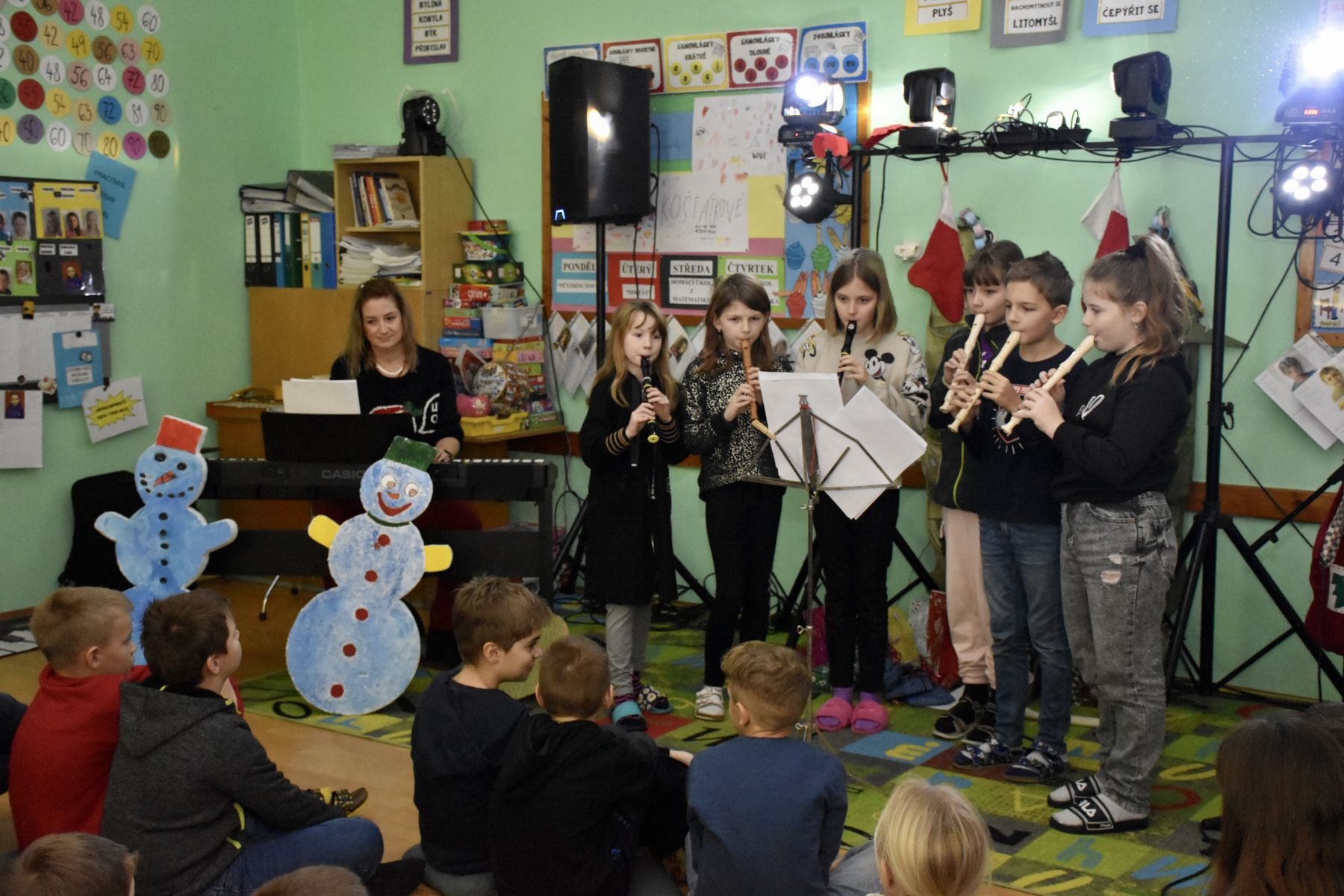 Tradičně se žáci z 1. stupně, kteří navštěvují ZUŠ, sešli před Vánocemi a dělali radost svým spolužákům.