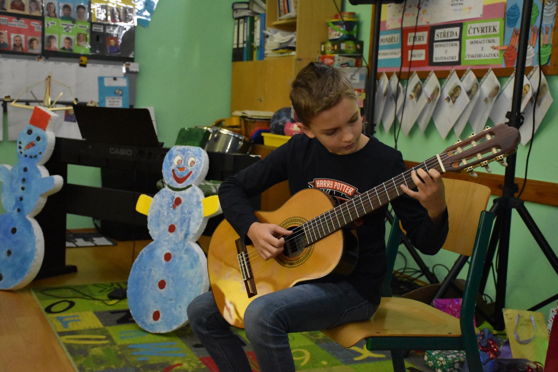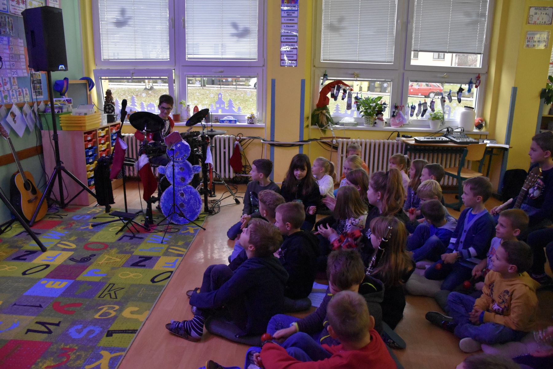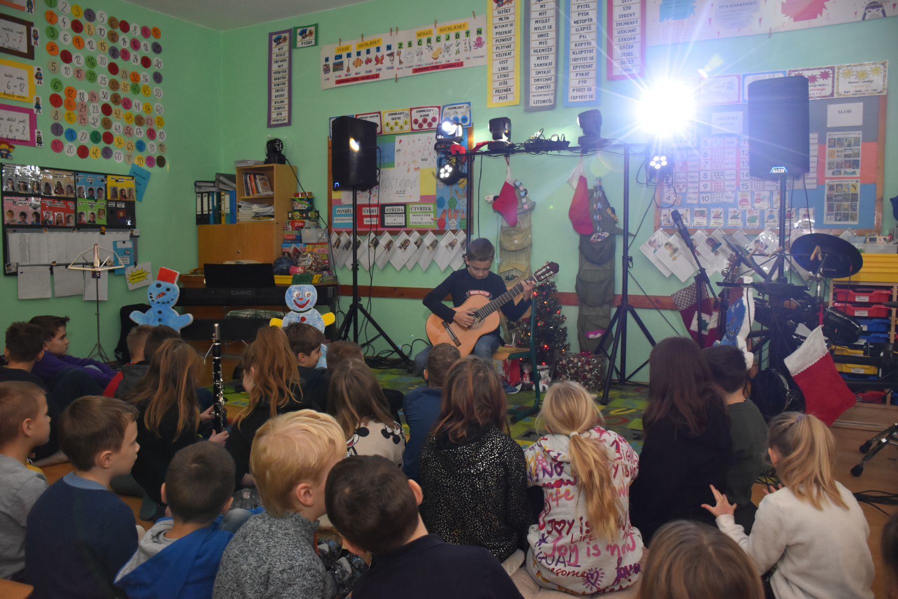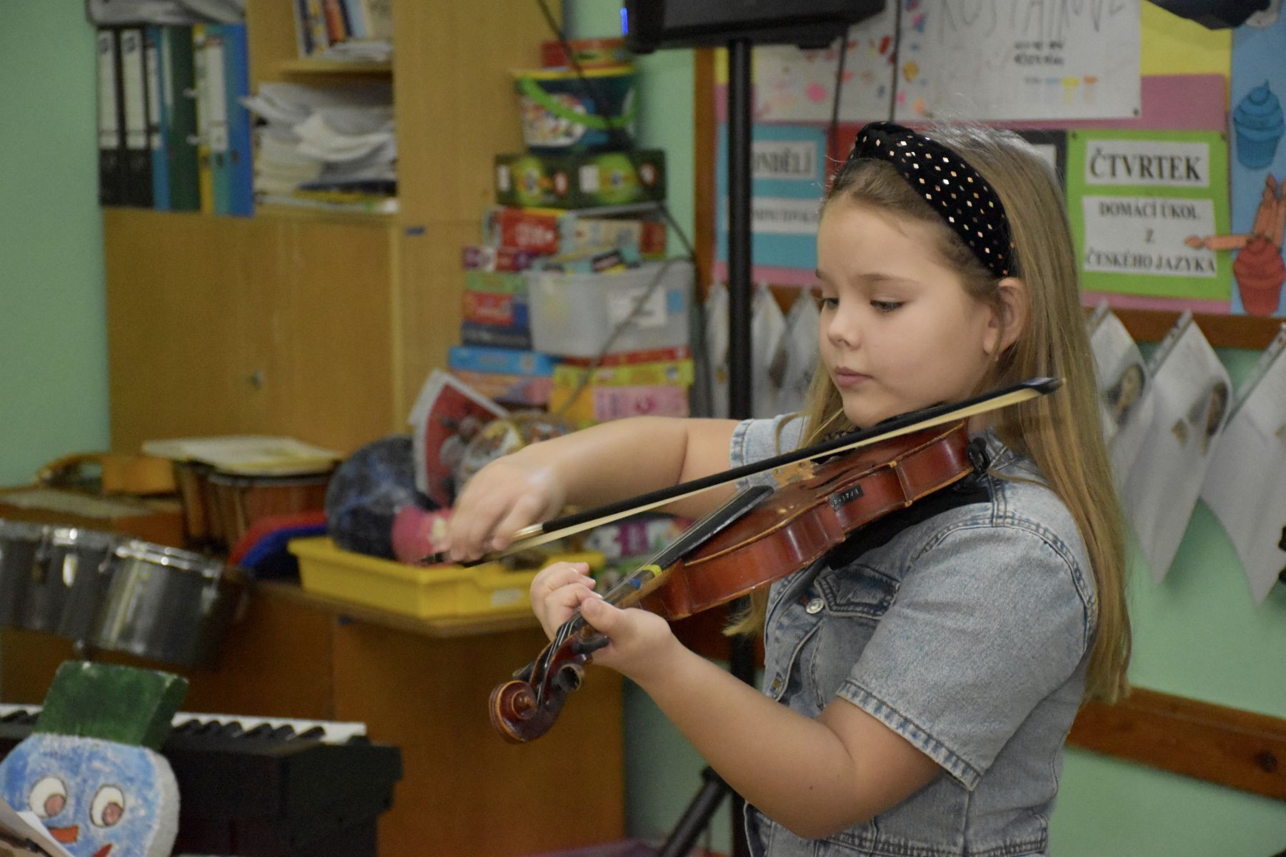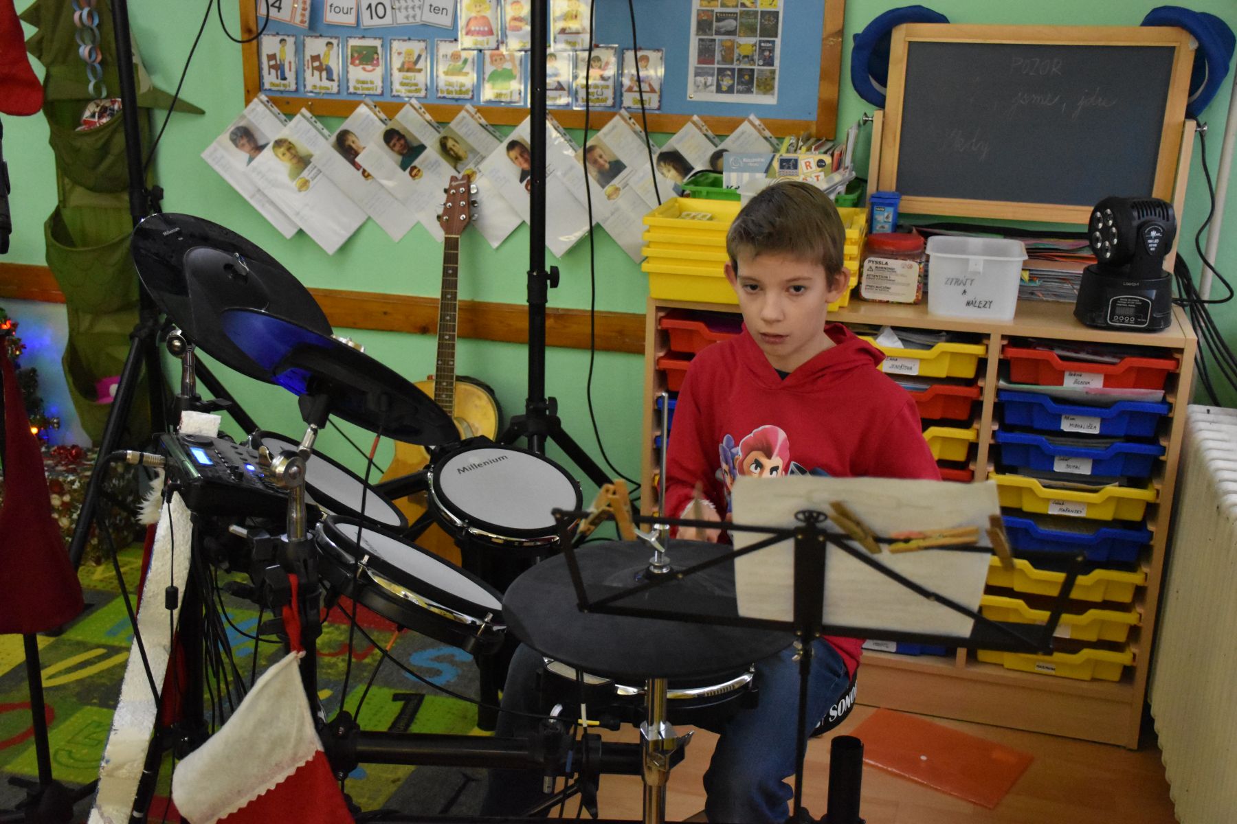 V tématicky ozvučené třídě se tak ozvaly tóny z klavíru, kytar, bicí soupravy, fléten nebo třeba z klarinetu.