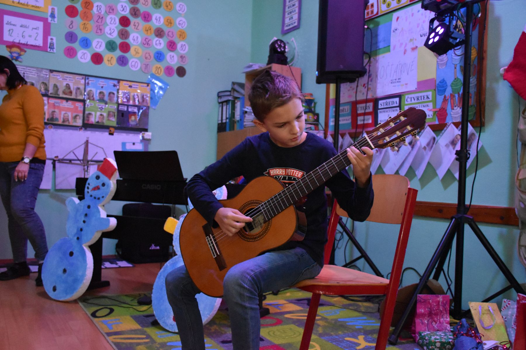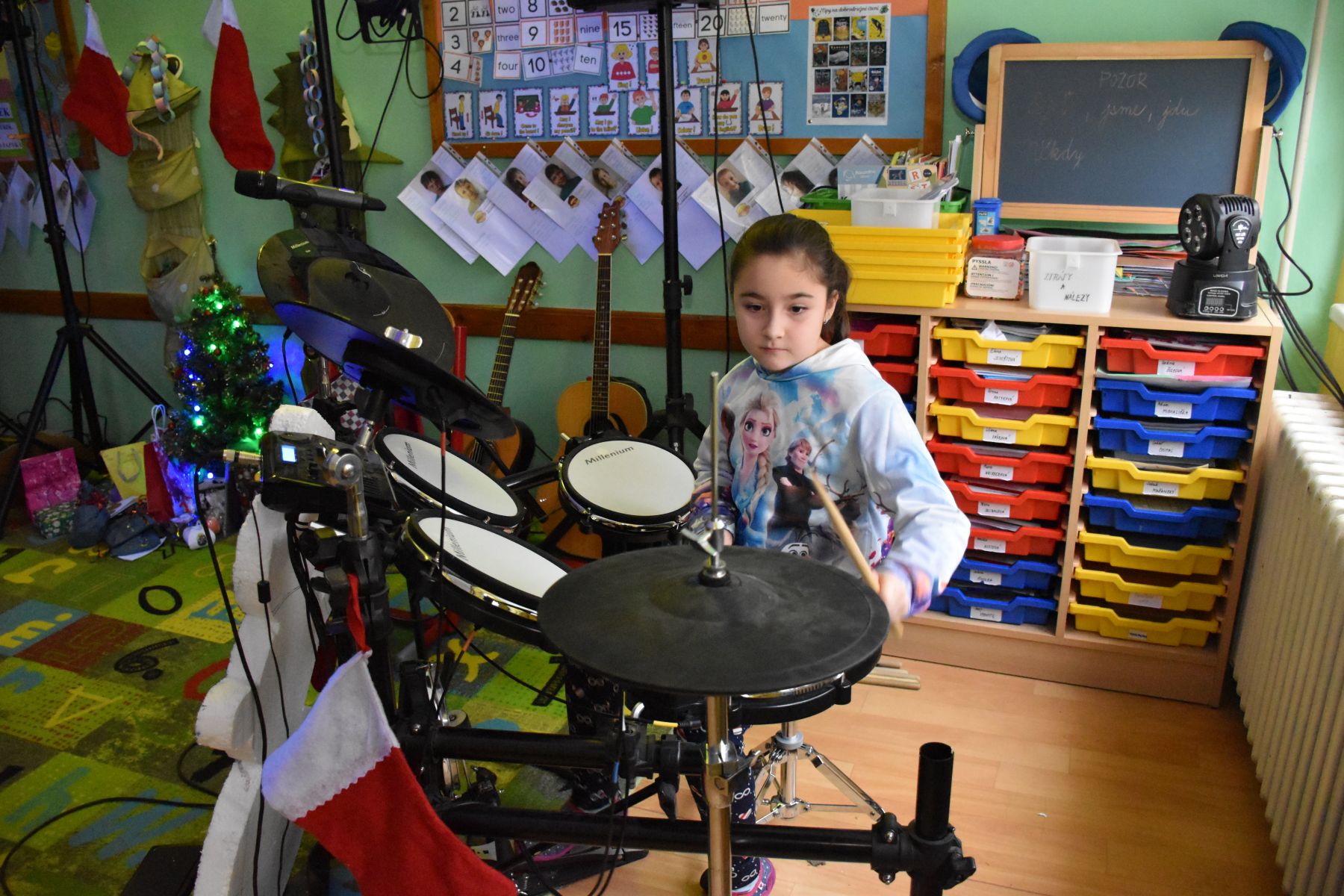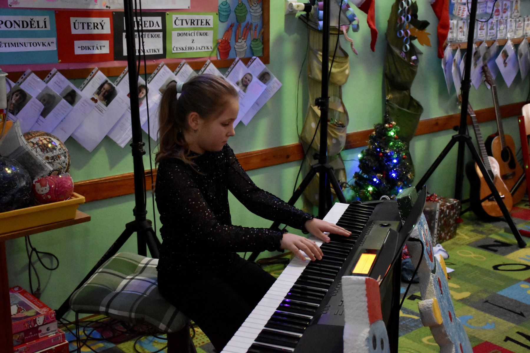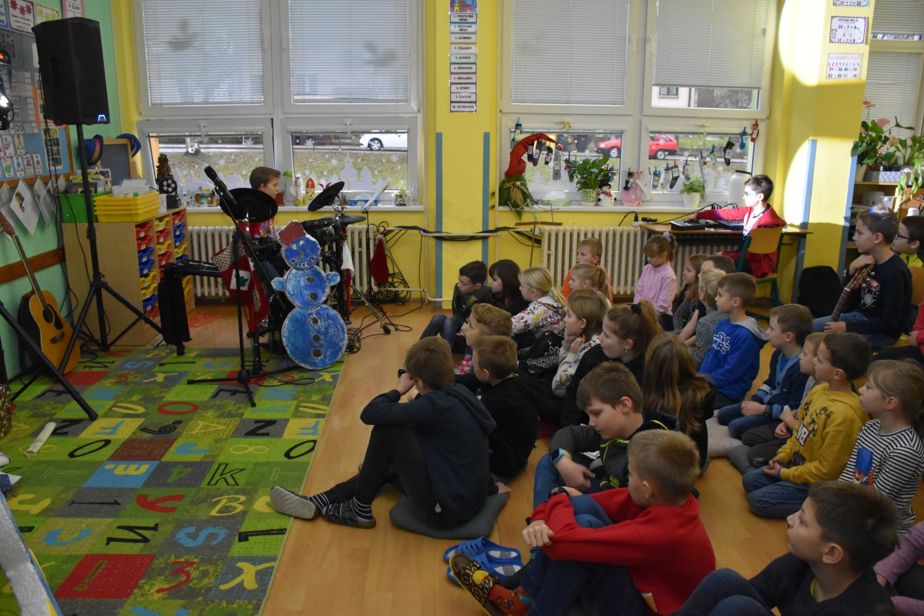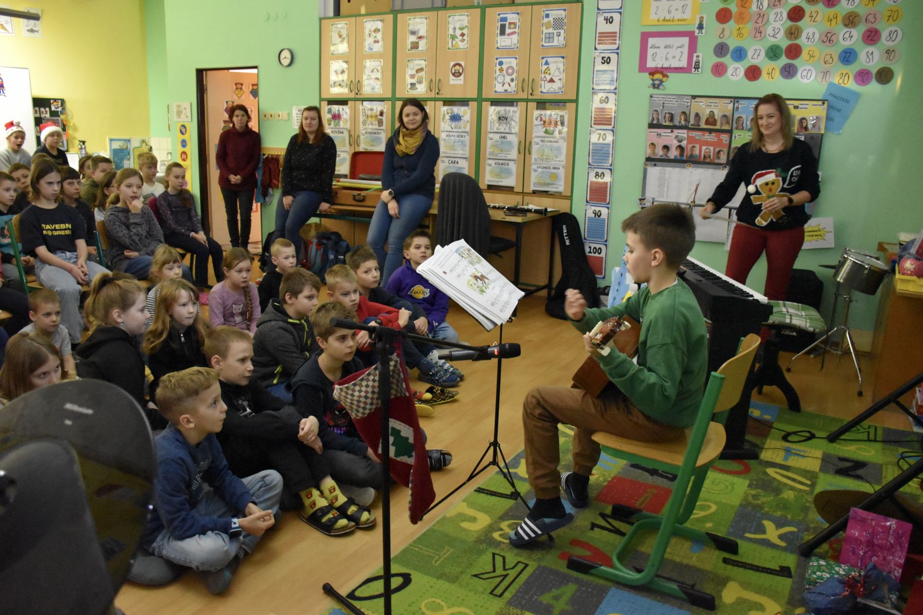 V tématicky ozvučené třídě se tak ozvaly tóny z klavíru, kytar, bicí soupravy, fléten nebo třeba z klarinetu.