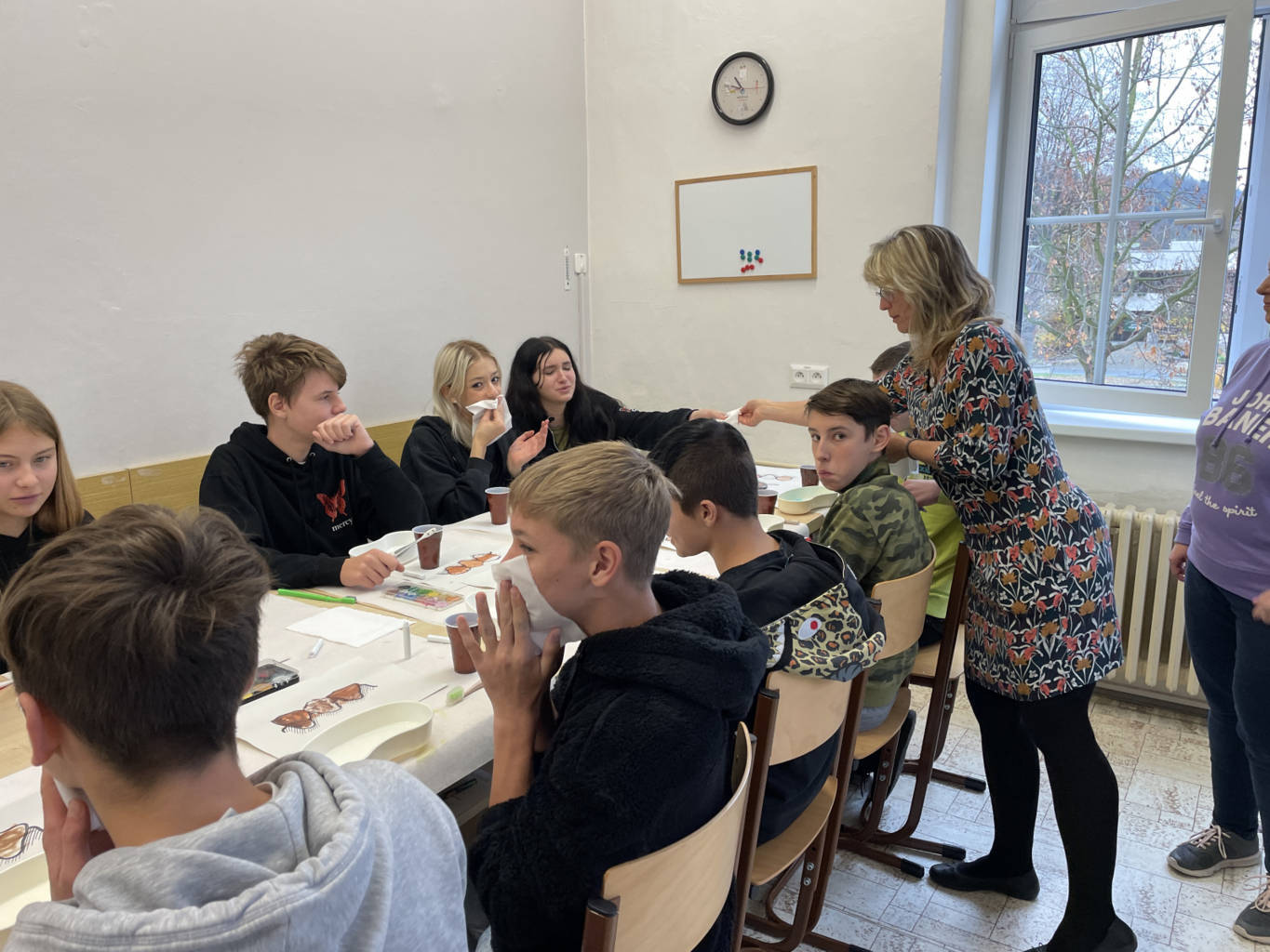 Po návratu do školy si v rámci přírodopisu zopakovali nabyté informace a znovu ověřili reakci kyseliny se skořápkou po 4 hodinách působení.