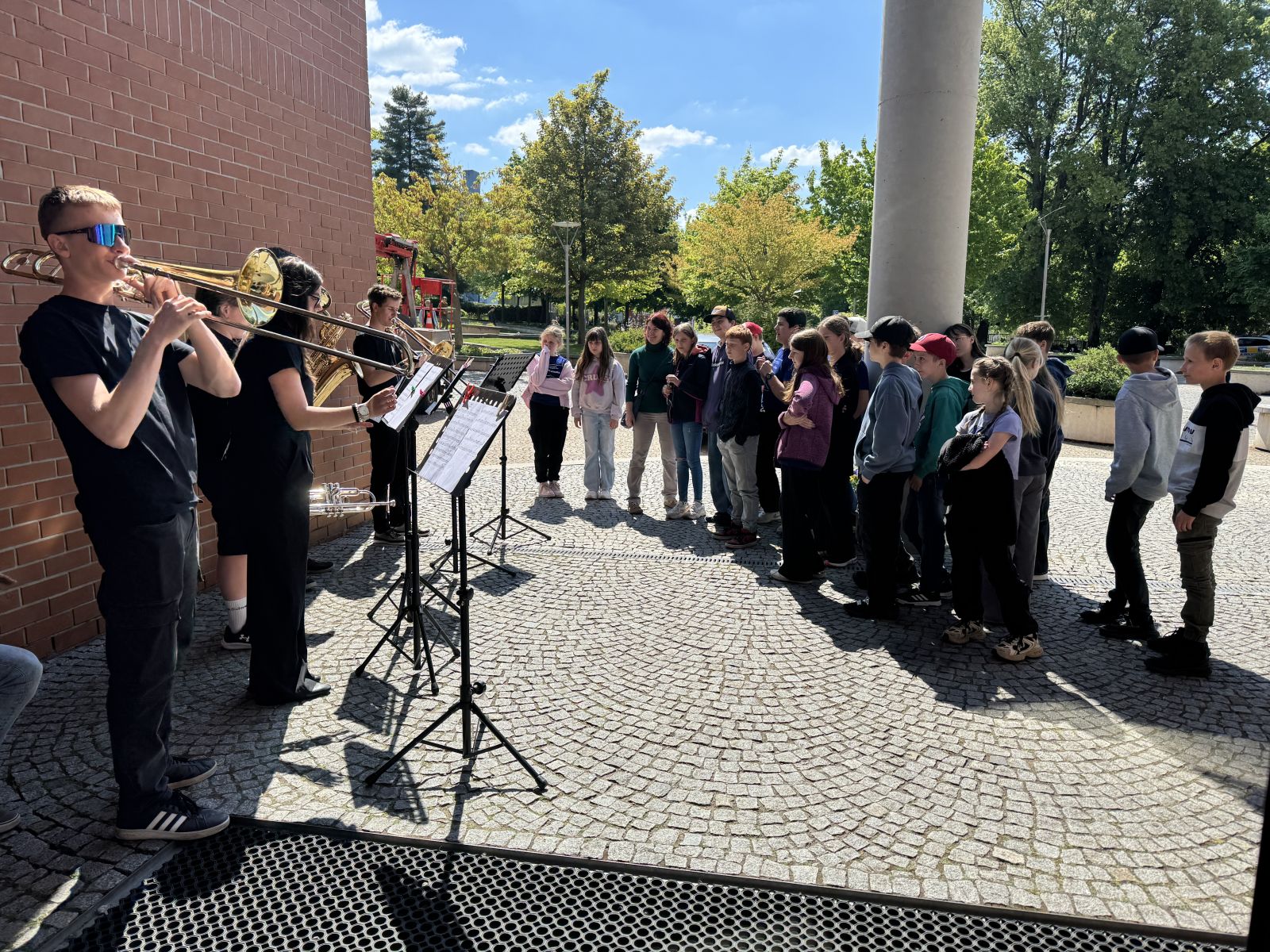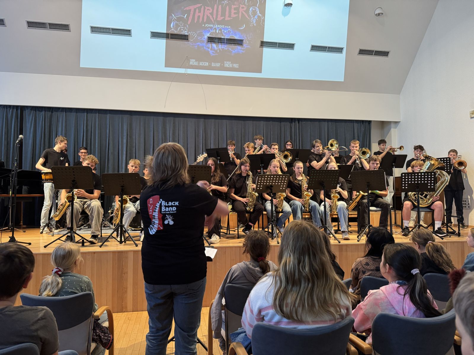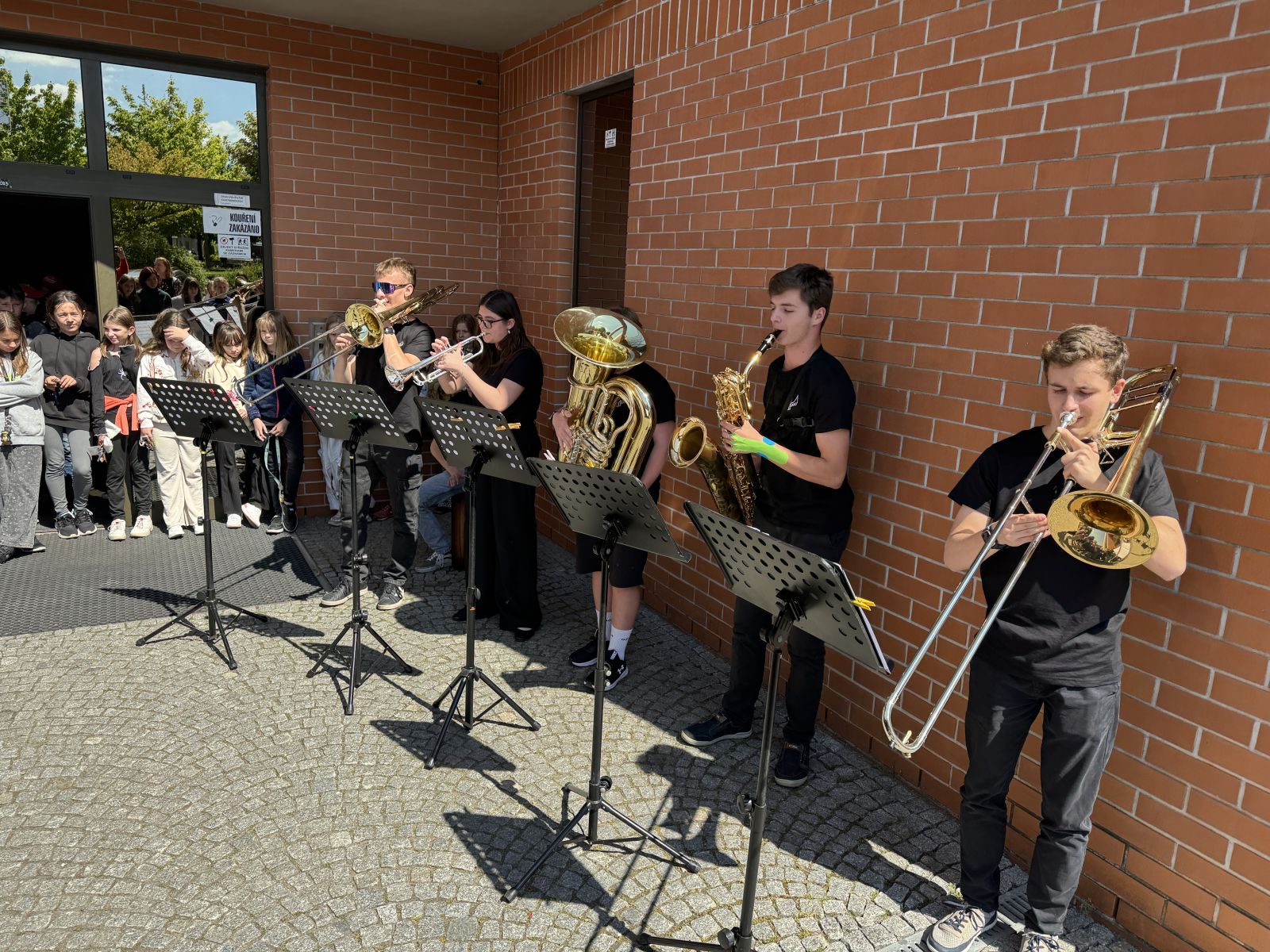 Během dnešního dopoledne se celý náš první stupeň ocitl v první polovině 20. století v USA, kde v té době vznikala swingová hudba. Děti se na koncertě orchestru Black band naší ústecké ZUŠ seznámily se stylem této hudby a nástroji, které jsou pro takový orchestr typické. Nadšení posluchačů bylo až takové, že se tleskalo do rytmu a dokonce se i tančilo.