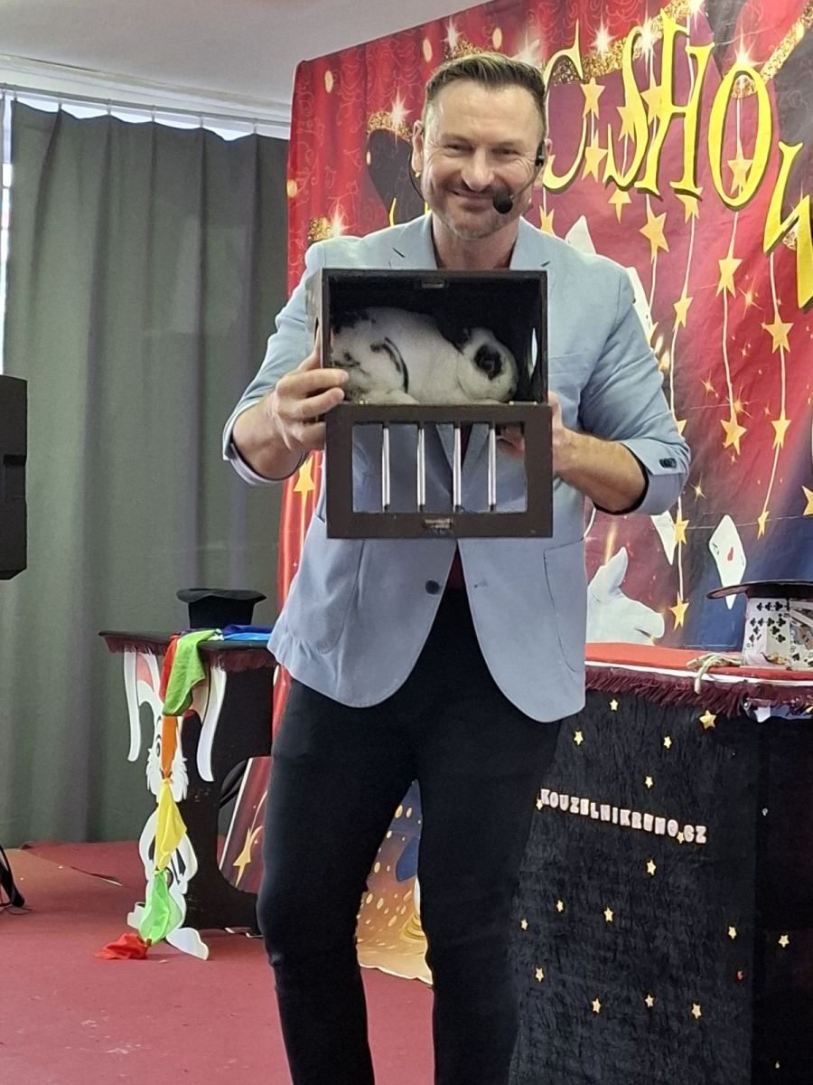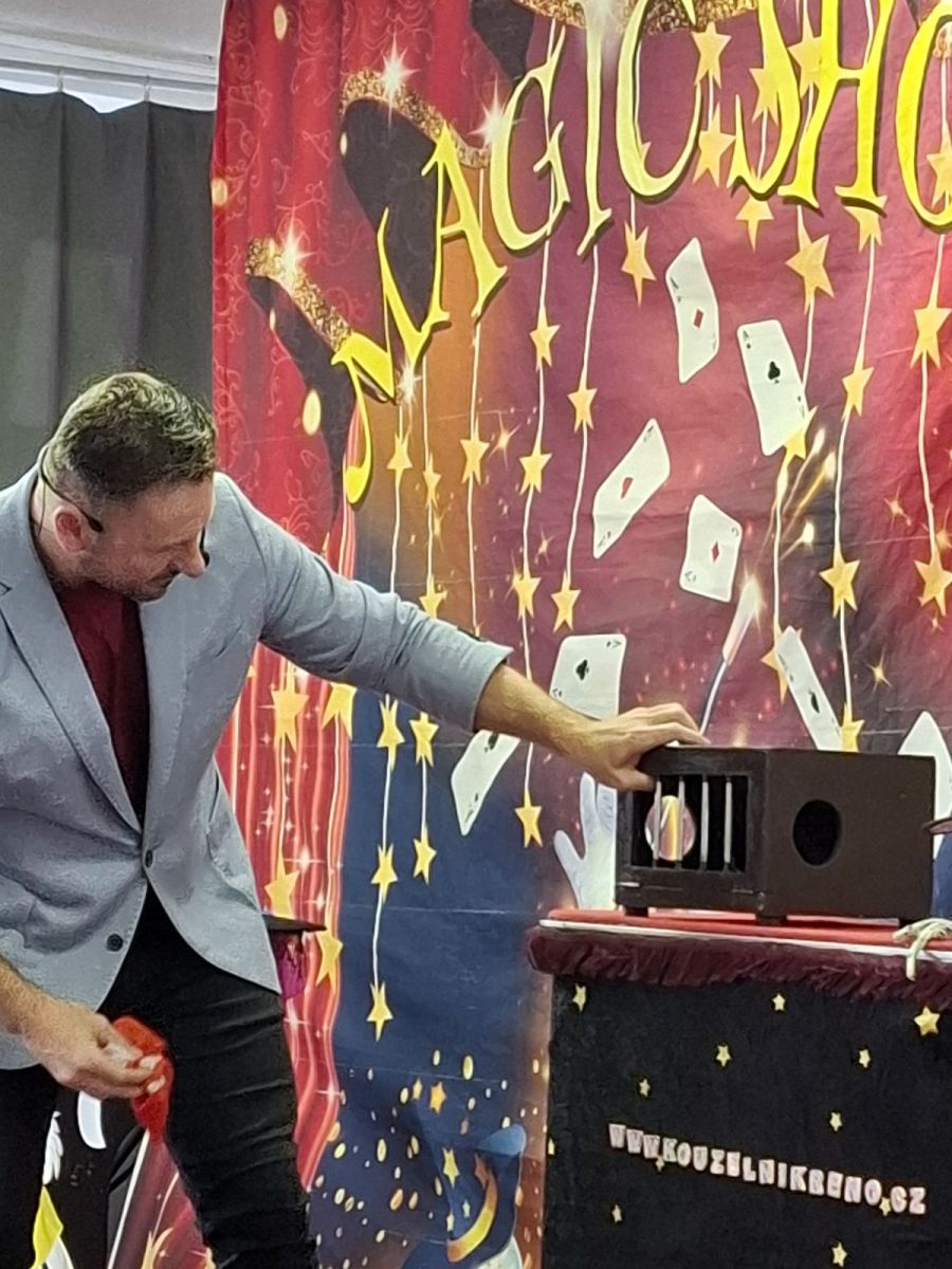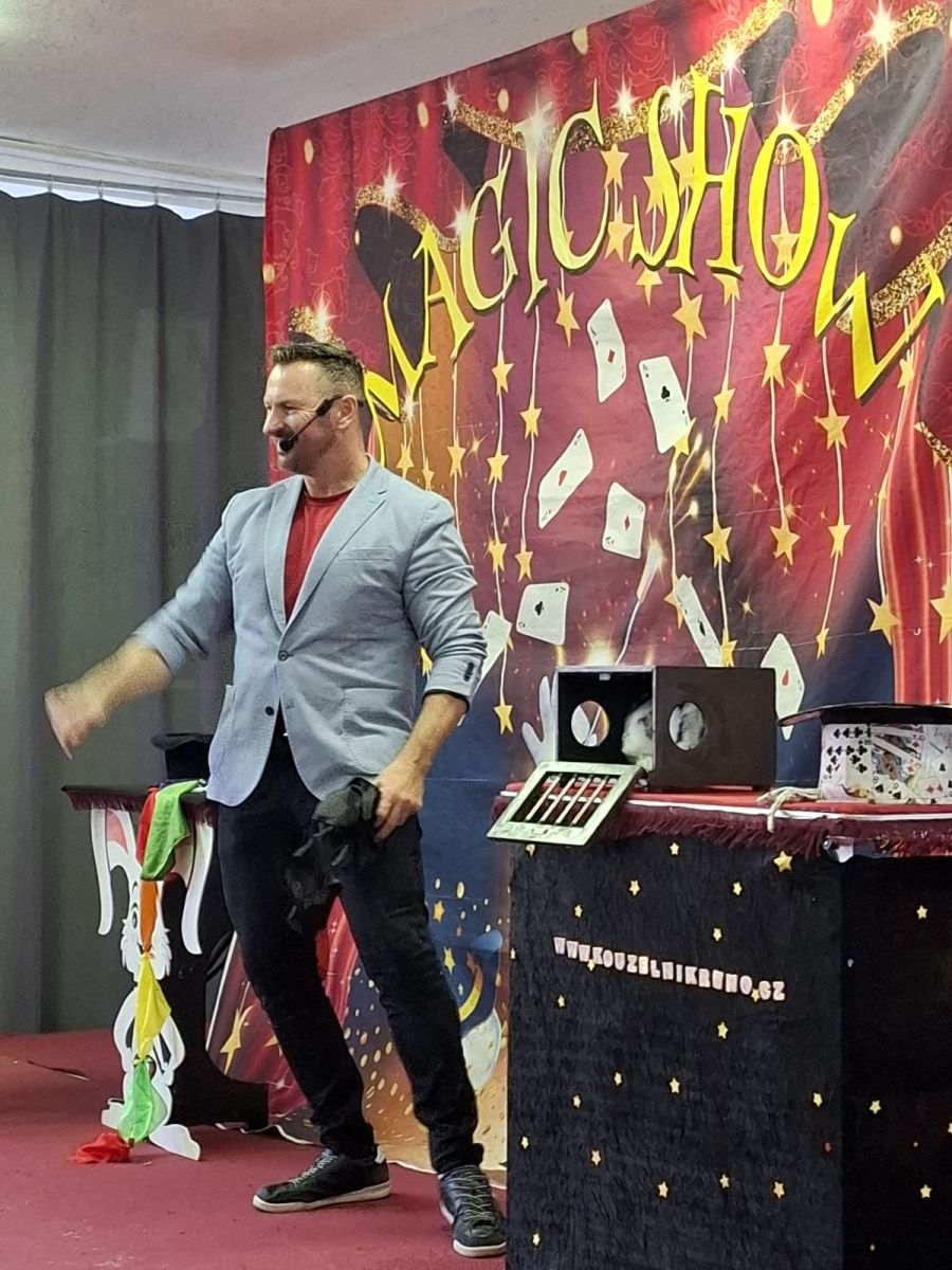 Páteční odpoledne se neslo ve znamení smíchu, úžasu a překvapení. Kouzelník Reno předvedl nejen klasické triky s kartami, provázky a kouzelnou hůlkou, ale také zapojil samotné děti do svého vystoupení. Malí pomocníci se s nadšením pustili do kouzlení a společně s Renem vykouzlili spoustu úsměvů.