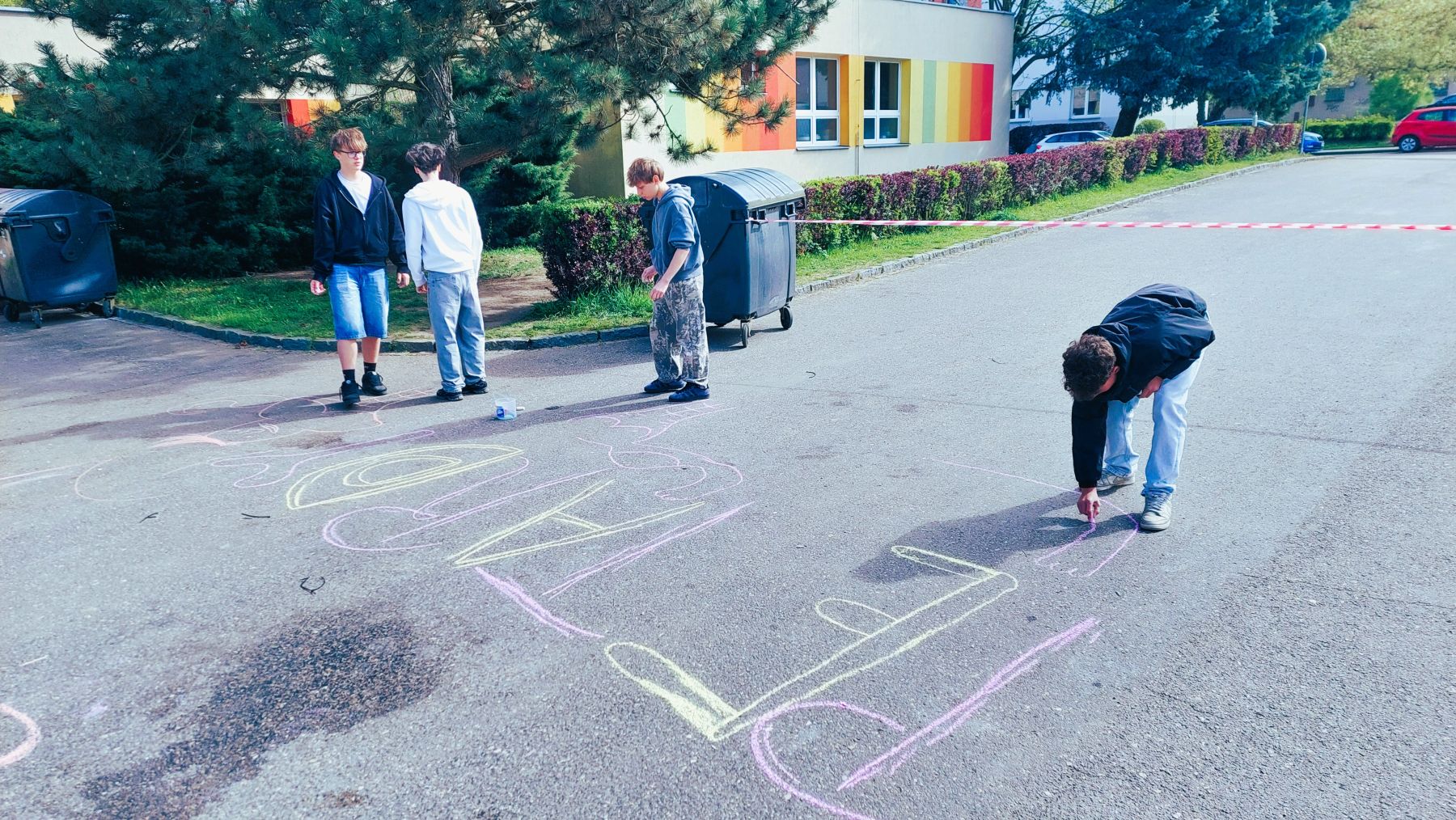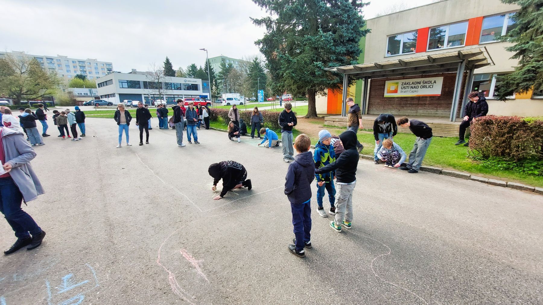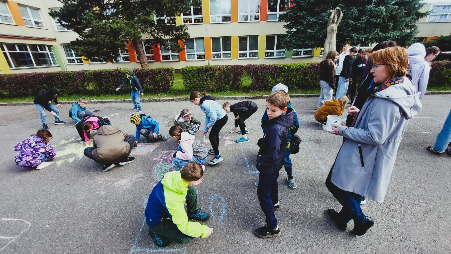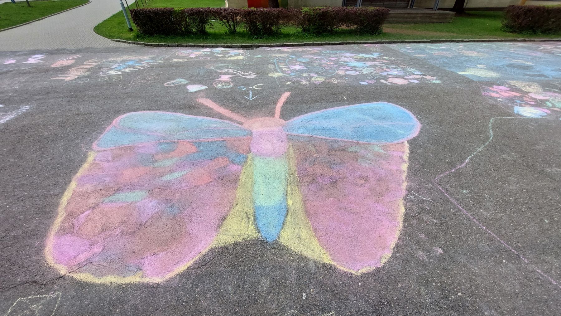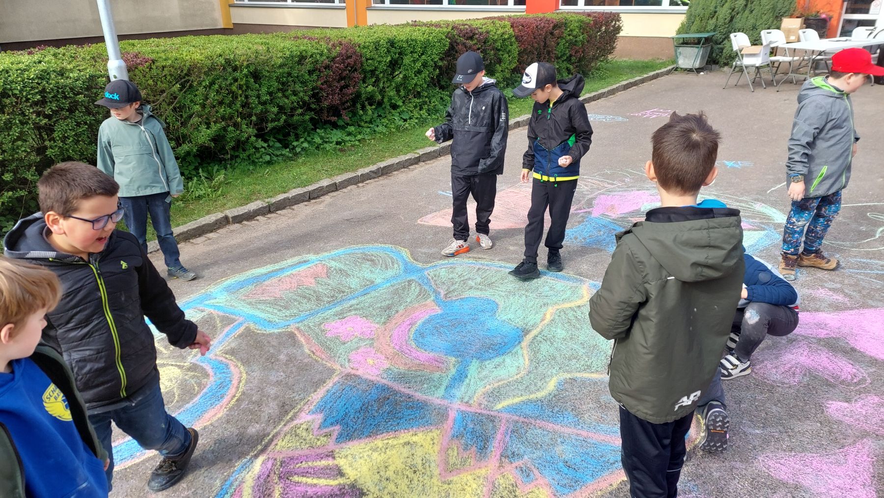 Pohoda, slunce, smích a spousta barev k tomu. Obrovské díky patří téměř třem desítkám tříd, které se zapojily do našeho Křídového dne. Cíl byl jasný – rozzářit prostor před školou. A to se povedlo víc než skvěle.