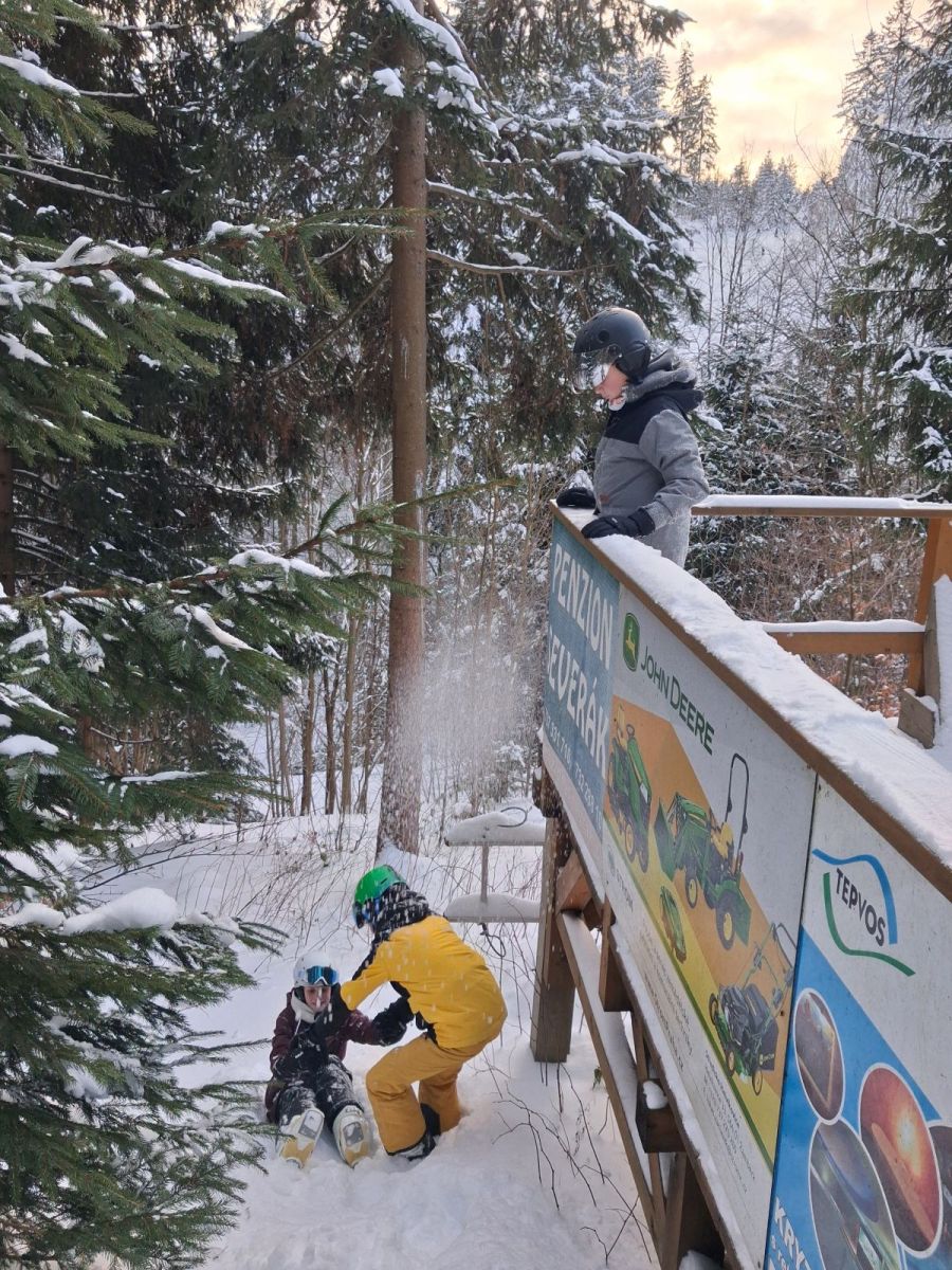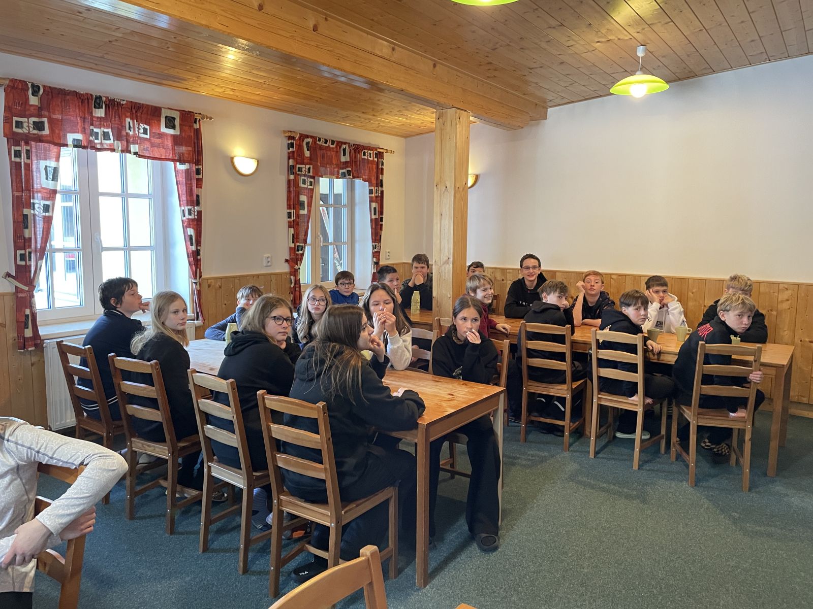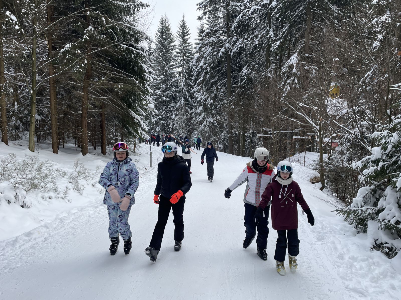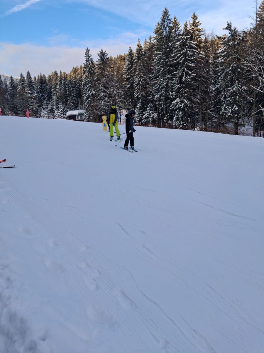 Ve druhém lednovém týdnu se třídy 7. A, B vydaly do Říček v Orlických horách, kde absolvovala lyžařský výcvik. Ubytovaní jsme byli v penzionu Polesí.