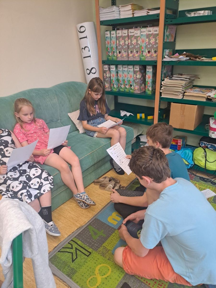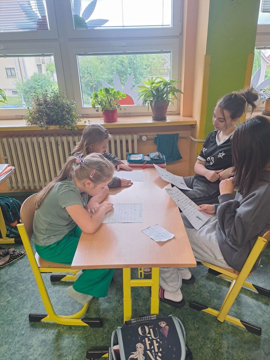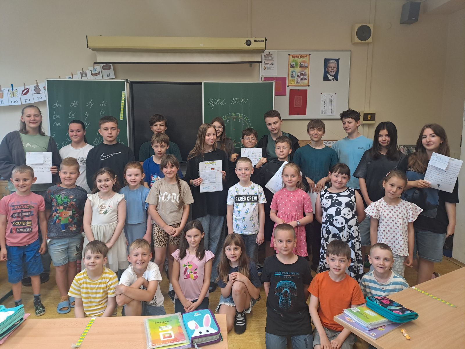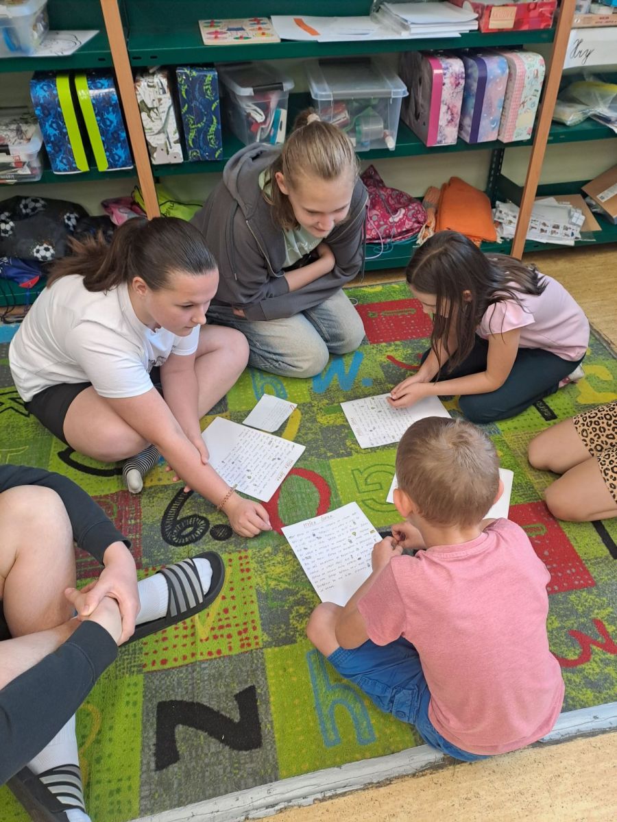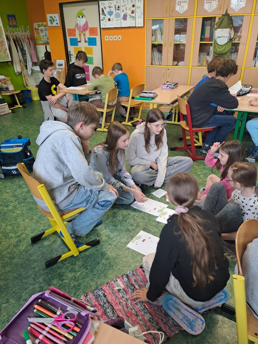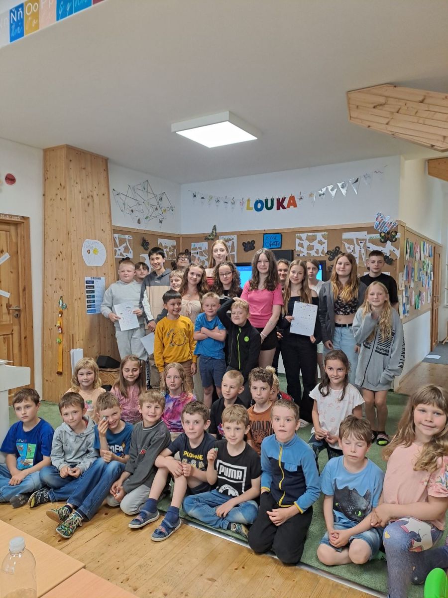 I v letošním roce si připravily třídy 7.A a 7.C pro prvňáky malované čtení – příběhy, jejichž součástí jsou drobné ilustrace. Prvňáčci si mohli přečíst příběh o nalezeném kocourkovi, jednorožci, sněhulákovi nebo traktůrku. Po společném čtení si děti o příbězích popovídaly. Nadšení bylo zřejmé na obou stranách.