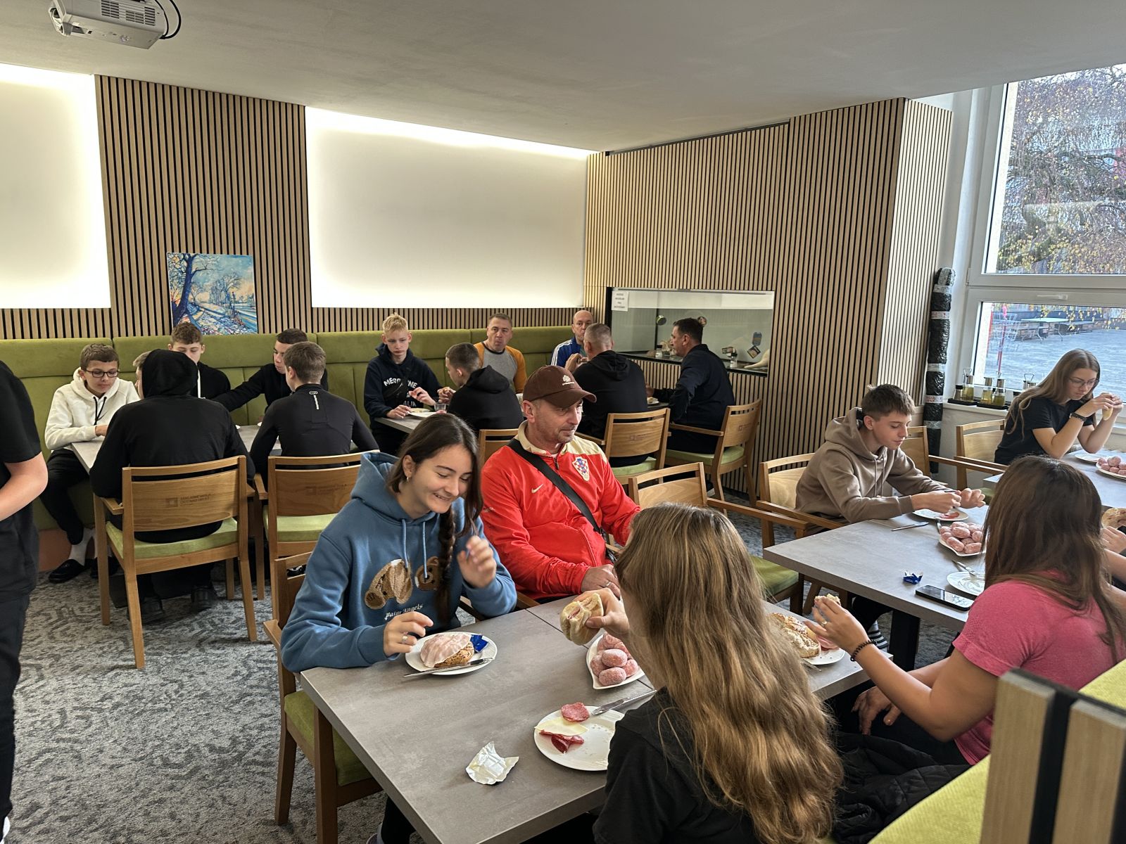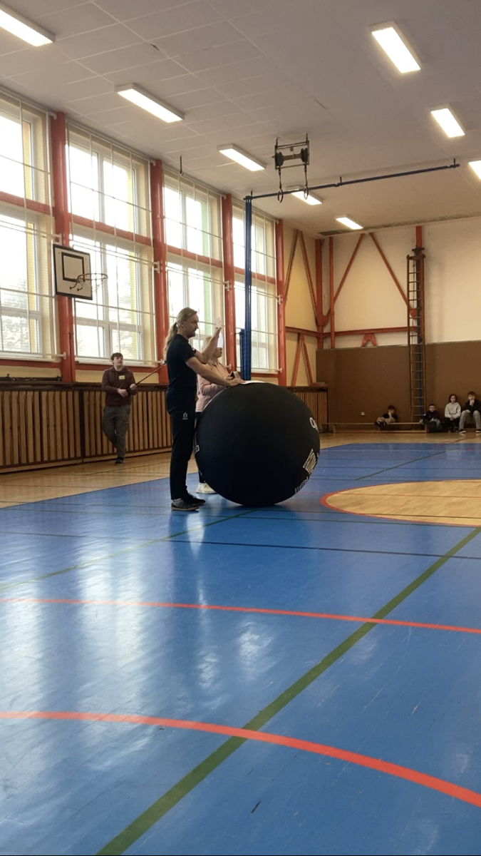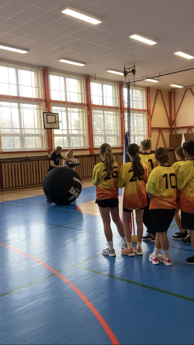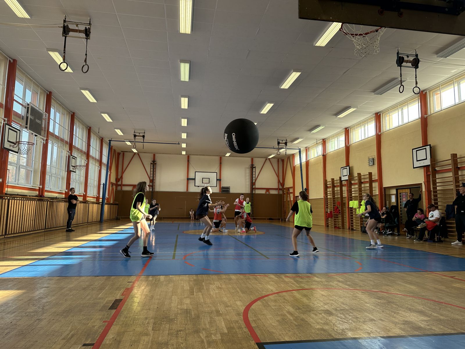 Ve dnech 7. – 9. 11. 2024 naši školu navštívily tři výpravy sportovců partnerských škol. Jednalo se o smíšené týmy žáků partnerských škol z Chorvatska (Osnovnaja škola Josipa Kozaraca), ze Slovenska (Mateřská a základní škola Maxmiliána Hela) a z Ukrajiny (Perečínské lyceum). Žáci si poměřili své síly při společném utkání v poměrně novém sportu s názvem Kin-ball. Jedná se teprve o 20 let starý sport, který vznikl v Kanadě a postupně se díky své oblibě rozšířil do celého světa. Celá hra spočívá v udržení velkého až 1,2 m v průměru širokého míče ve vzduchu bez dotyku země, stropu a stěn při společné hře tří týmů. Vždy jeden tým hraje na jeden ze dvou zbylých týmů.