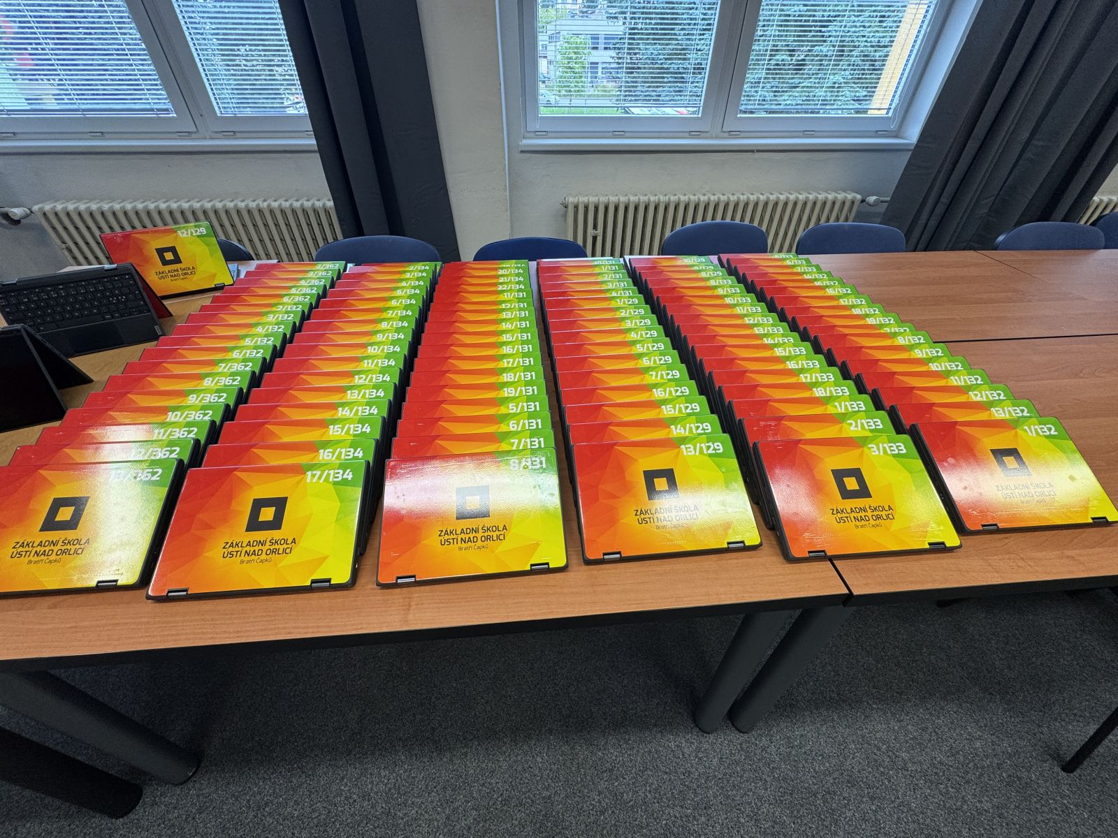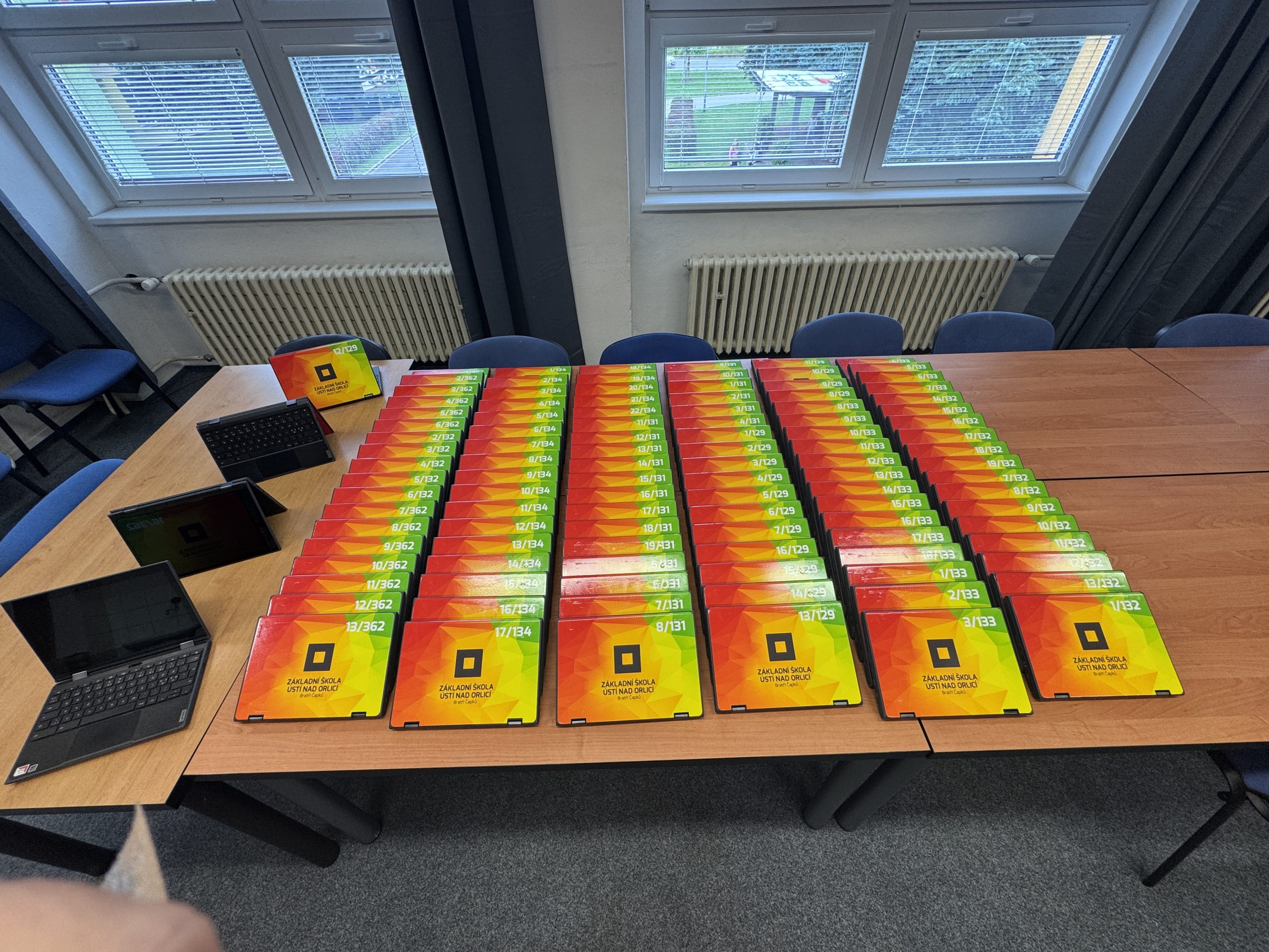 Naše flotila se rozrostla na 200 zařízení, a do cíle, kdy každý žák 2. stupně bude mít svůj vlastní, zbývá ještě posledních 100 ks. K tomu jsme přidali 14 nových Wi-Fi bodů a posílili síť.