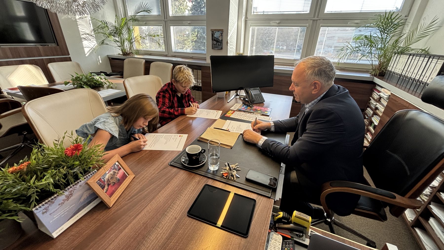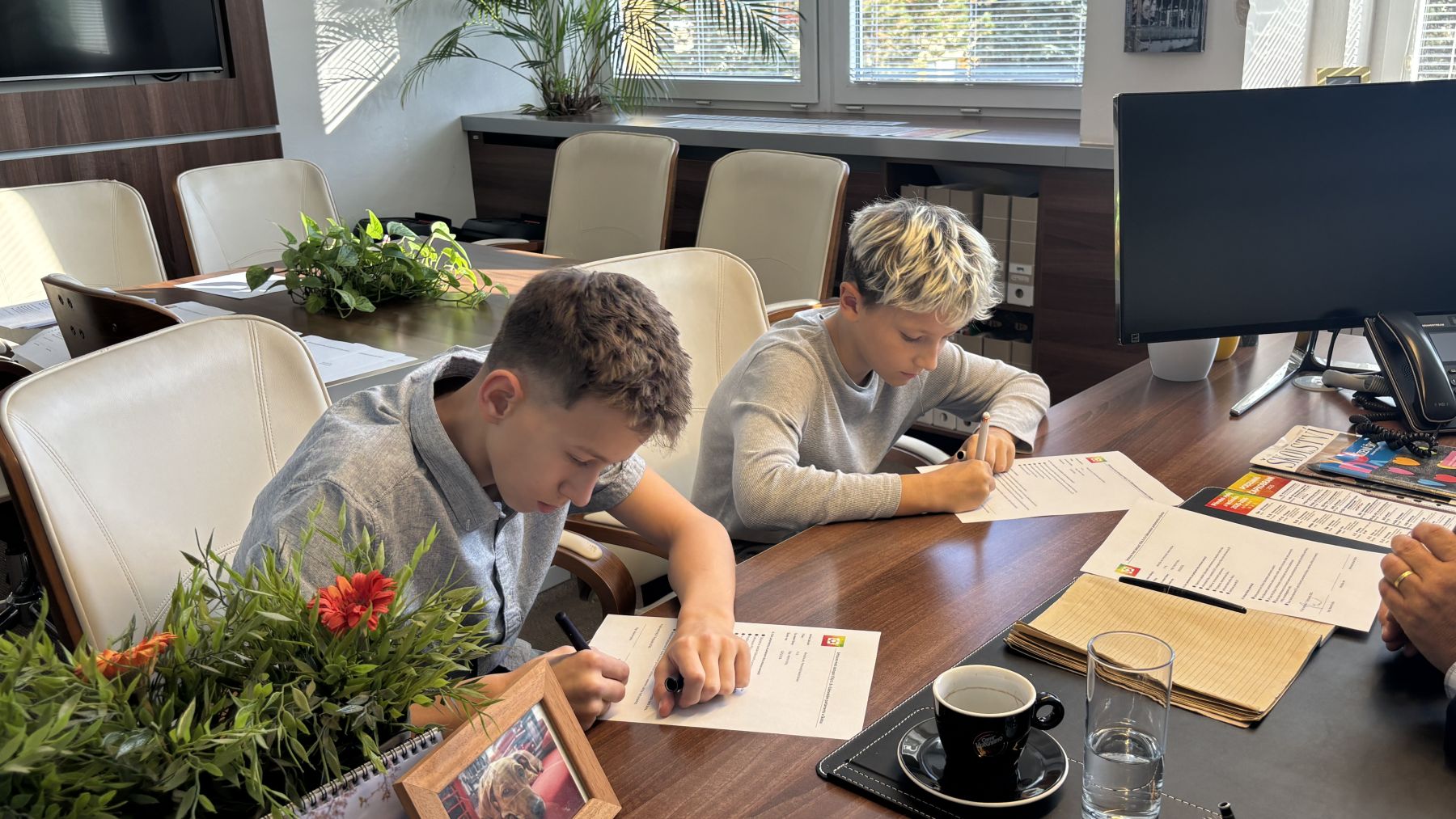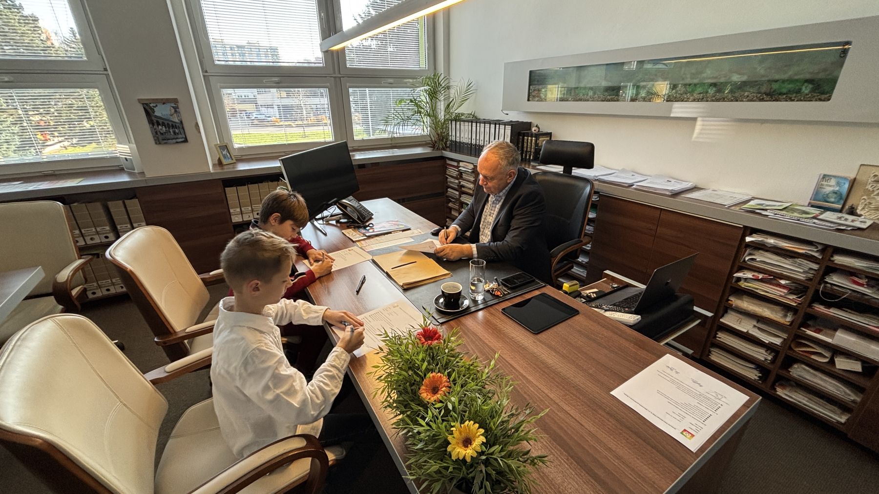 Pan ředitel s dětmi prošel jednotlivé body smlouvy a rozhodně nešlo o pouhou formální schůzku. Každý měl prostor vyjádřit svůj názor, sdílet postřehy či dotazy. Což dodalo schůzce atmosféru vzájemného respektu a otevřeného dialogu. Setkání probíhala v příjemné atmosféře, která na závěr vyvrcholila podpisem smluv.