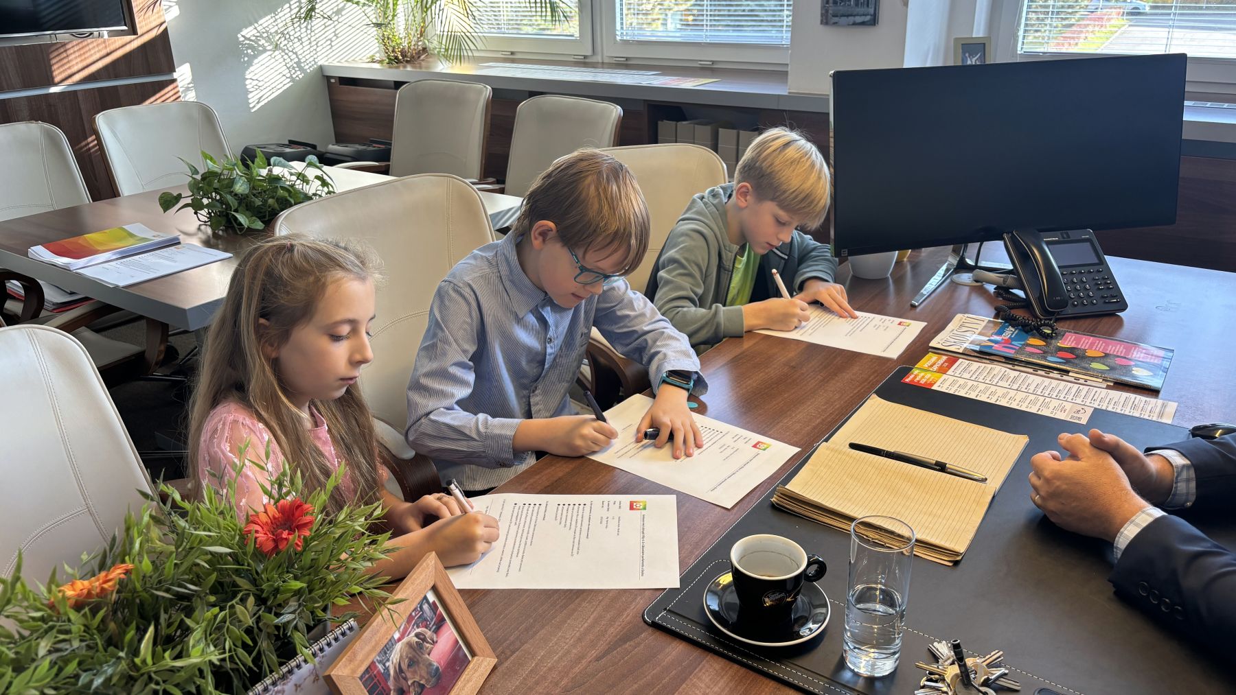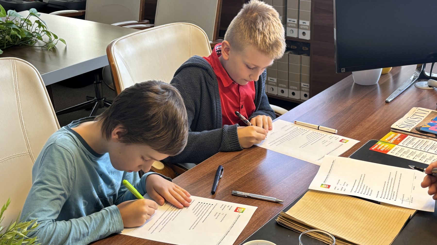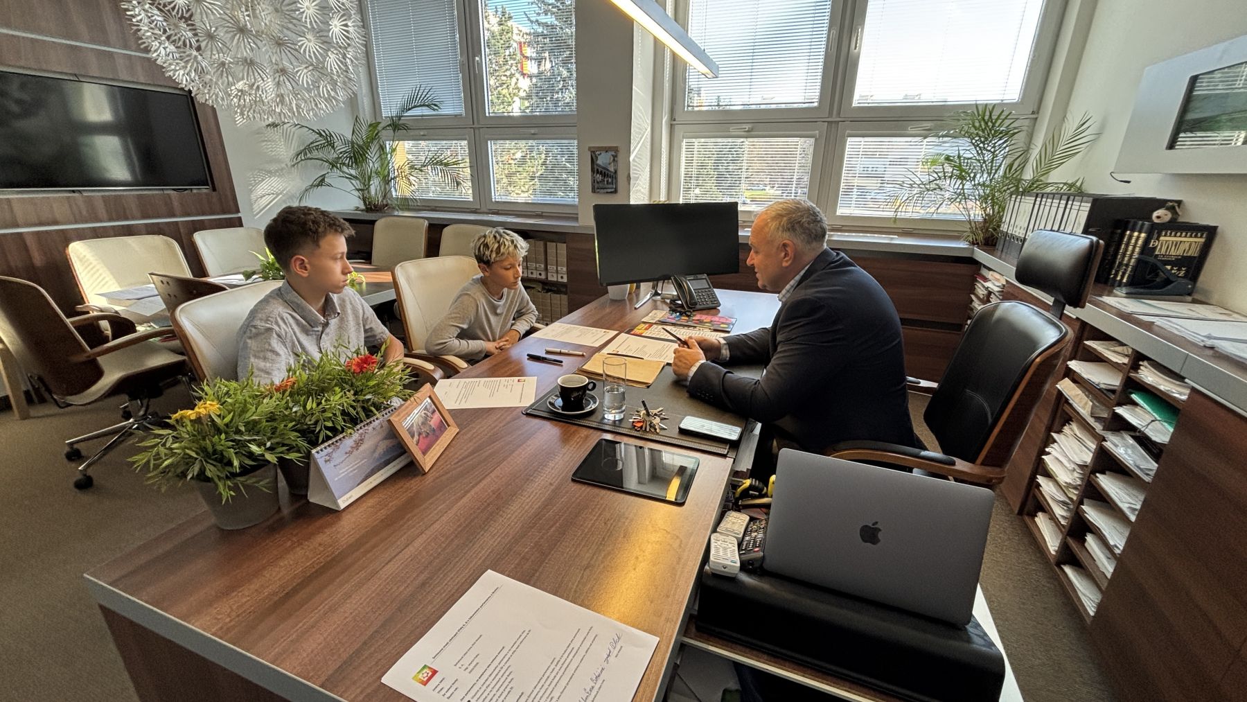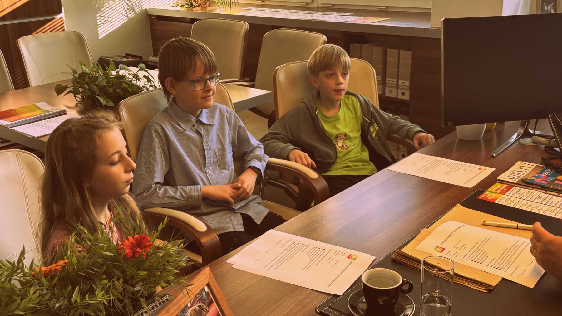 Pan ředitel s dětmi prošel jednotlivé body smlouvy a rozhodně nešlo o pouhou formální schůzku. Každý měl prostor vyjádřit svůj názor, sdílet postřehy či dotazy. Což dodalo schůzce atmosféru vzájemného respektu a otevřeného dialogu. Setkání probíhala v příjemné atmosféře, která na závěr vyvrcholila podpisem smluv.