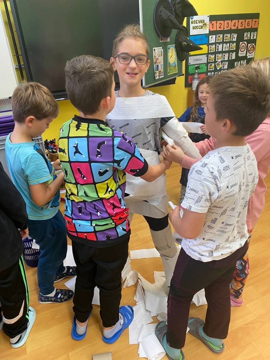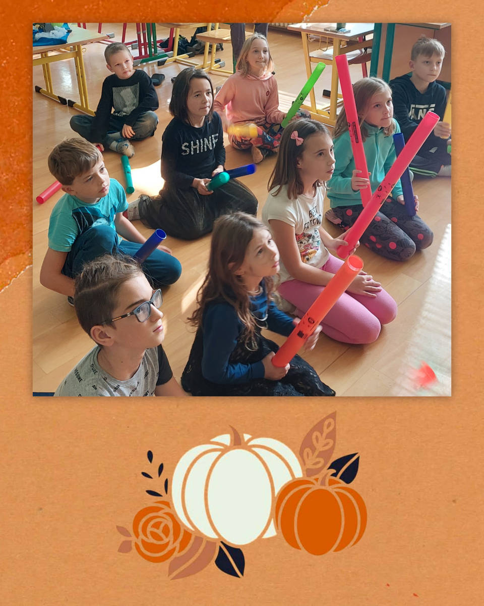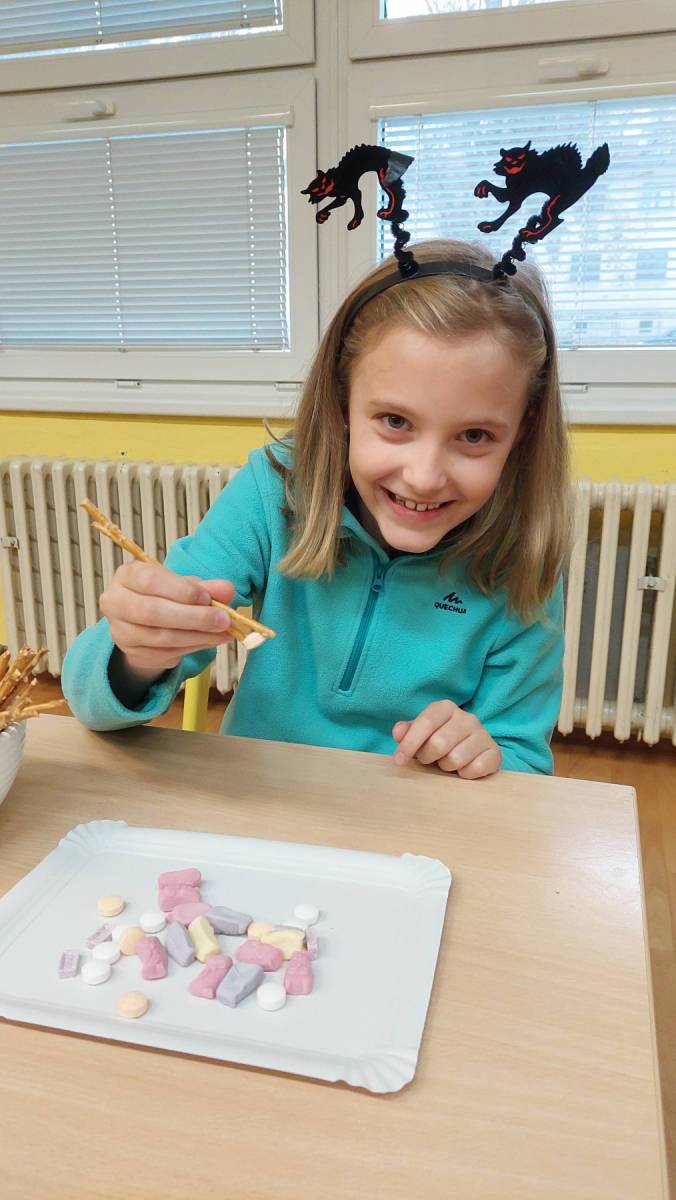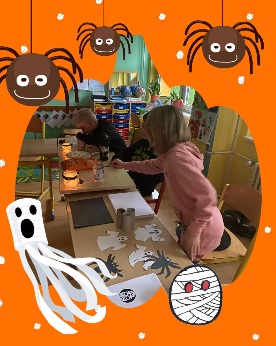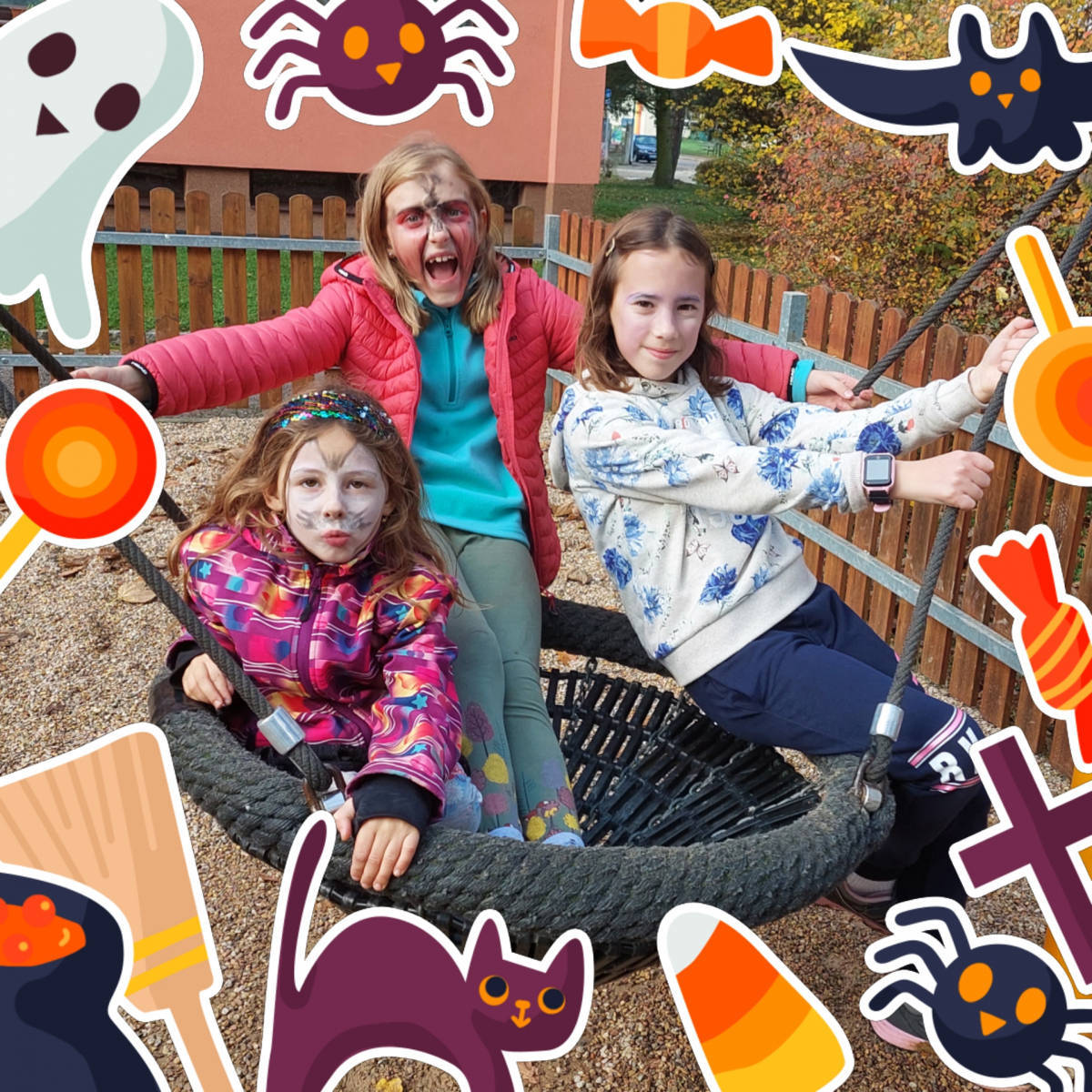 Halloweensky připravený program byl velmi nabitý. Děti si na školních tabletech vyzkoušely, pod vedením starších žáků, úkoly a doplňovačky, které je velmi bavily. Proběhly strašidelné hry na jemnou a hrubou motoriku, hráli jsme na boomwhackers, zpívali, vyráběli kouzelné lektvary a prováděli pokusy.