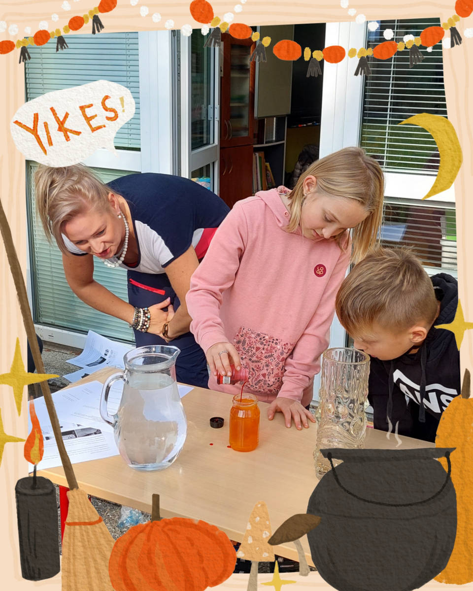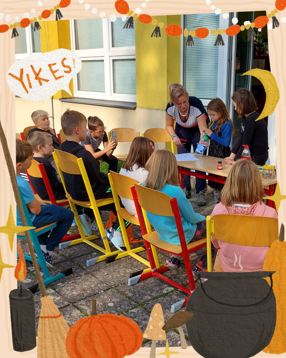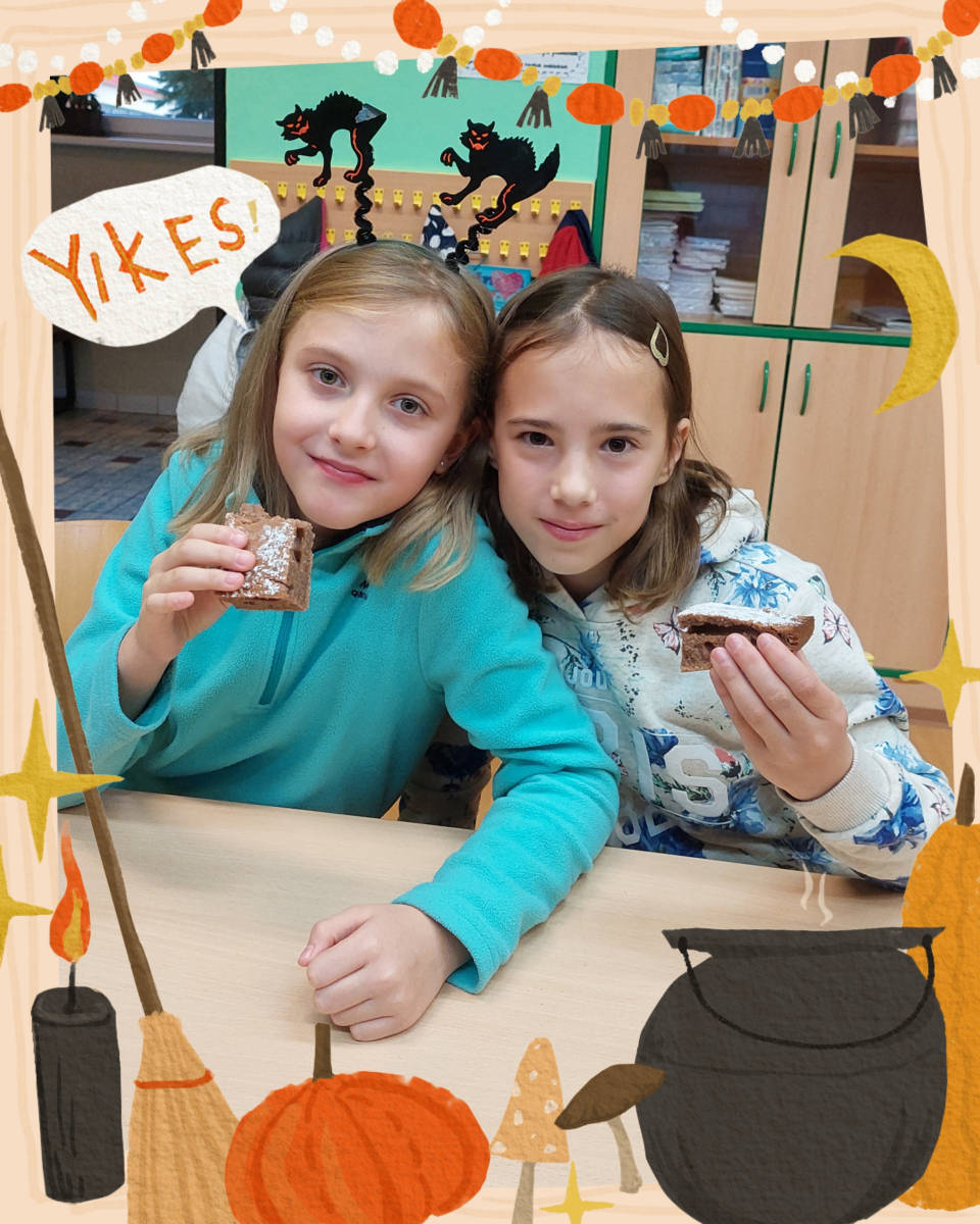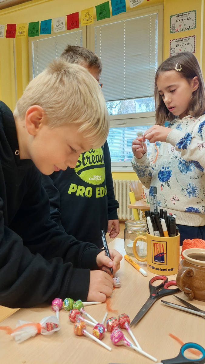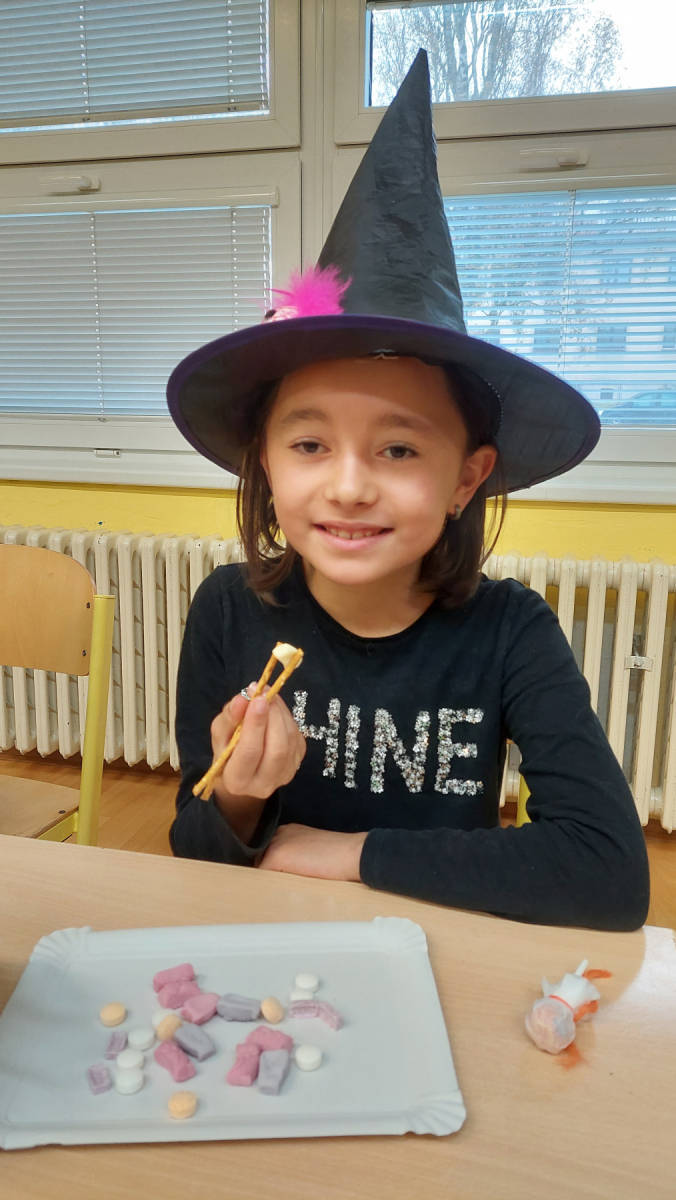 Halloweensky připravený program byl velmi nabitý. Děti si na školních tabletech vyzkoušely, pod vedením starších žáků, úkoly a doplňovačky, které je velmi bavily. Proběhly strašidelné hry na jemnou a hrubou motoriku, hráli jsme na boomwhackers, zpívali, vyráběli kouzelné lektvary a prováděli pokusy.