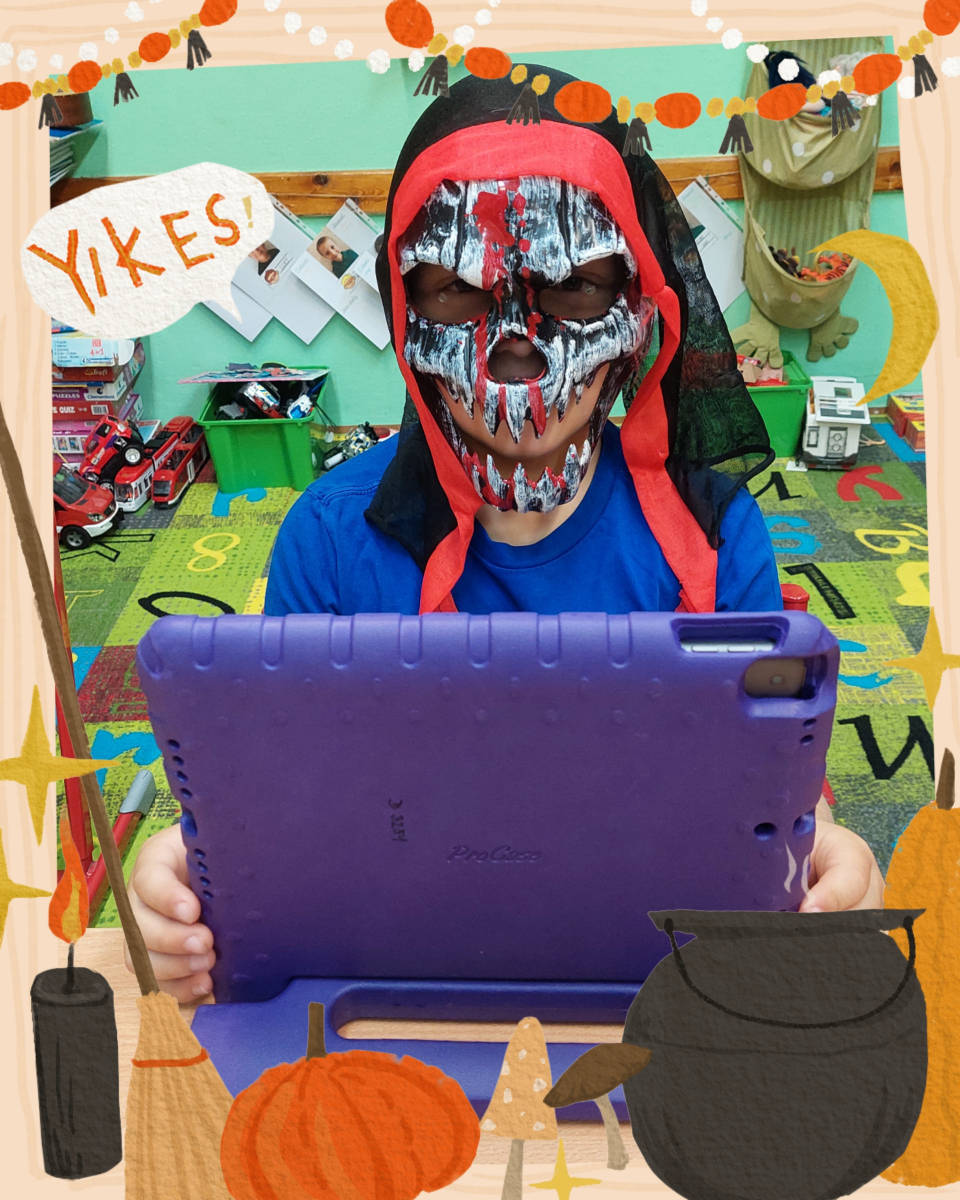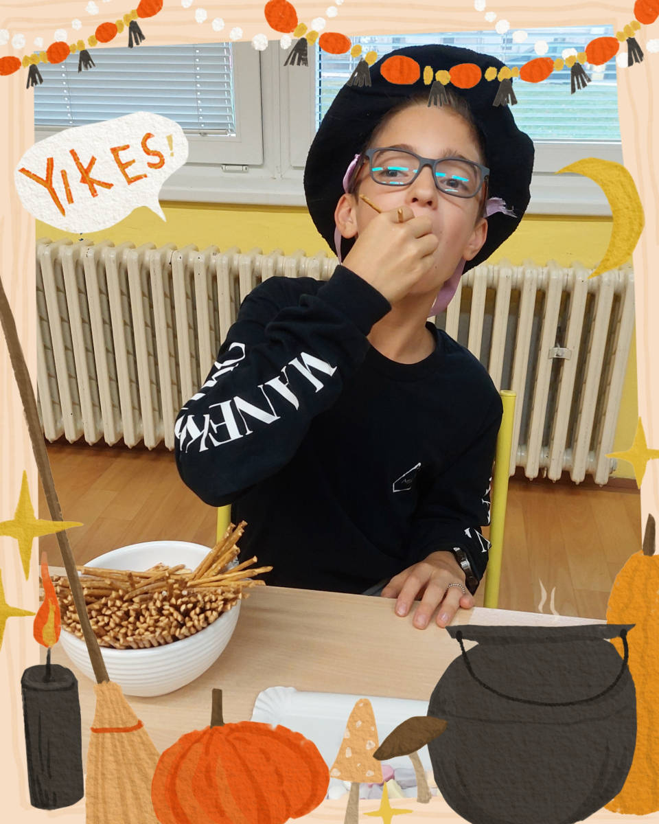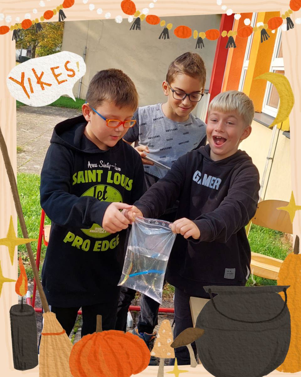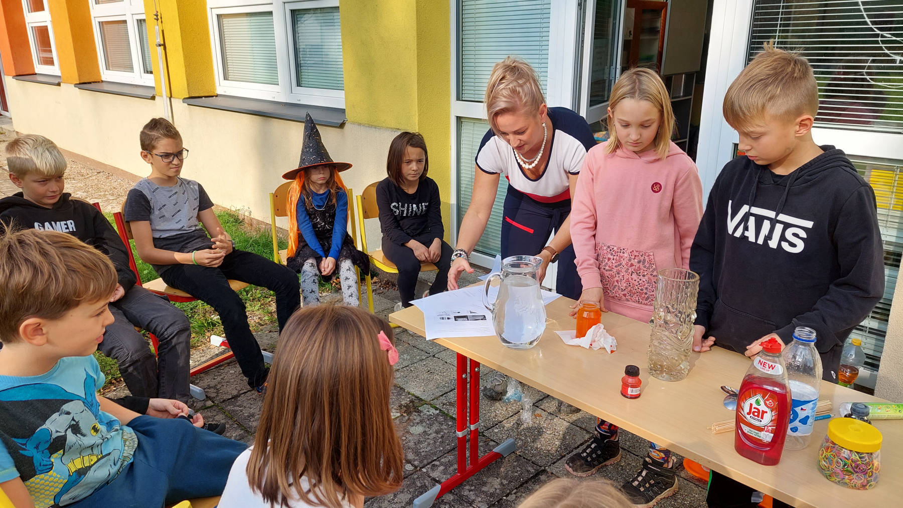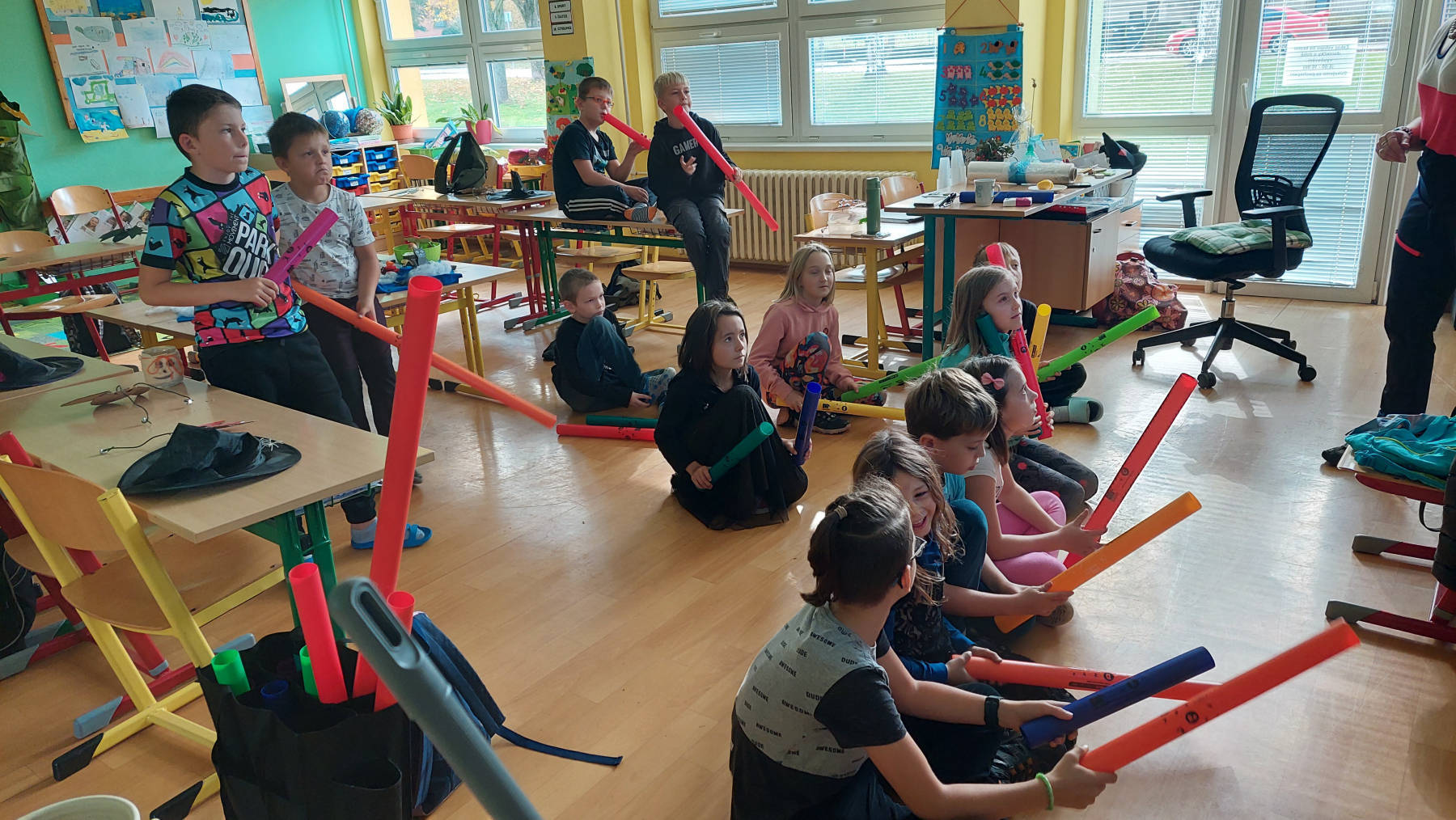 Halloweensky připravený program byl velmi nabitý. Děti si na školních tabletech vyzkoušely, pod vedením starších žáků, úkoly a doplňovačky, které je velmi bavily. Proběhly strašidelné hry na jemnou a hrubou motoriku, hráli jsme na boomwhackers, zpívali, vyráběli kouzelné lektvary a prováděli pokusy.