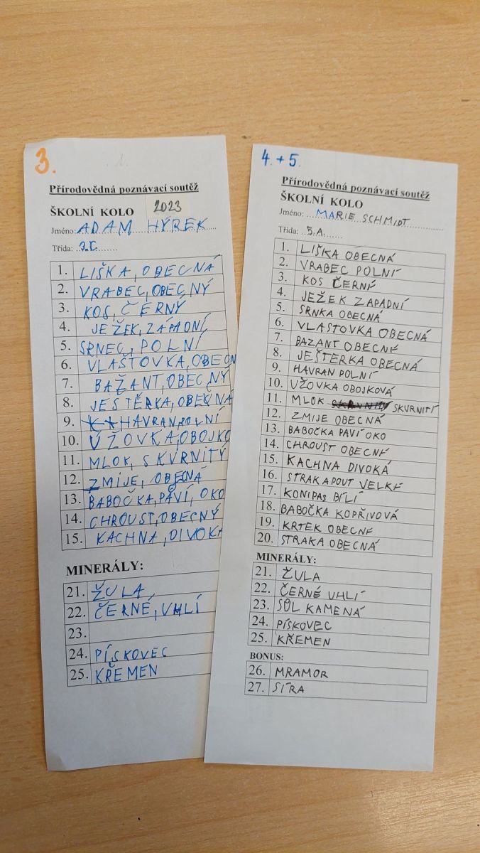 19. 4. 2023 proběhlo školní kolo v poznávání rostlin, živočichů a minerálů pro I. a II. stupeň. Nejlepší žáci postoupí do regionálního kola v České Třebové, které se bude konat 10. a 12. května.