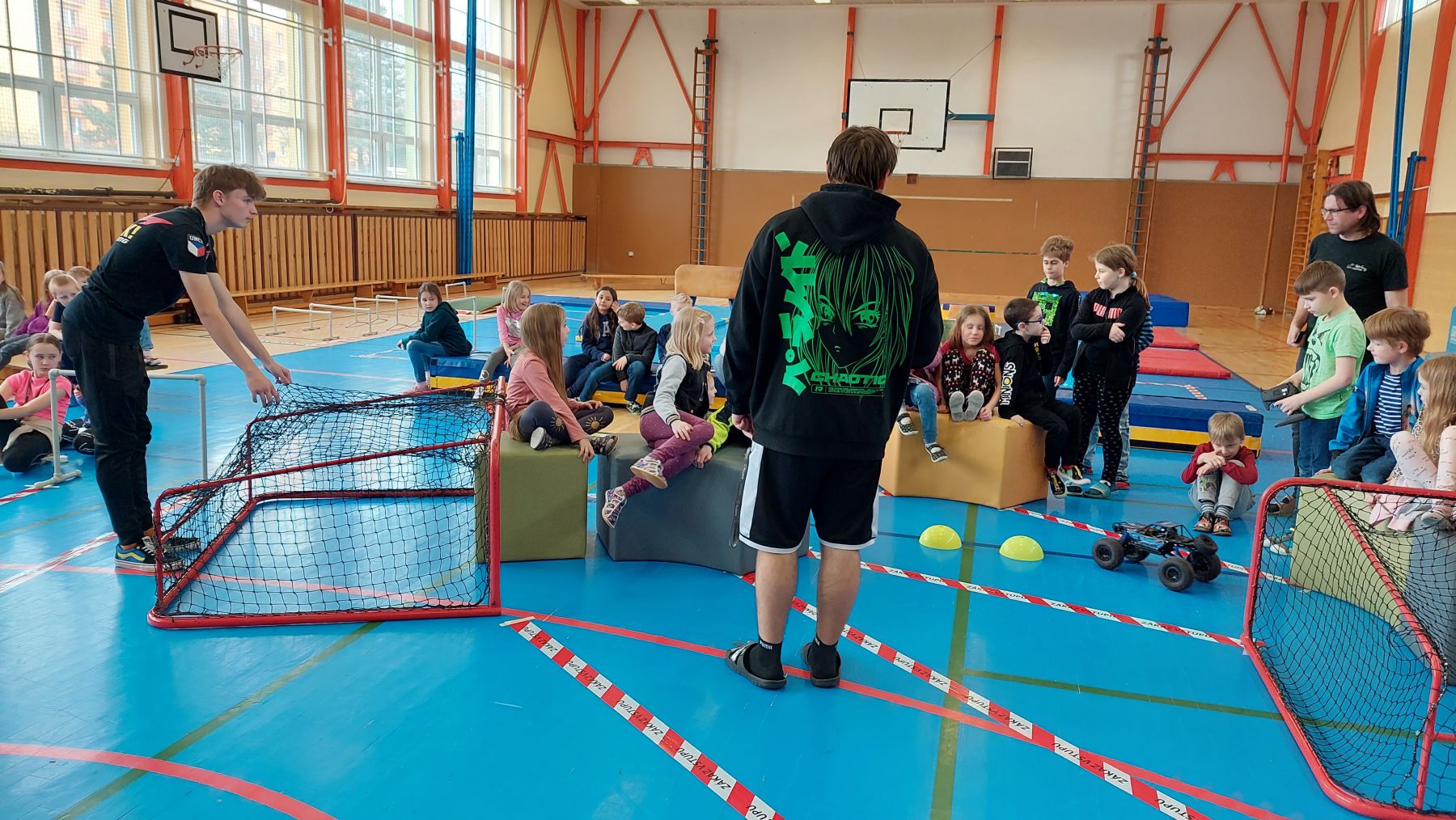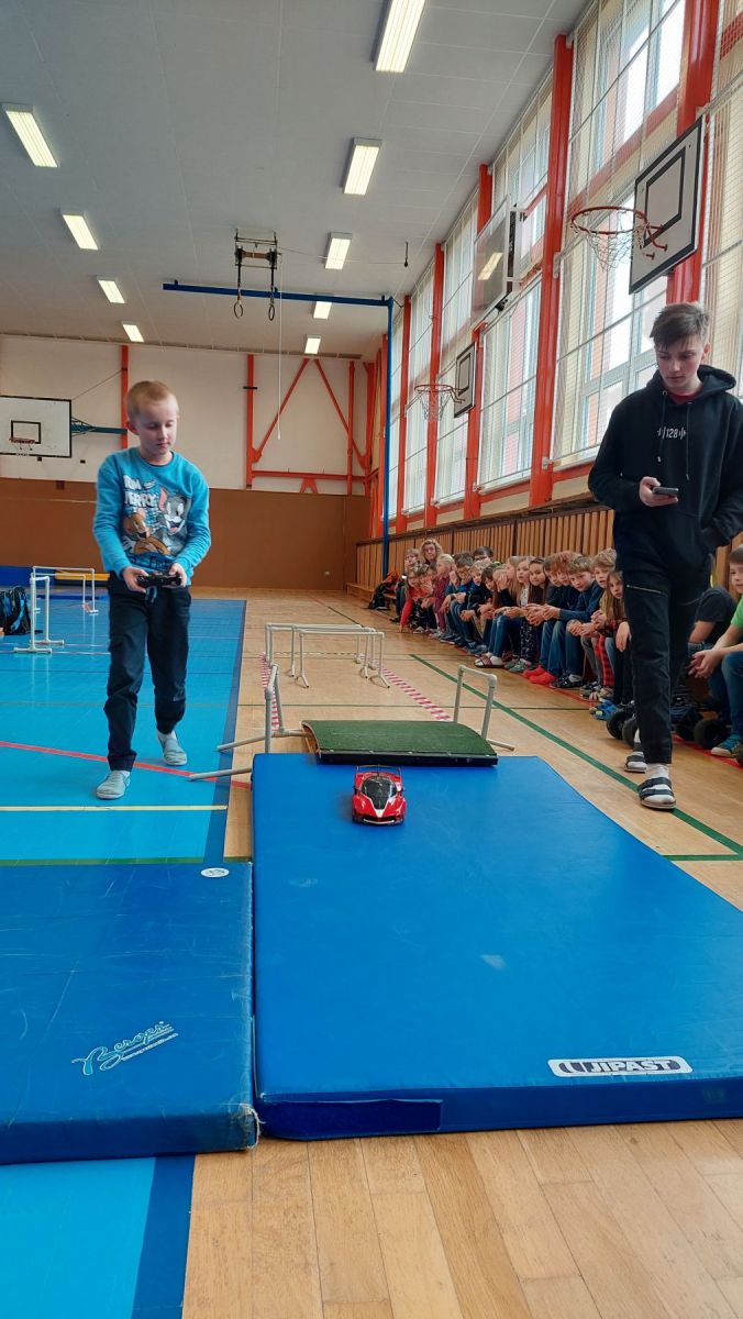 Před odchodem žáků na Velikonoční prázdniny se uskutečnil 2. ročník závodů rádiově řízených modelů (zpravidla autíček na dálkové ovládání). Nechyběl ani stroj s pásy sestaven z LEGO Technics ovládaný přes tablet.