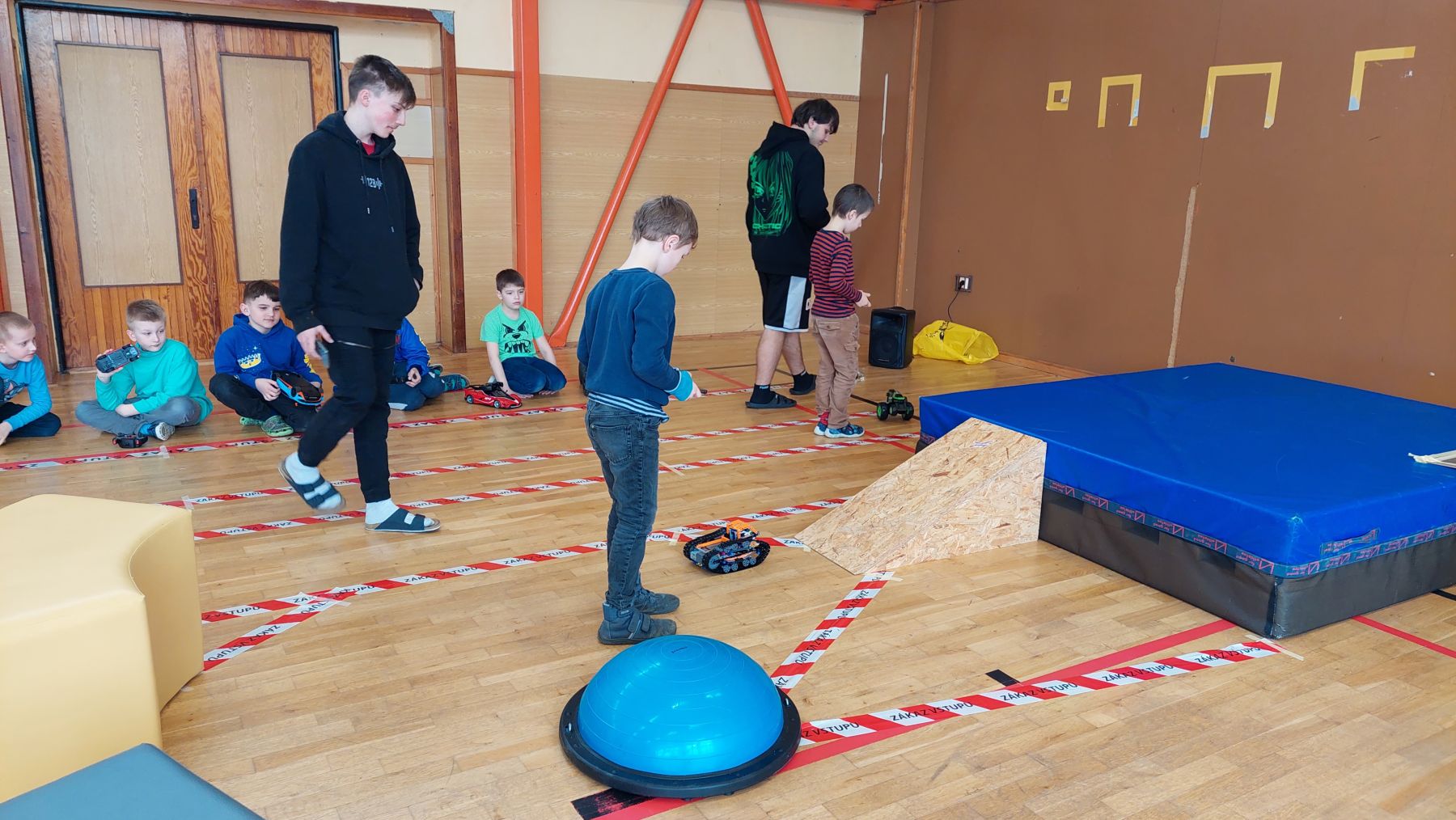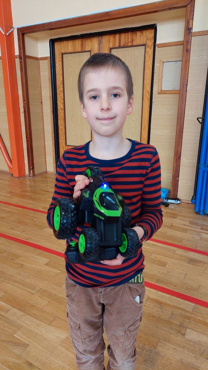 Všech 12 přihlášených závodníků z řad žáků 1. stupně si vyzkoušelo své dovednosti v ovládání svého RC stroje na dvou různých tratích. Součet časů z obou tratí spolu s trestnými body určil pořadí.