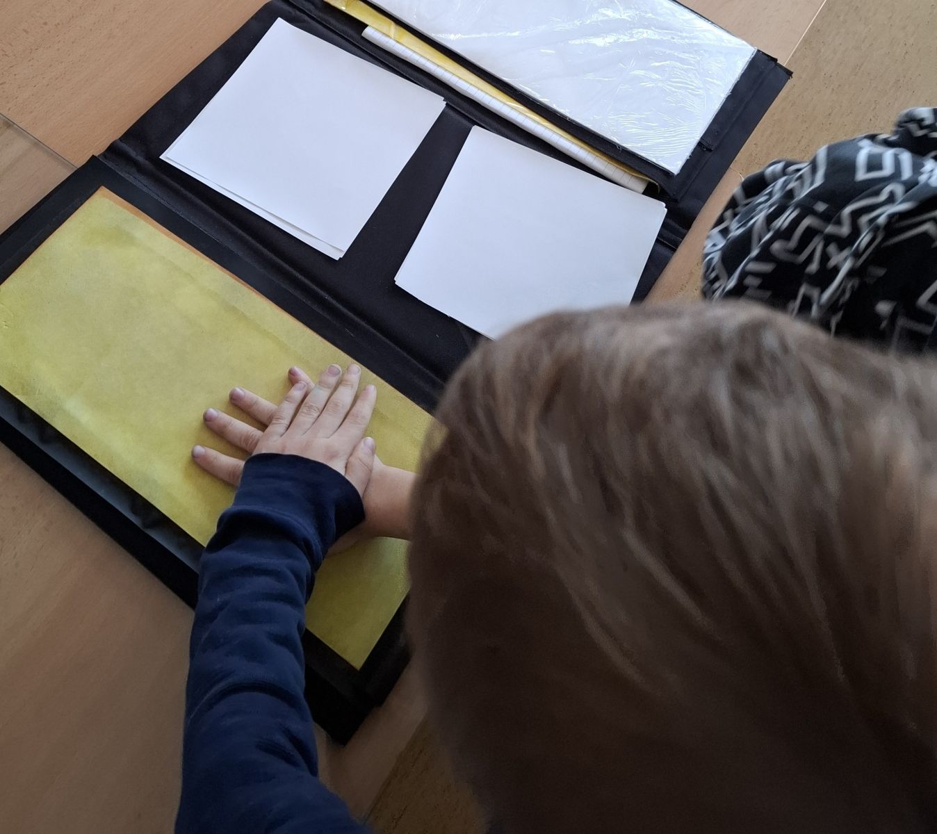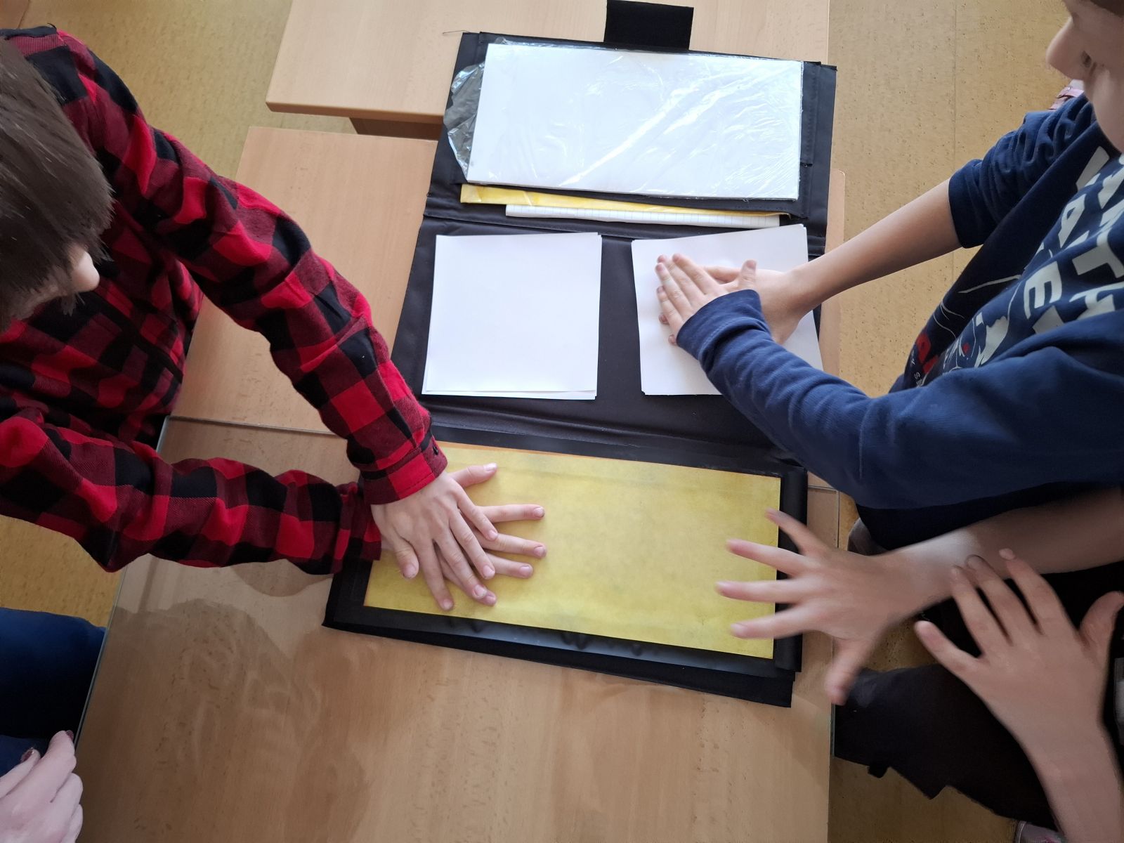 Na závěr jsme si vytvořili daktyloskopický otisk ruky. Došlo i na otázky žáků, které byly trpělivě vysvětleny.