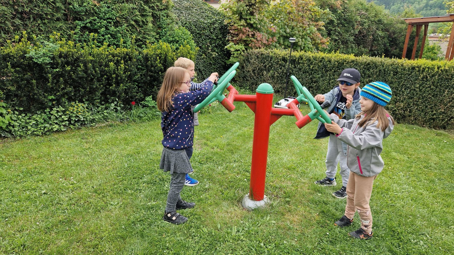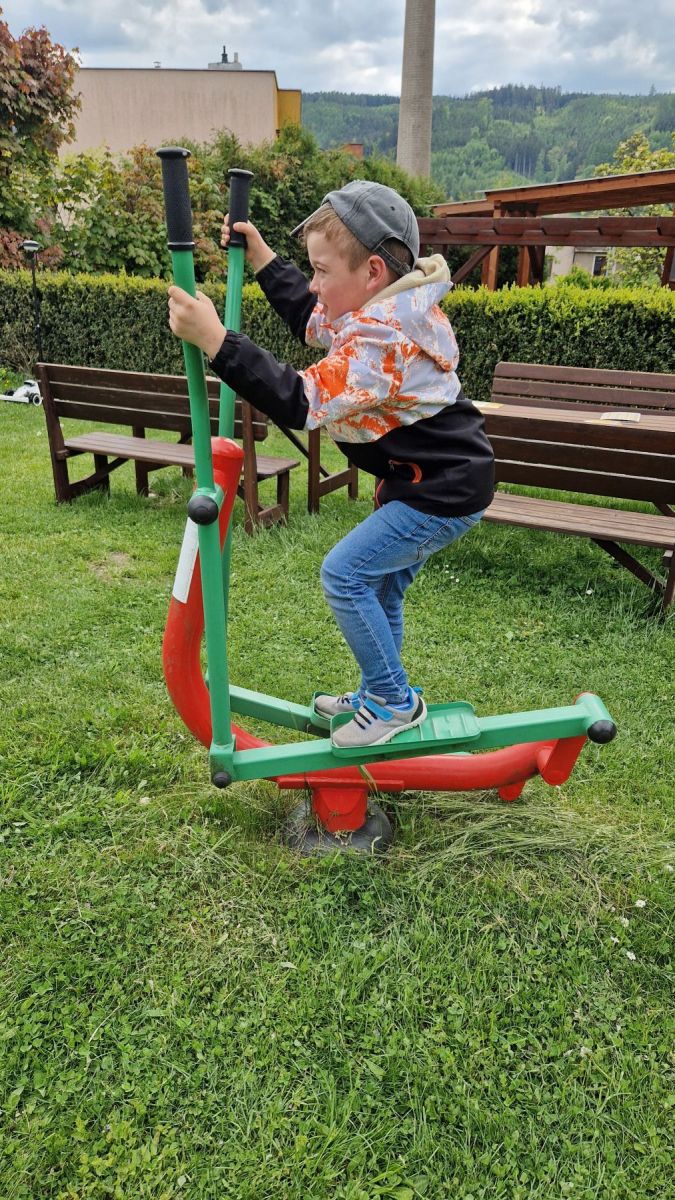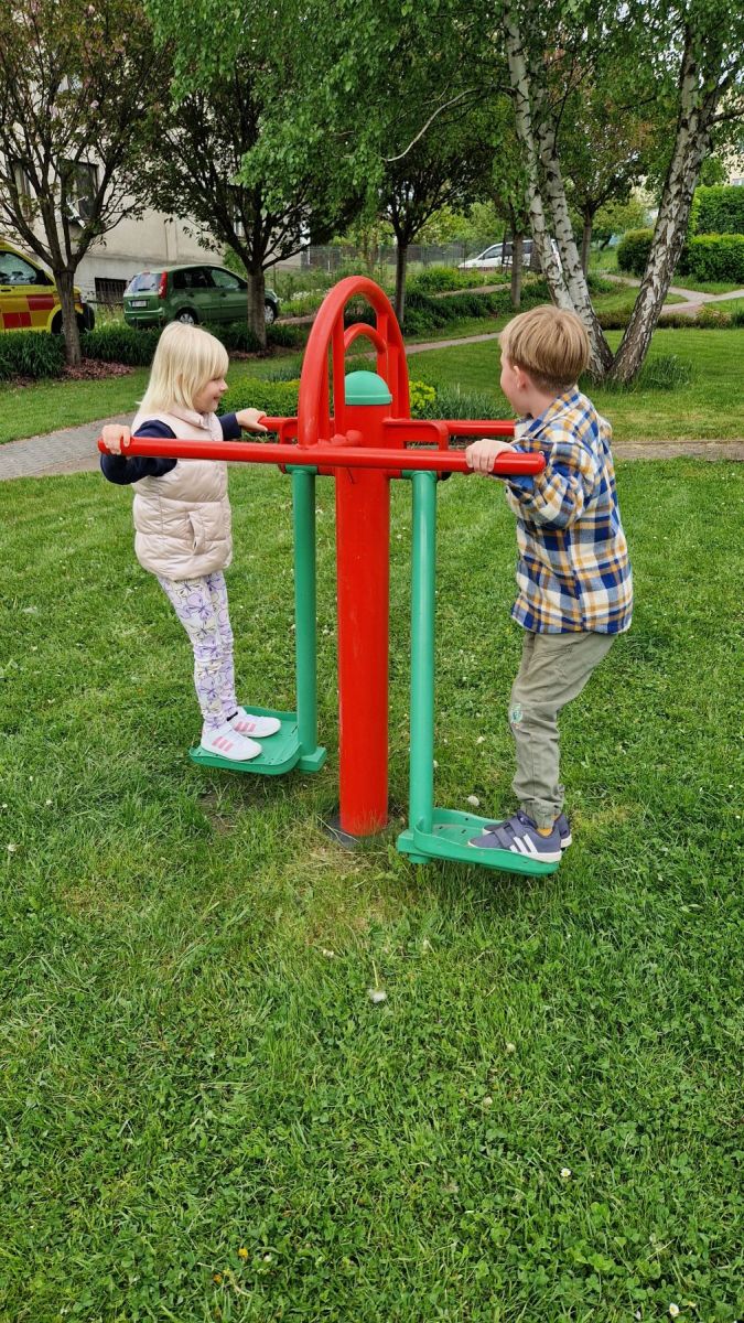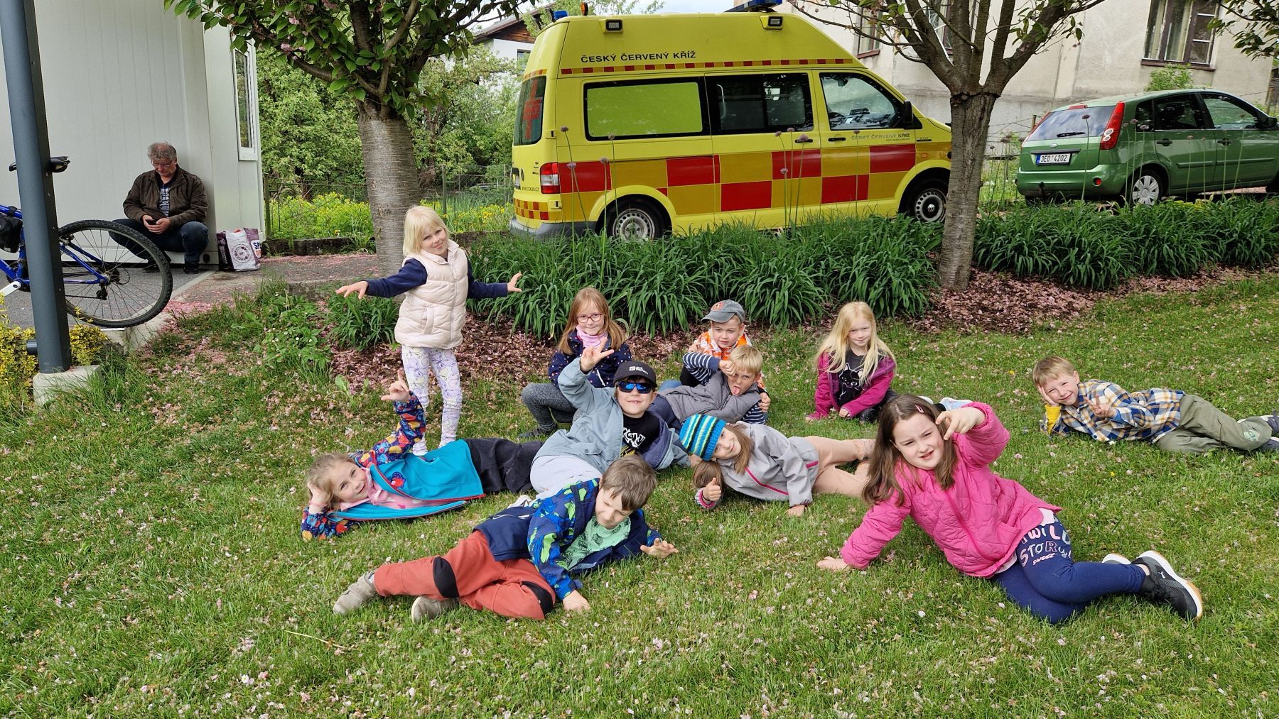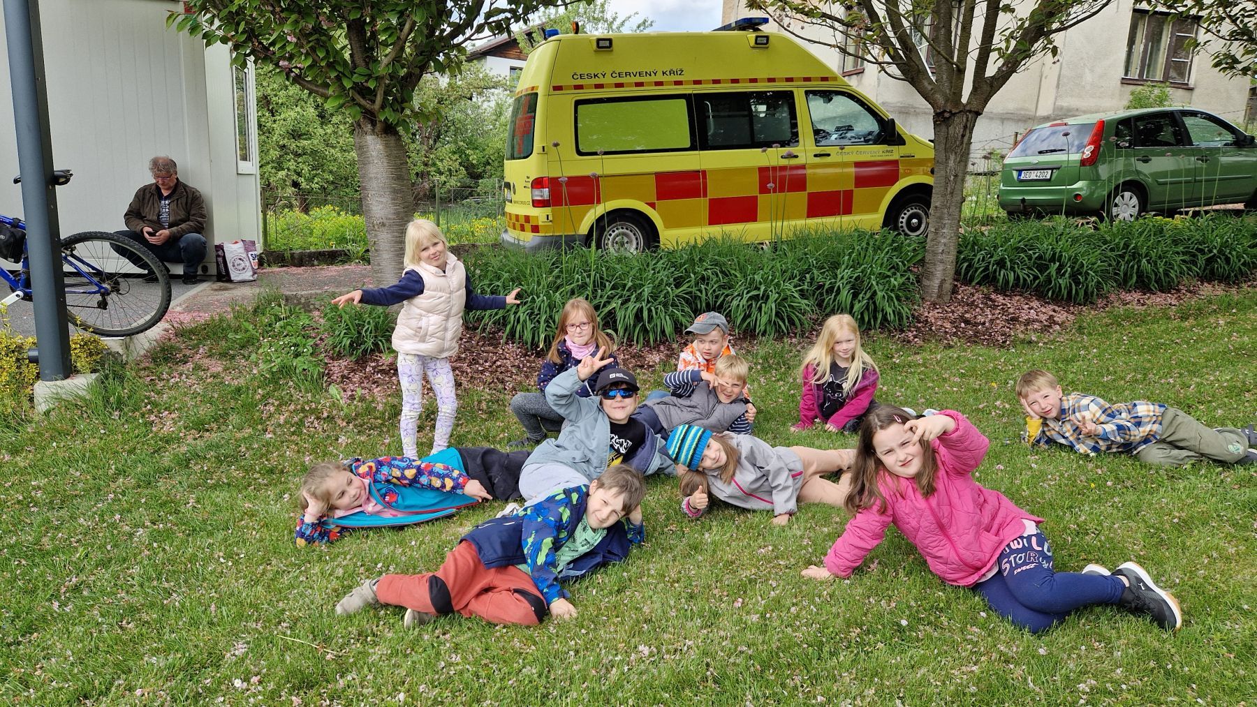 Děti se seznámily s první pomocí, mohly si prohlédnout sanitku i “Taxík Maxík”, a potom si zařádily na zahradě ČČK.