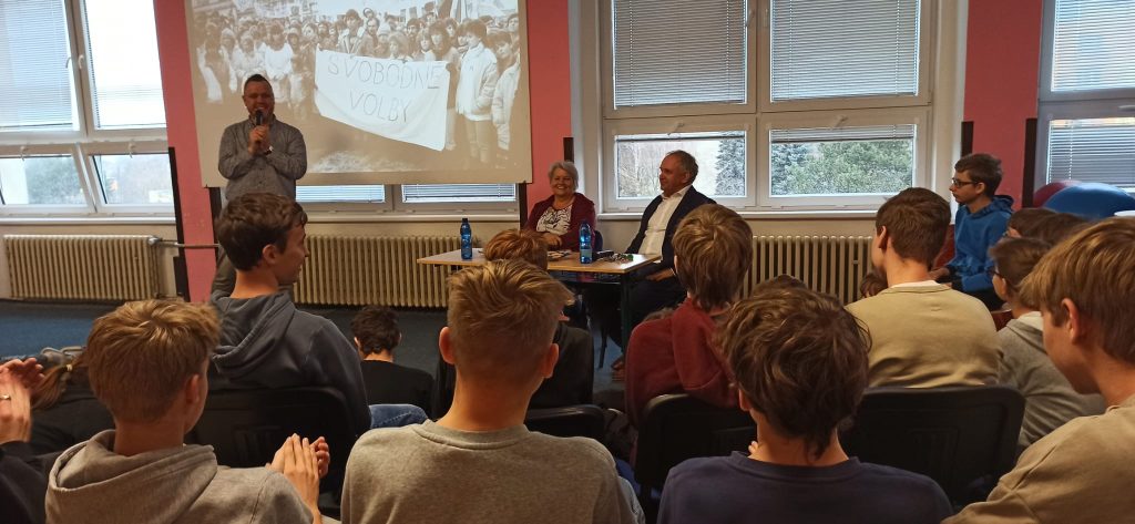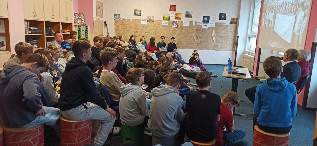 V rámci projektu „Jeden svět na školách“ si děti z devátých tříd v pondělí 20. listopadu 2023 připomněly listopadové události roku 1989. Prostřednictvím projekce filmu „Chceme dýchat“ se děti seznámily s každodenní realitou, která zde panovala v letech tzv. normalizace. Pozvaní hosté Martin Falta a Renata Švábová pak naše deváťáky seznámili s vlastními vzpomínkami na dějinné události výše uvedeného přelomového roku. Výuka novodobých dějin je důležitou součástí všeobecného vzdělávání současné mladé generace.