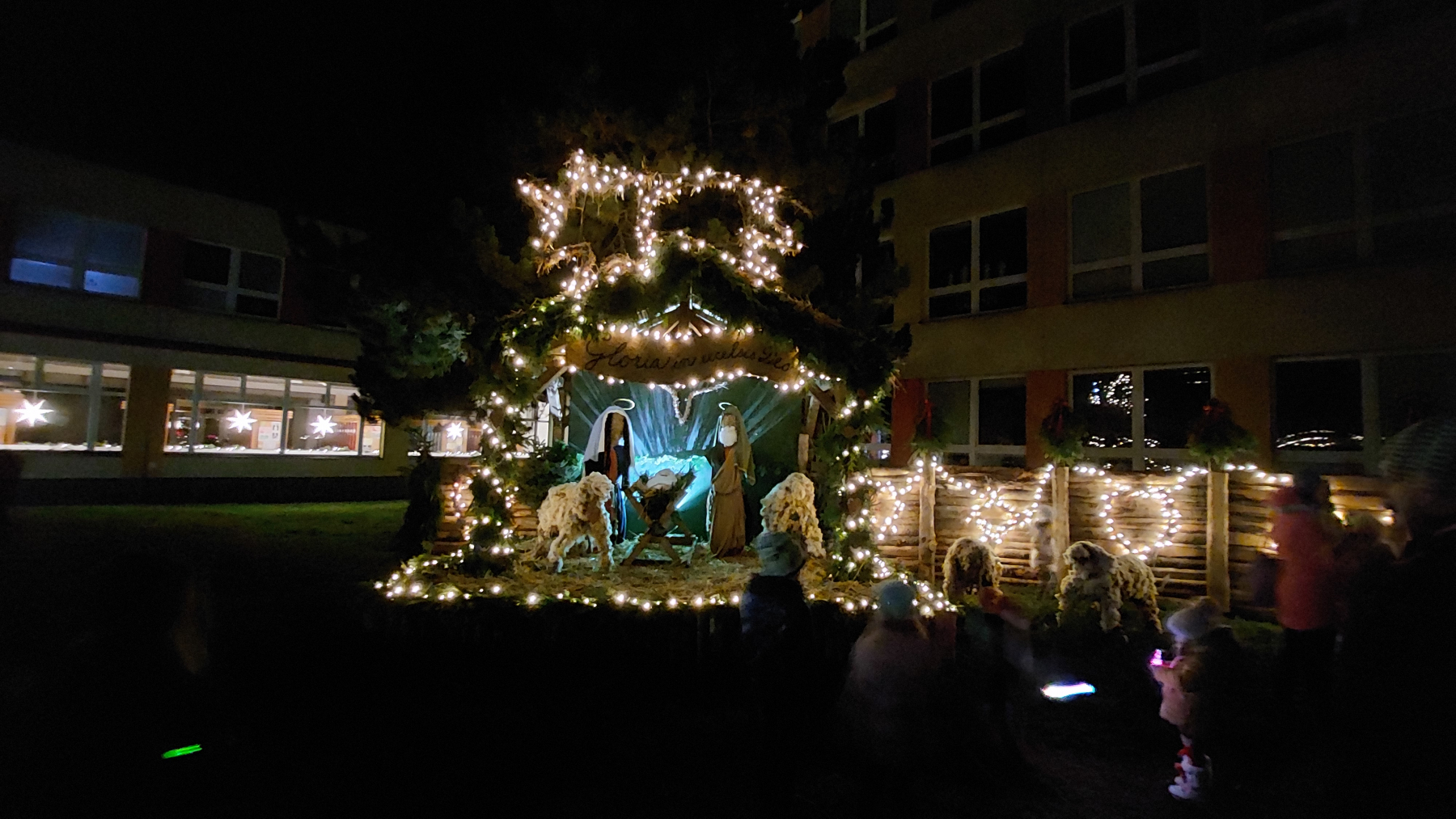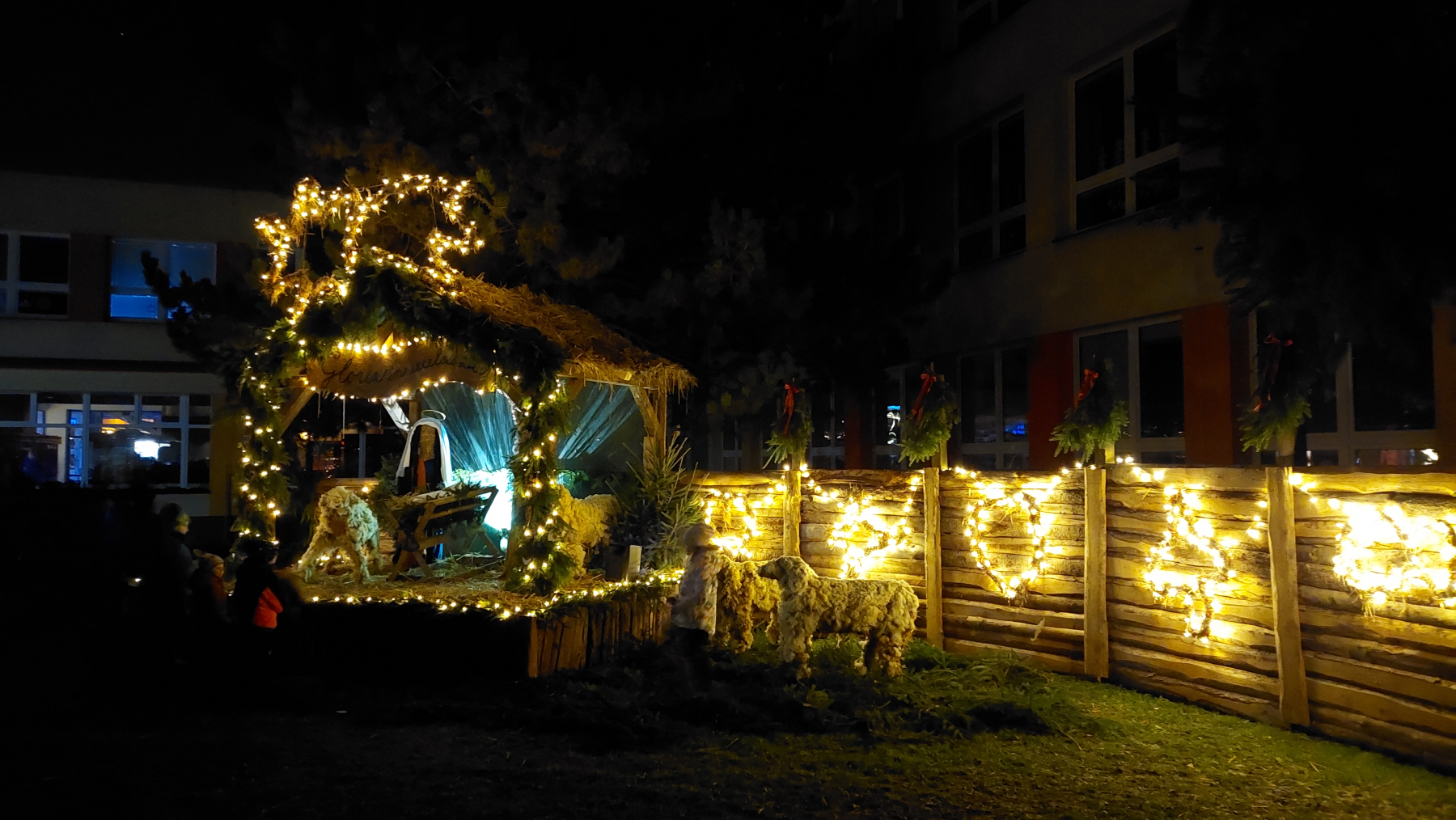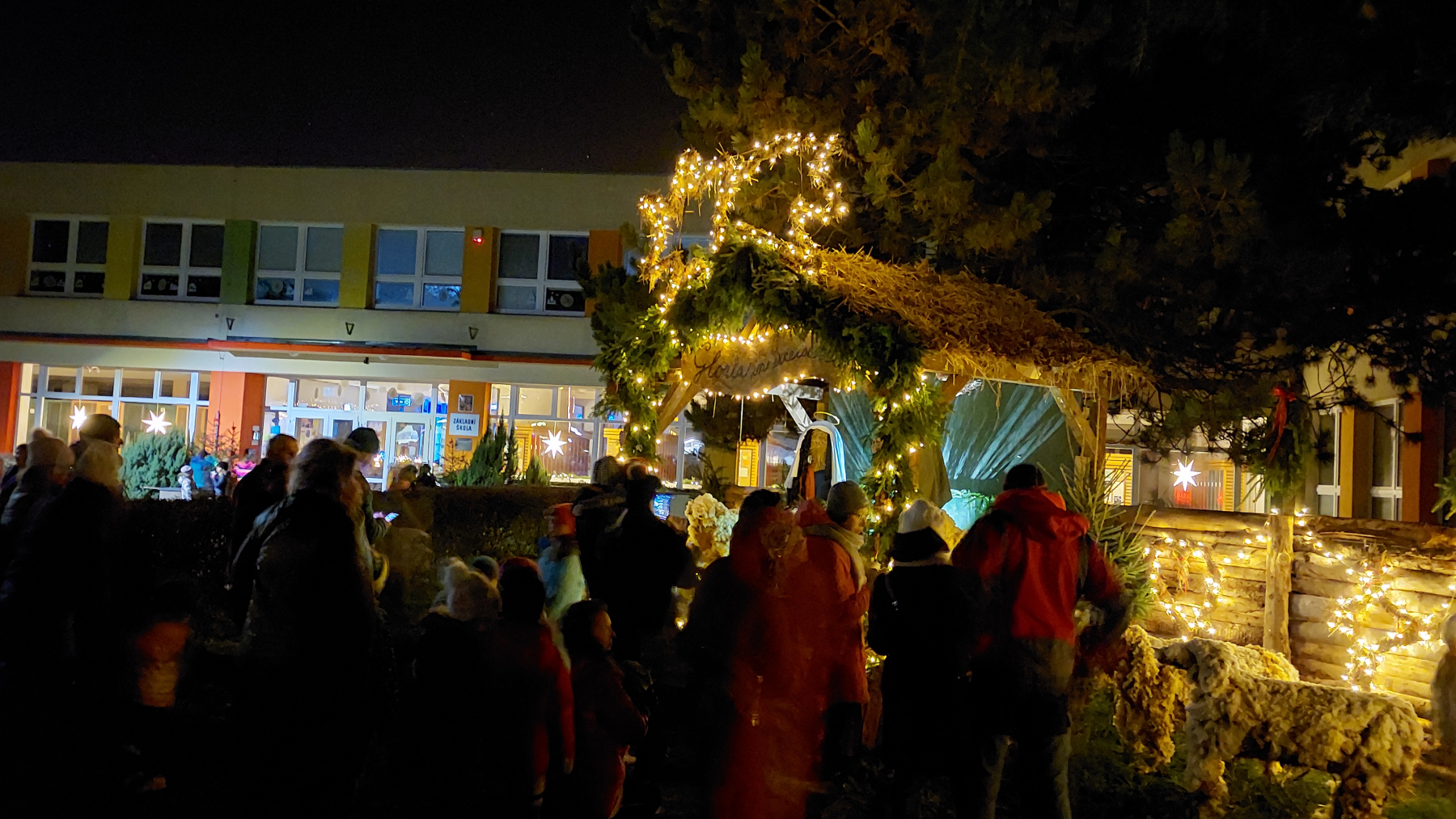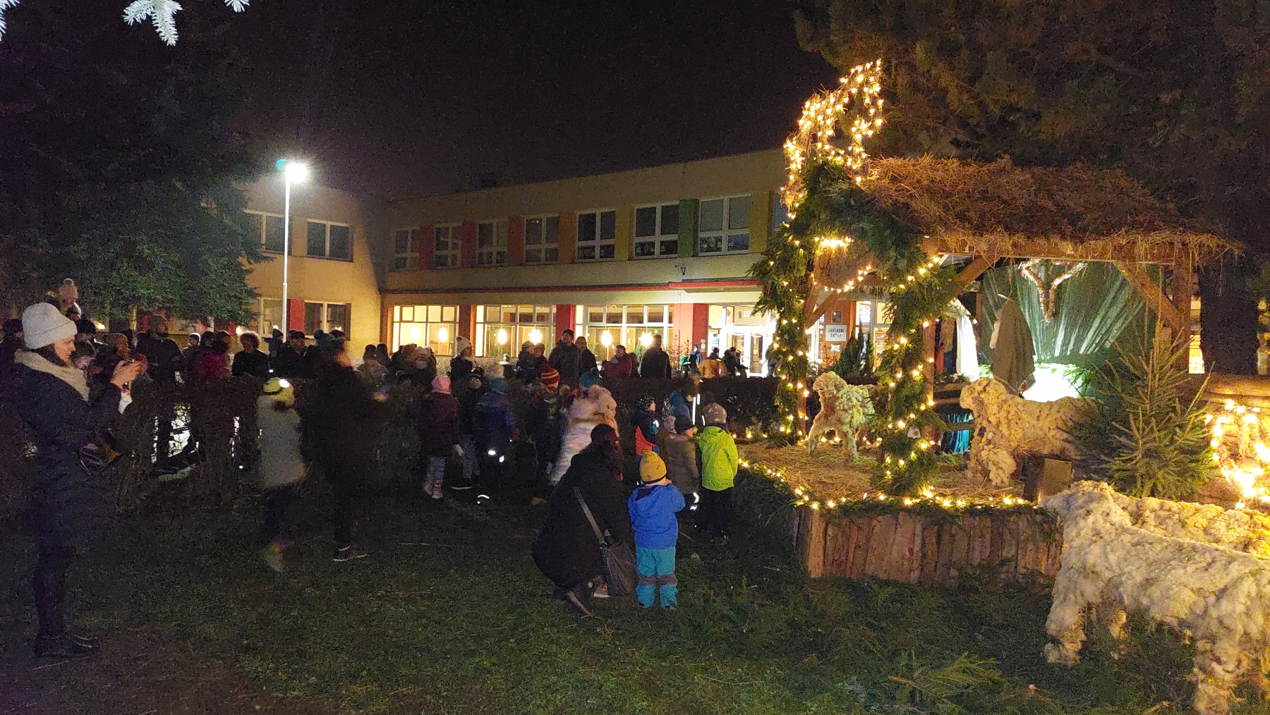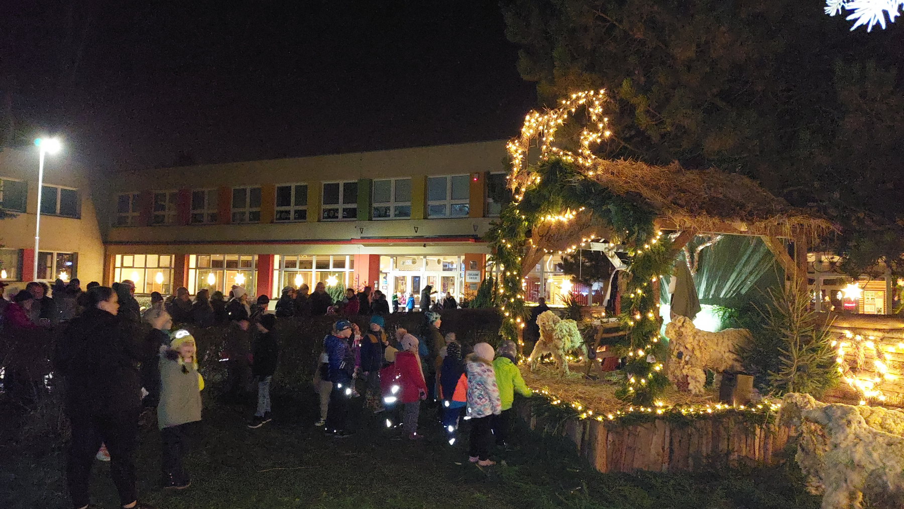 Podívejte se, jak jsme náš krásný betlém a školu o den dříve zdobili: