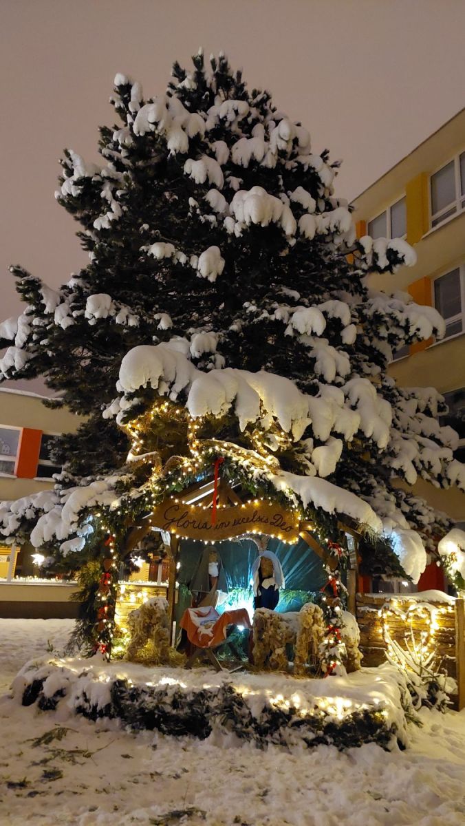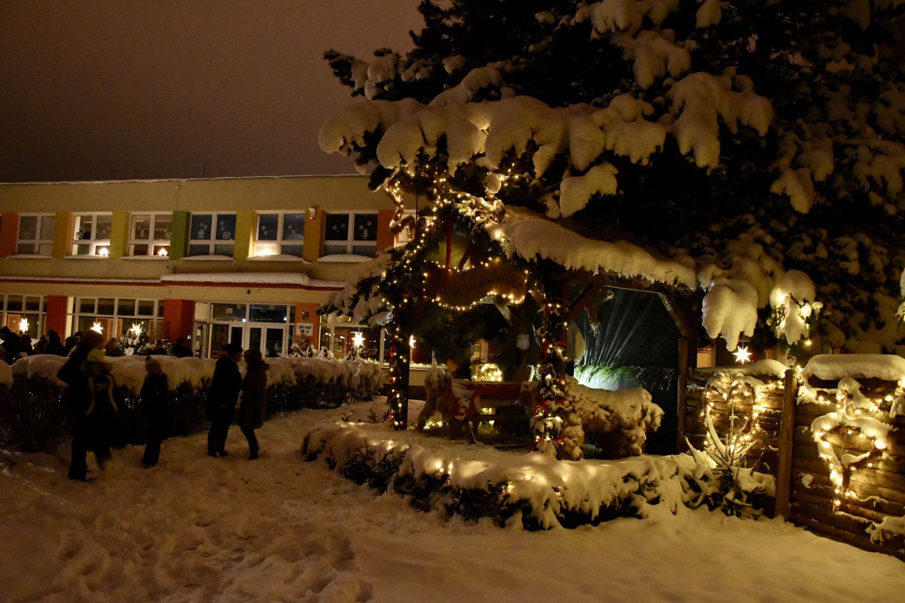 První adventní neděli 3.12. ve večerních hodinách proběhlo tradiční rozsvícení betléma a vánoční výzdoby školního vestibulu.
