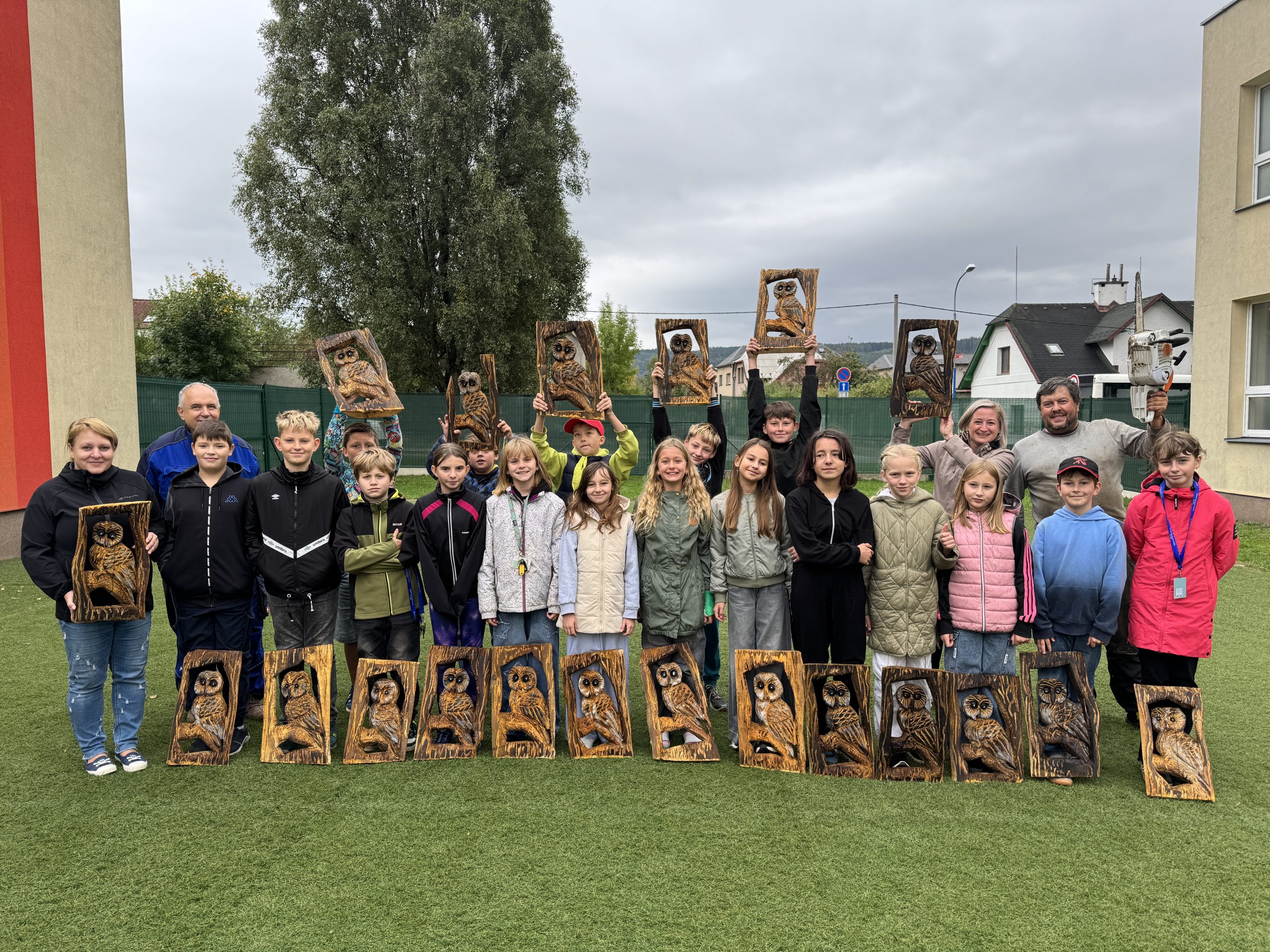 Dne 25. 9. 2025 se třída 5. D zúčastnila zajímavé tématické dílny zaměřené na dřevosochání. Žáci si vyzkoušeli práci se dřevem pod vedením zkušeného pana Myšáka a s jeho pomocí si sami vyřezali sovu. Každý si pak odnesl domů vlastnoručně vyrobený dřevěný obrázek, na který může být právem hrdý. Akce byla nejen tvořivá, ale i poučná. Děti se dozvěděly více o tradičním řemesle a práci se dřevem. Děkujeme všem organizátorům za krásný zážitek.