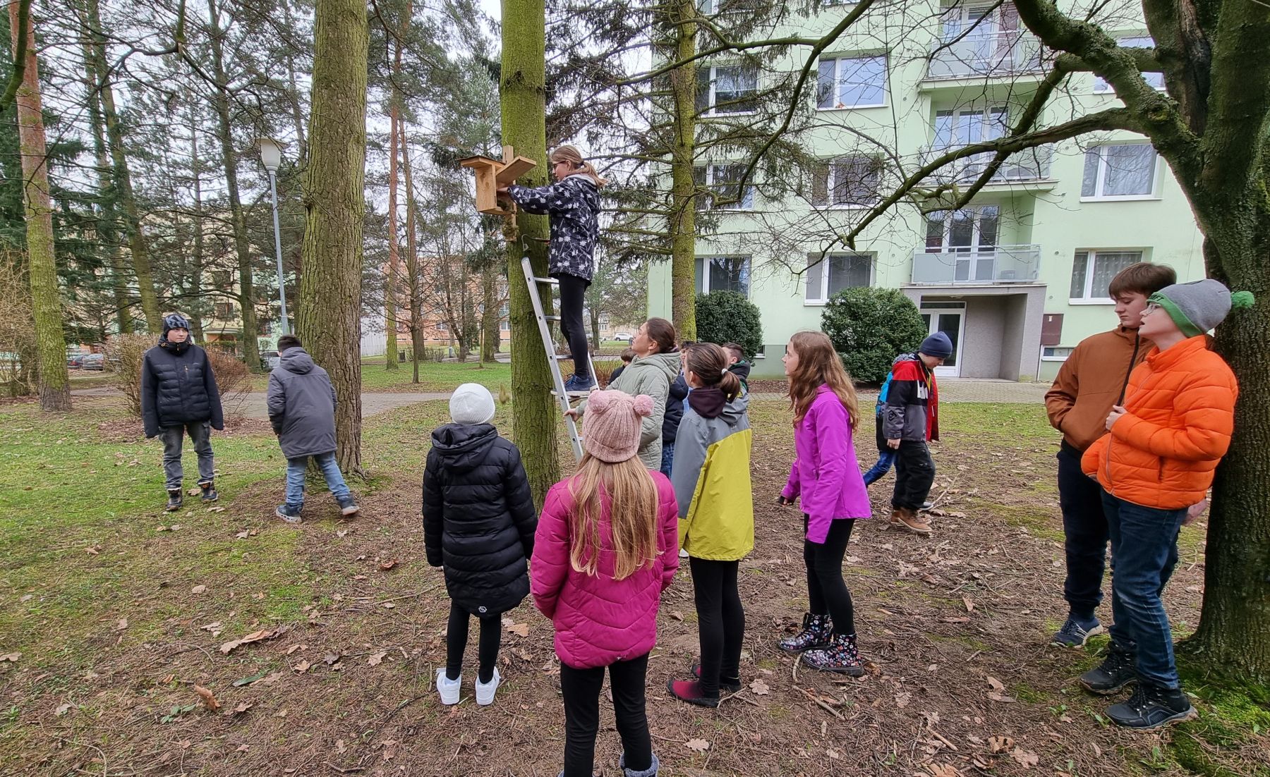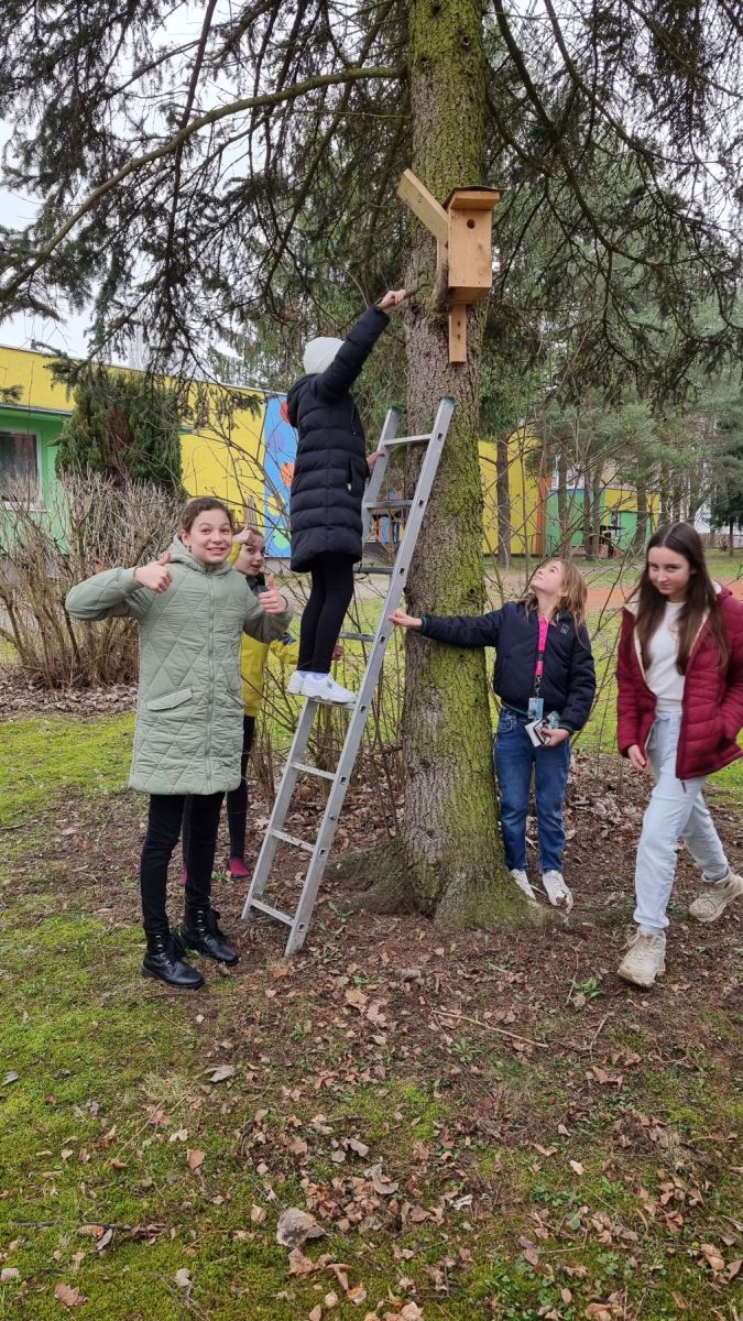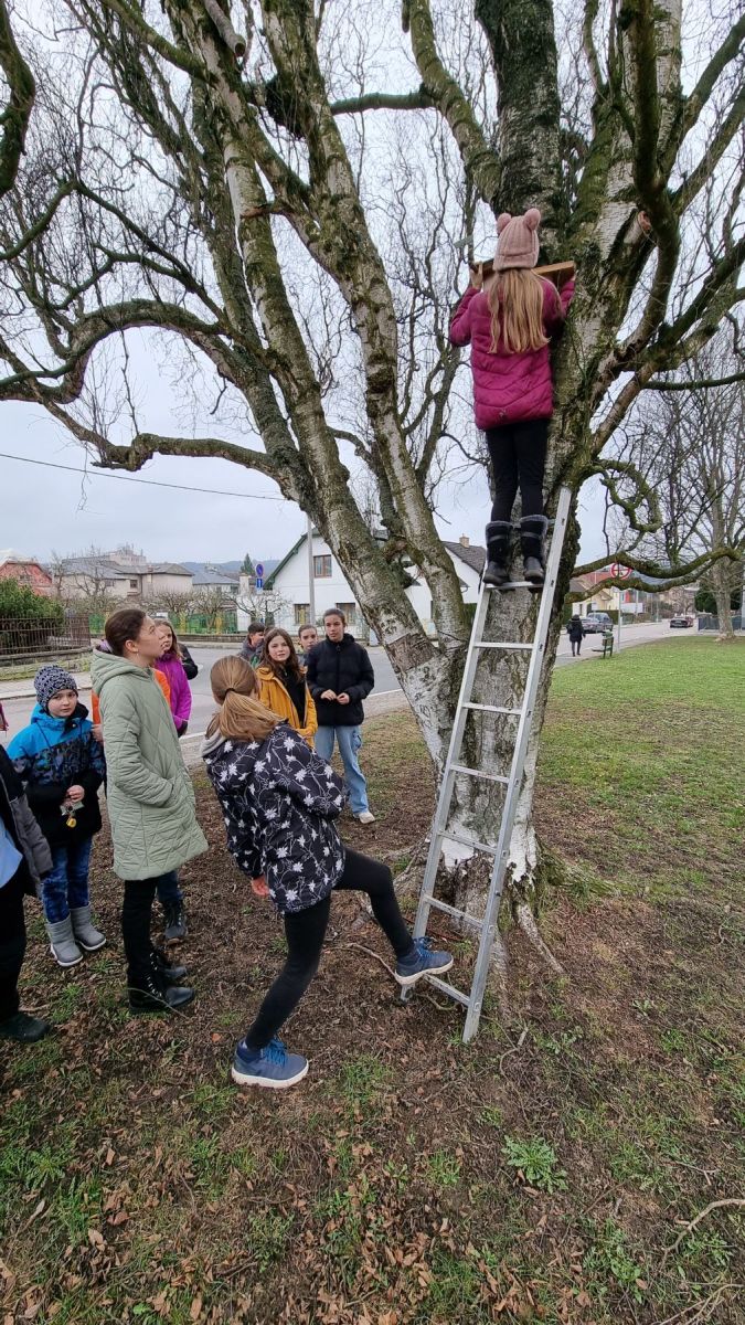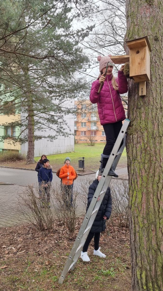 Kvůli úbytku starých stromů s přirozenými dutinami přichází ptáci o své hnízdní příležitosti a je třeba jim tyto možnosti nahradit. To jsme si uvědomili v loňském roce a s deváťáky jsme vyrobili a v okolí školy rozvěsili deset ptačích budek.