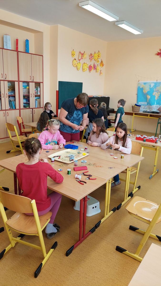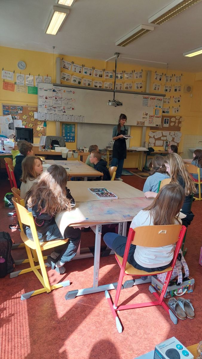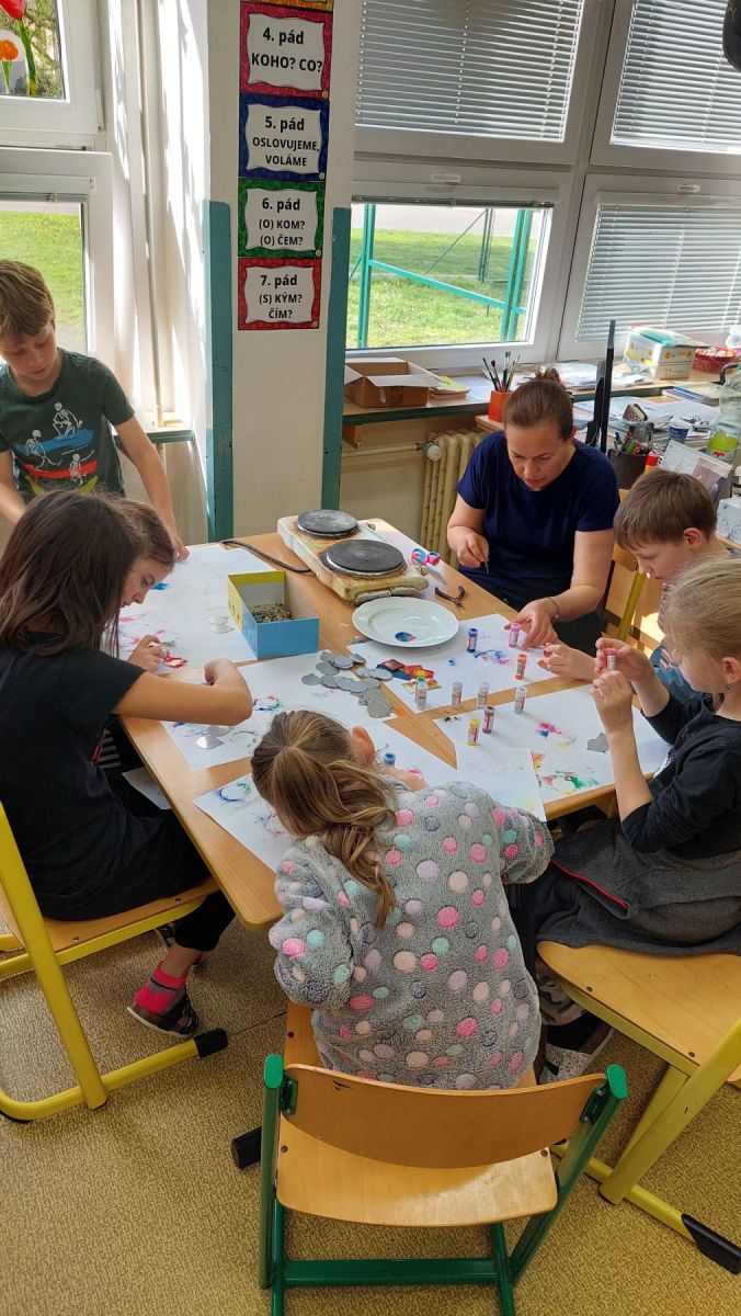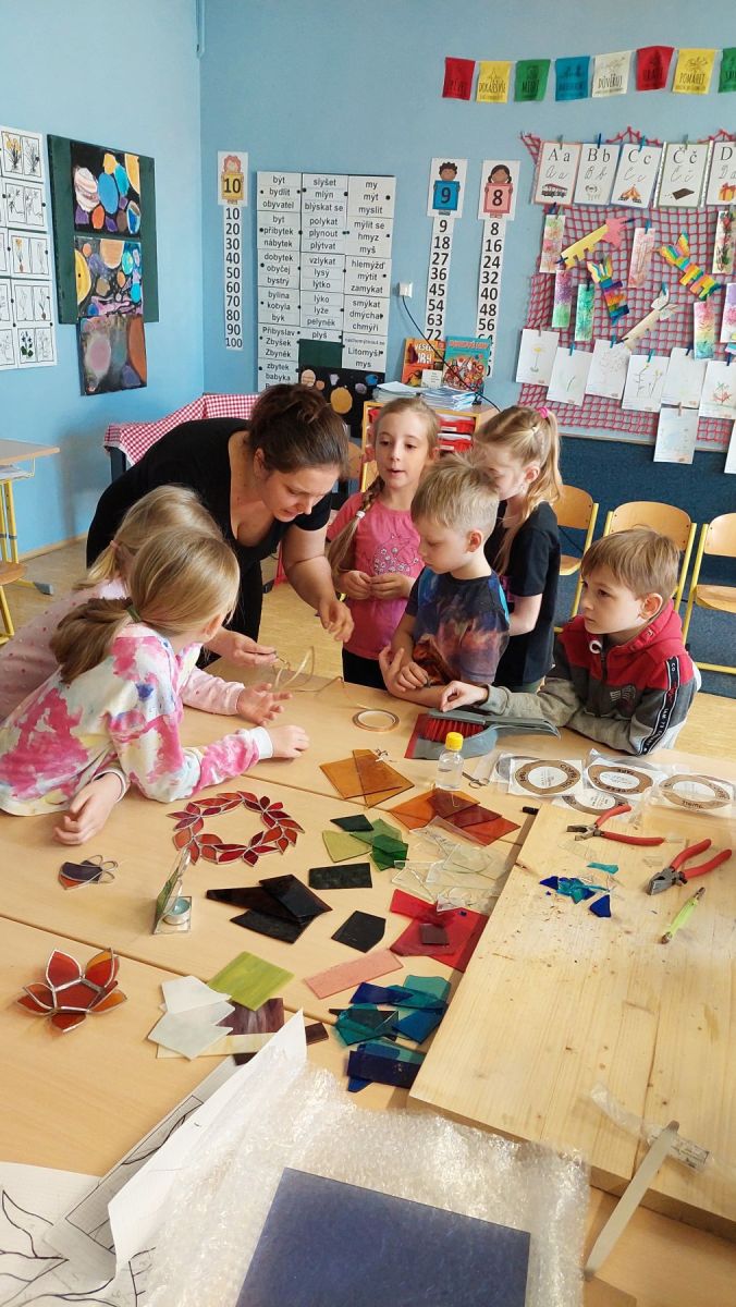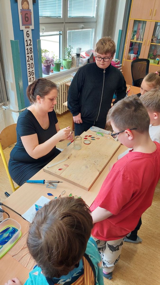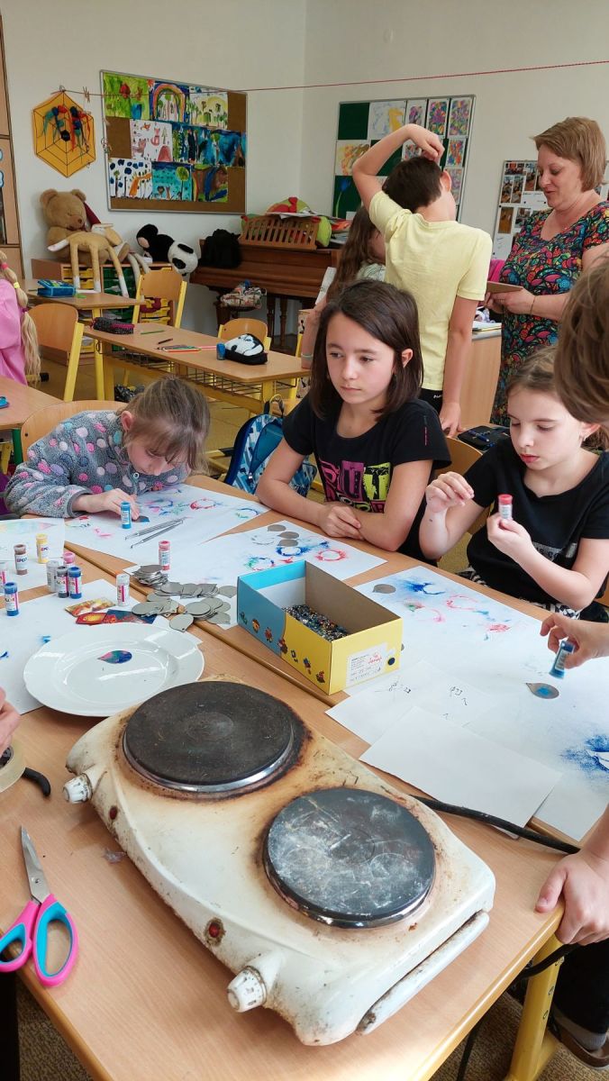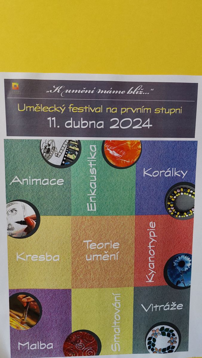 Ve čtvrtek 11. dubna proběhl na prvním stupni poprvé umělecký festival. Pozváni byli  umělci z okolí, ale svůj um předvedli i učitelé z naší školy, kterým je umění blízké. Žáci si kromě klasické malby, kresby vyzkoušeli smaltové přívěsky (děkujeme firmě Bühler za materiální vybavení), vitráže, enkaustiku, kyanotopii, animaci a drátkování s korálky. Nejen krásné počasí, ale také nadání všech umělců přispělo ke krásnému průběhu celé akce. Práce žáků budou vystaveny v prostorách prvního stupně.