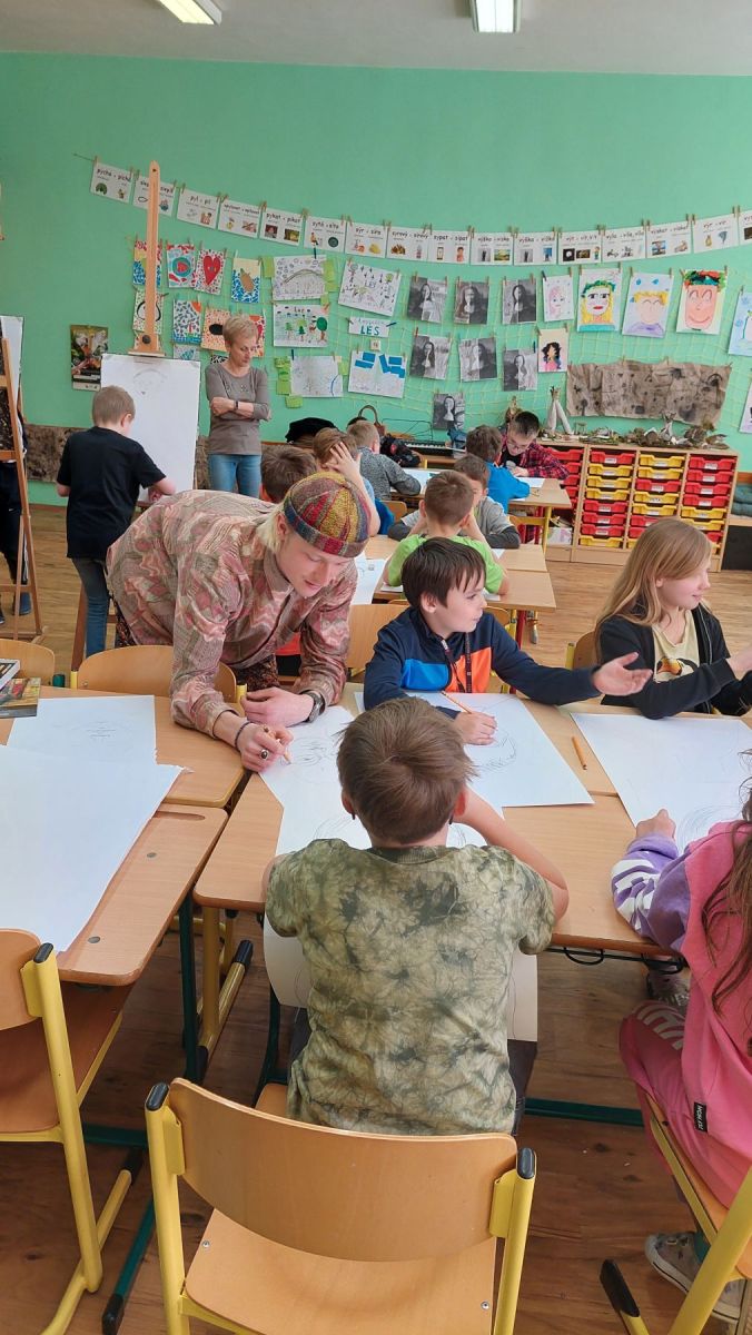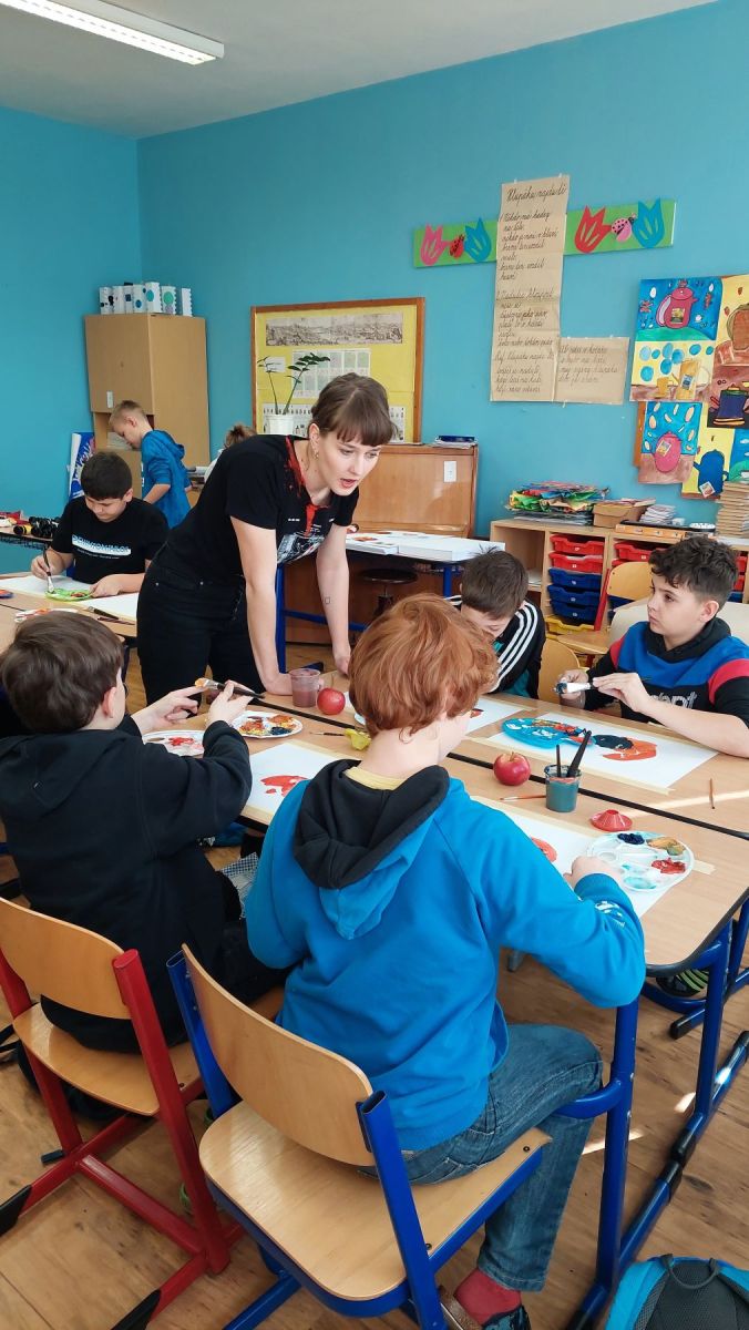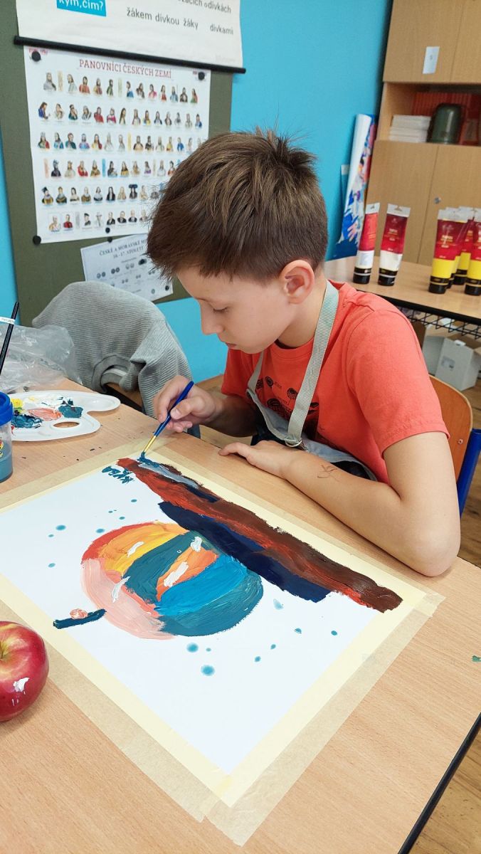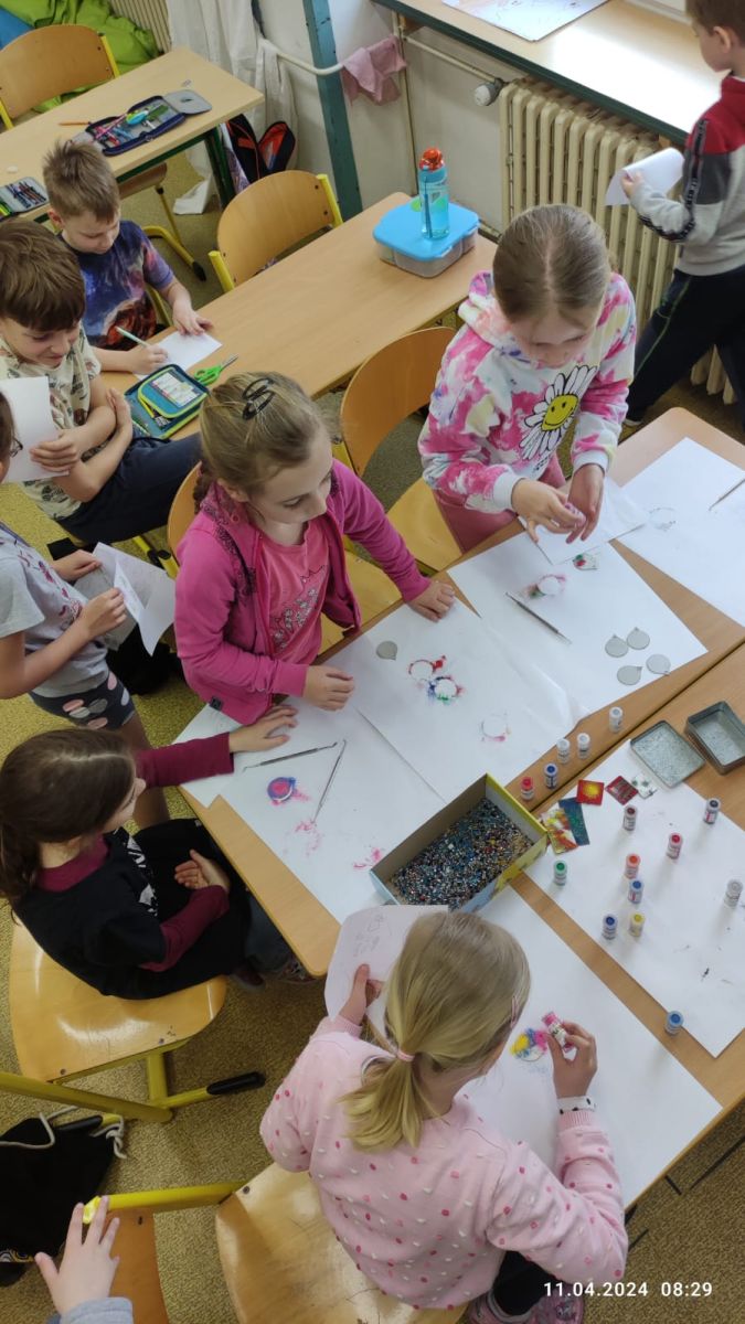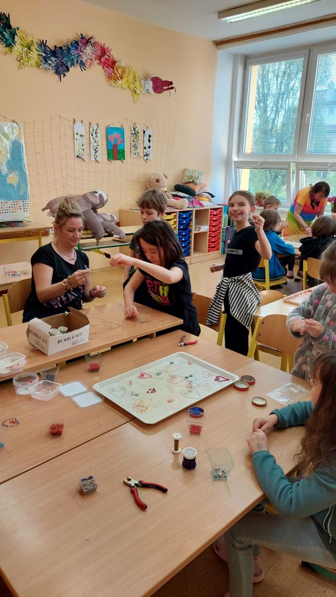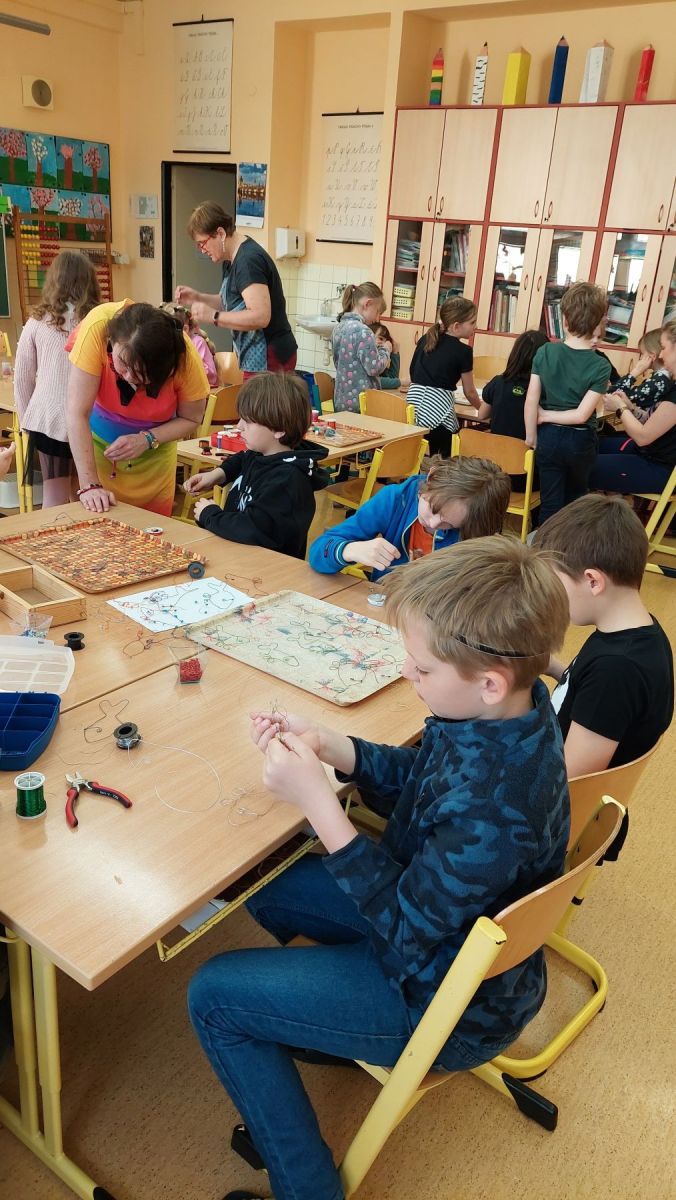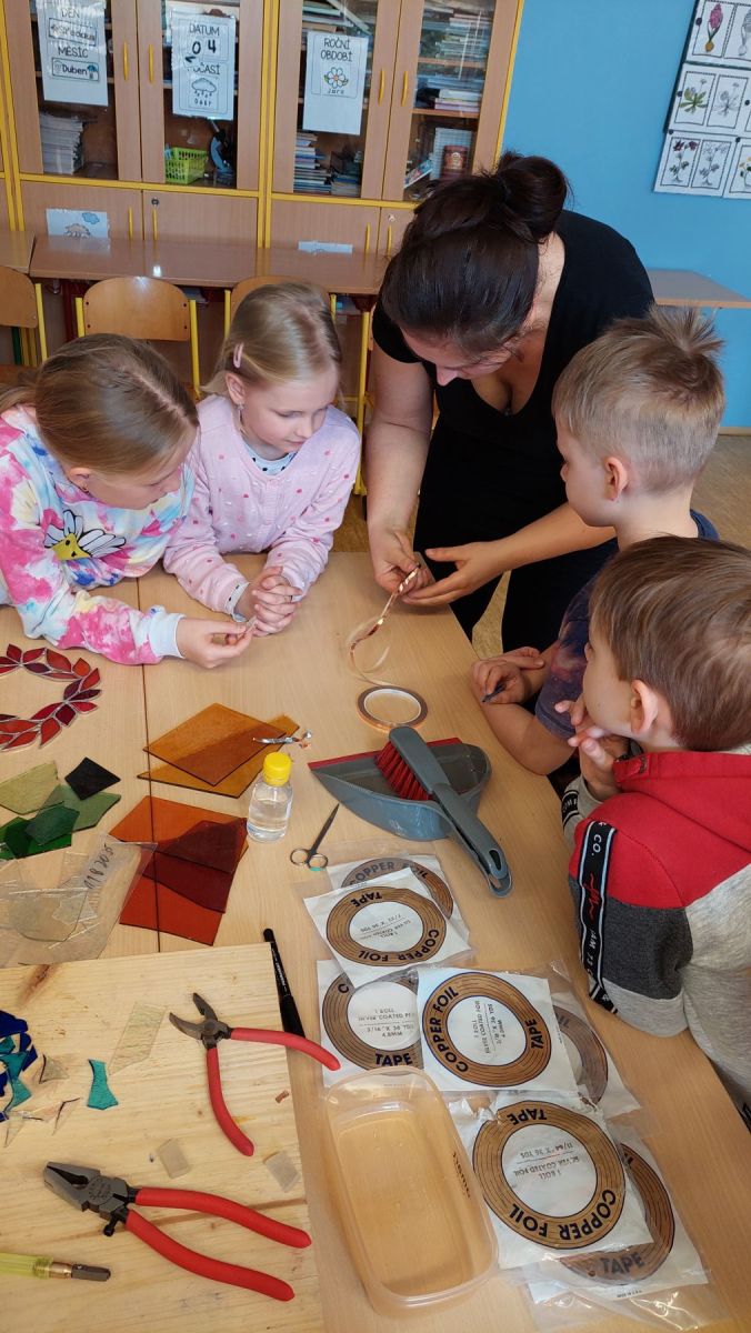 Ve čtvrtek 11. dubna proběhl na prvním stupni poprvé umělecký festival. Pozváni byli  umělci z okolí, ale svůj um předvedli i učitelé z naší školy, kterým je umění blízké. Žáci si kromě klasické malby, kresby vyzkoušeli smaltové přívěsky (děkujeme firmě Bühler za materiální vybavení), vitráže, enkaustiku, kyanotopii, animaci a drátkování s korálky. Nejen krásné počasí, ale také nadání všech umělců přispělo ke krásnému průběhu celé akce. Práce žáků budou vystaveny v prostorách prvního stupně.