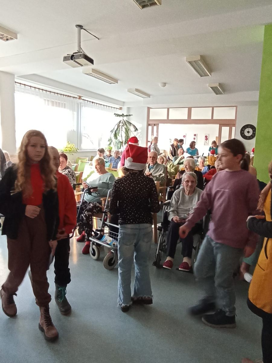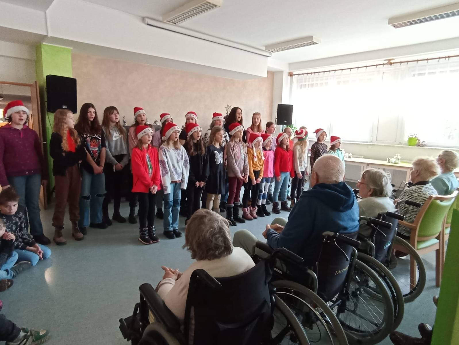 V pondělí 18. 12. se děti ze sborového zpěvu Noty a třídy 3.D vydaly tradičně před Vánocemi udělat radost do Domova důchodců.