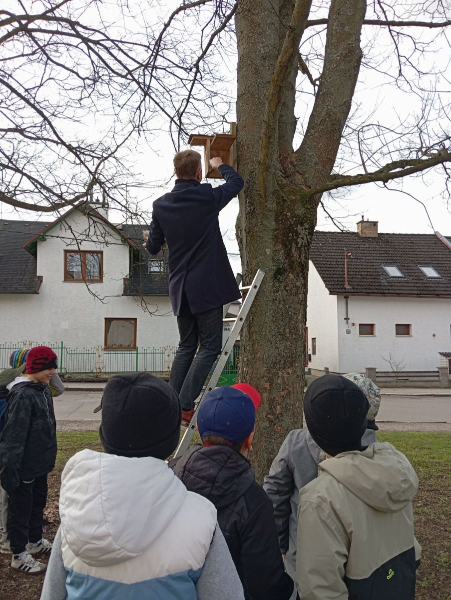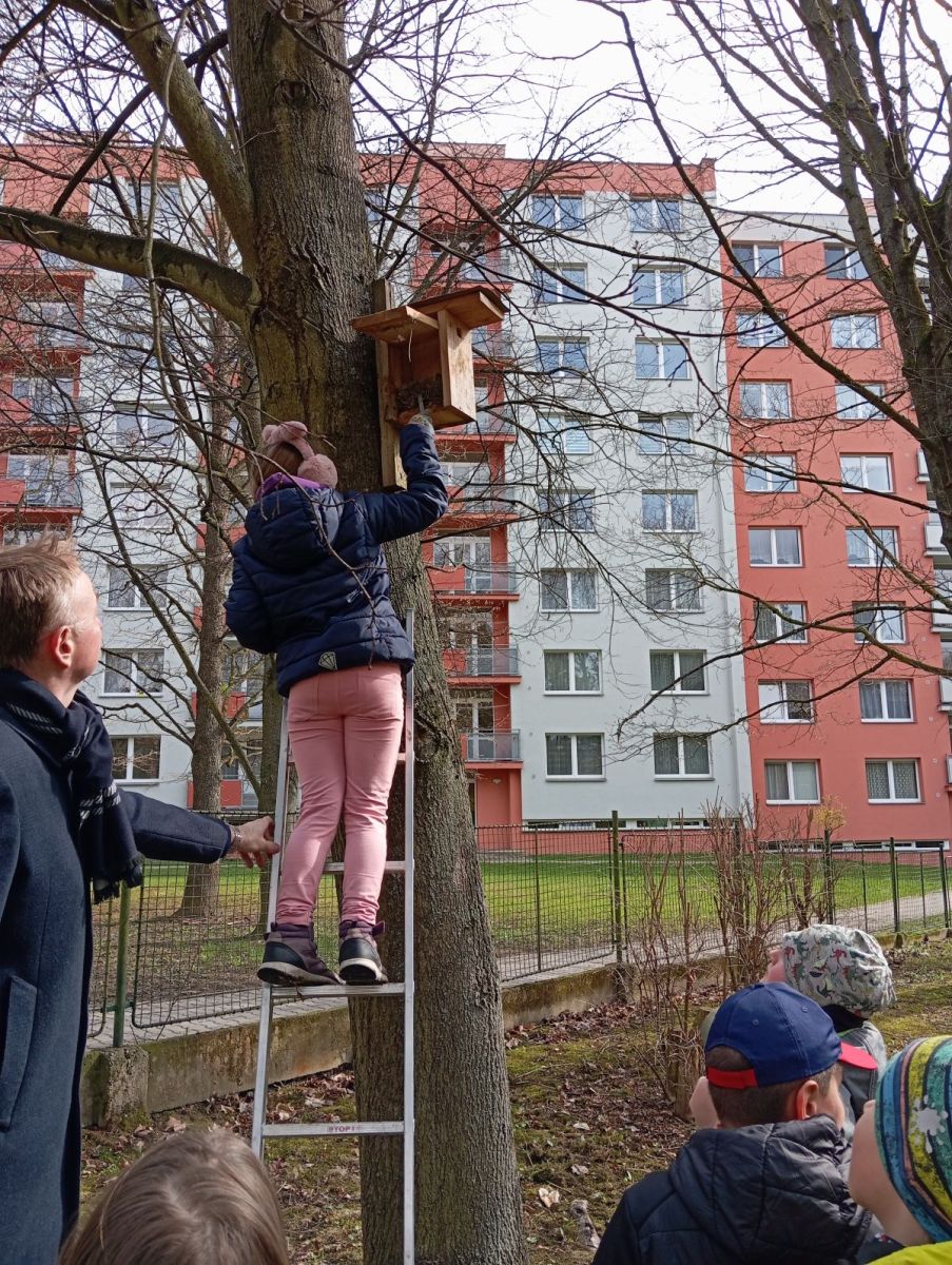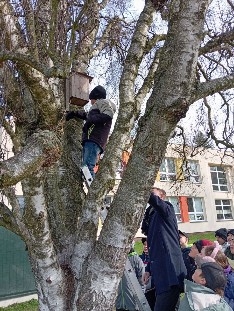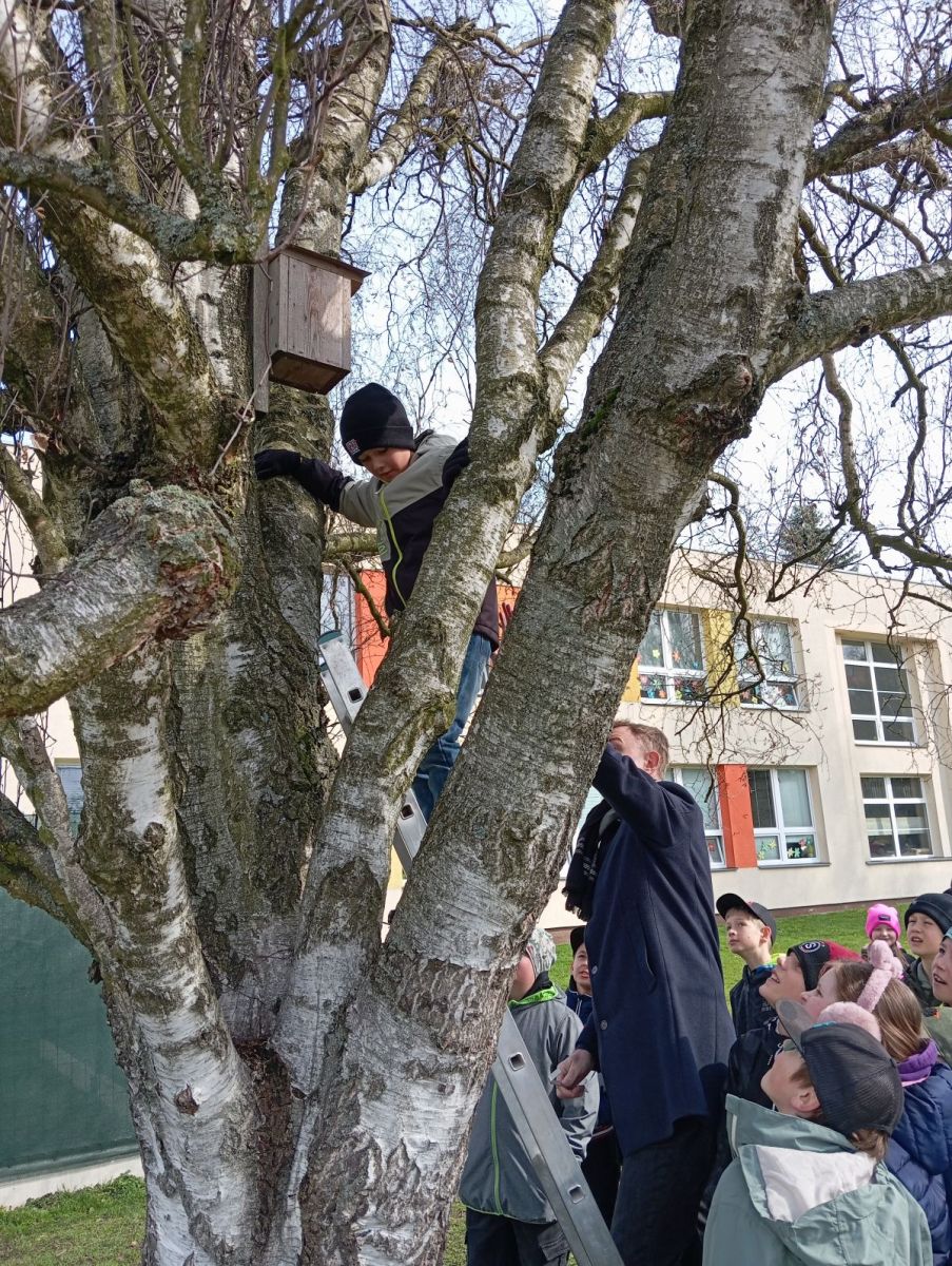 S panem učitelem M. Pechancem jsme dělali „jarní úklid“ v ptačích budkách v okolí školy. Bylo to moc fajn. Panu učiteli moc děkujeme za nové informace a zajímavosti.