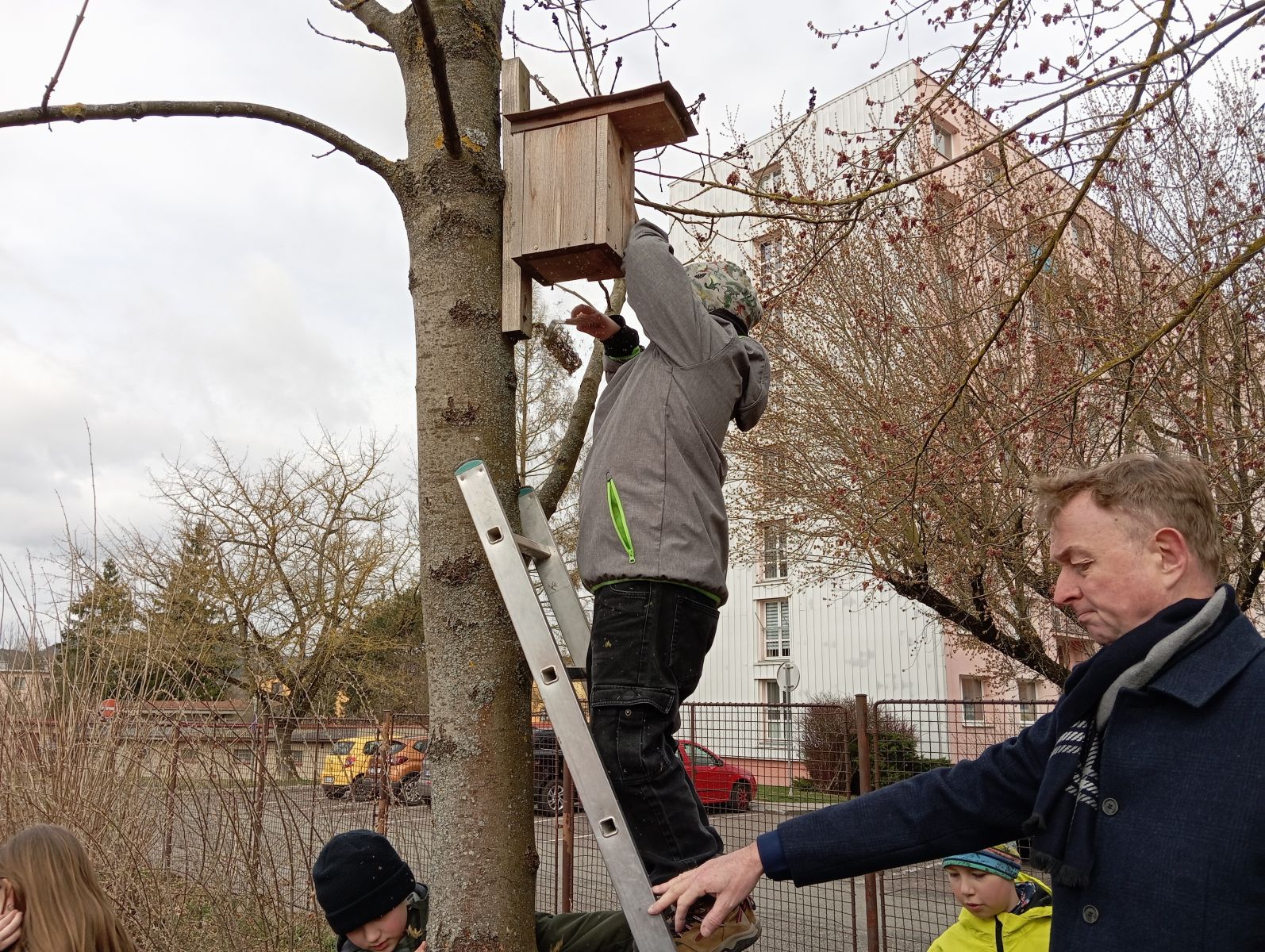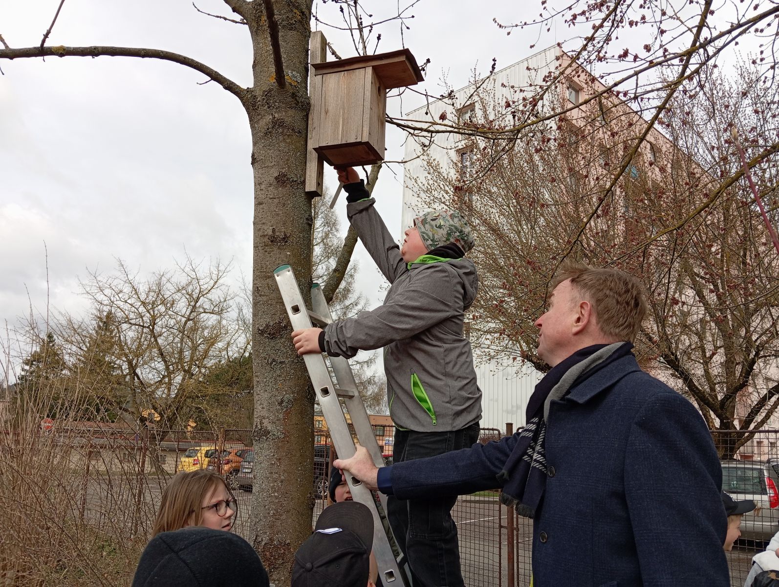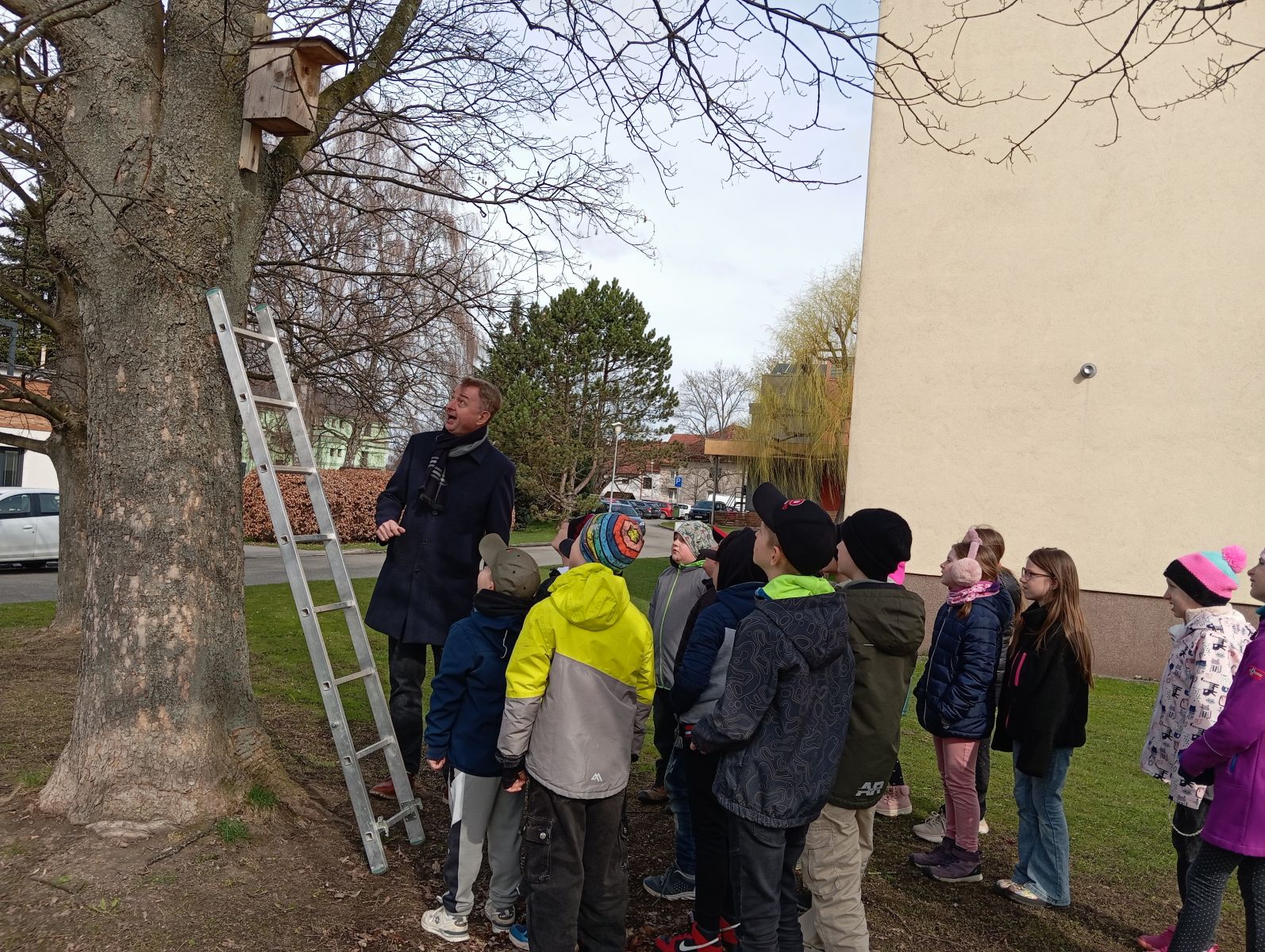 S panem učitelem M. Pechancem jsme dělali „jarní úklid“ v ptačích budkách v okolí školy. Bylo to moc fajn. Panu učiteli moc děkujeme za nové informace a zajímavosti.